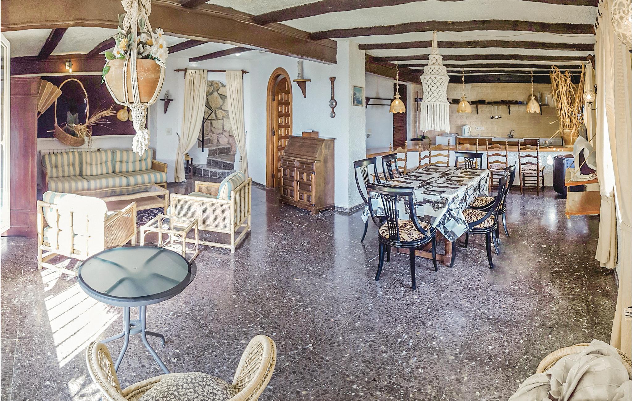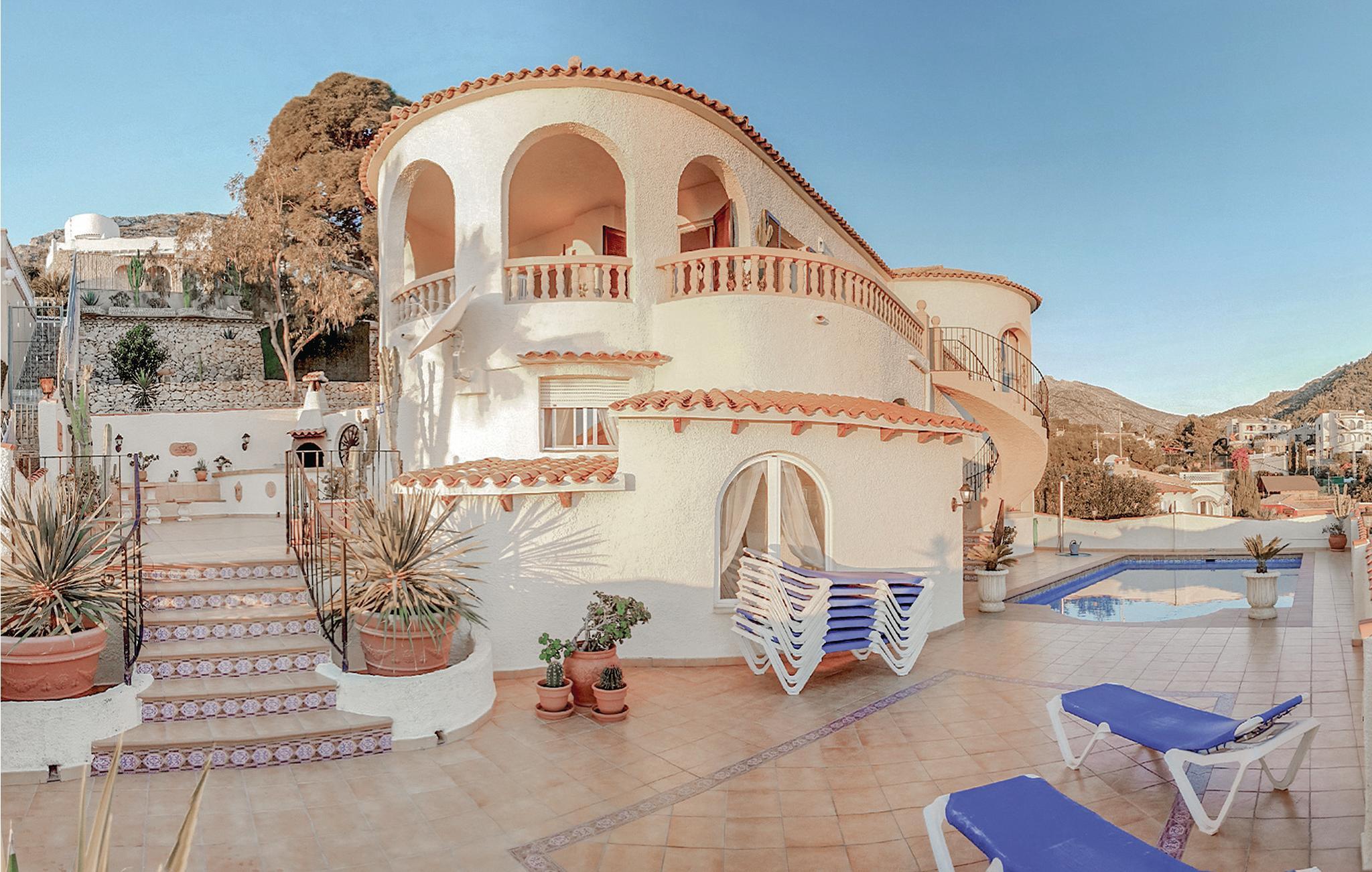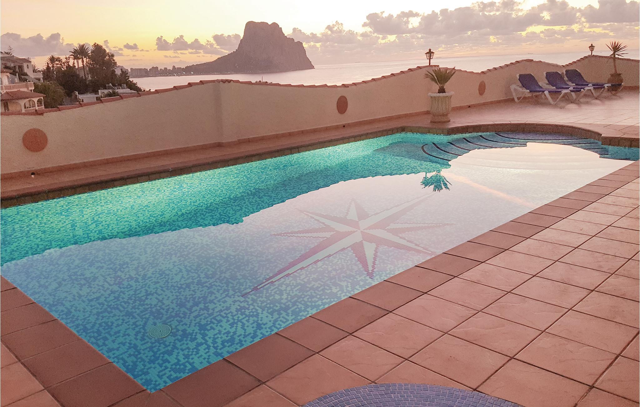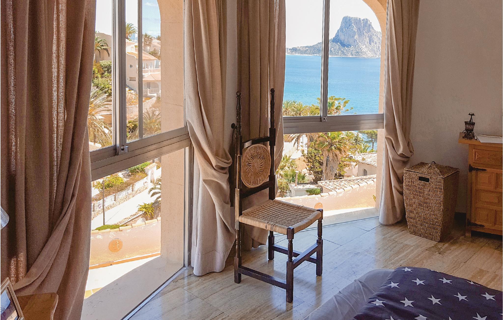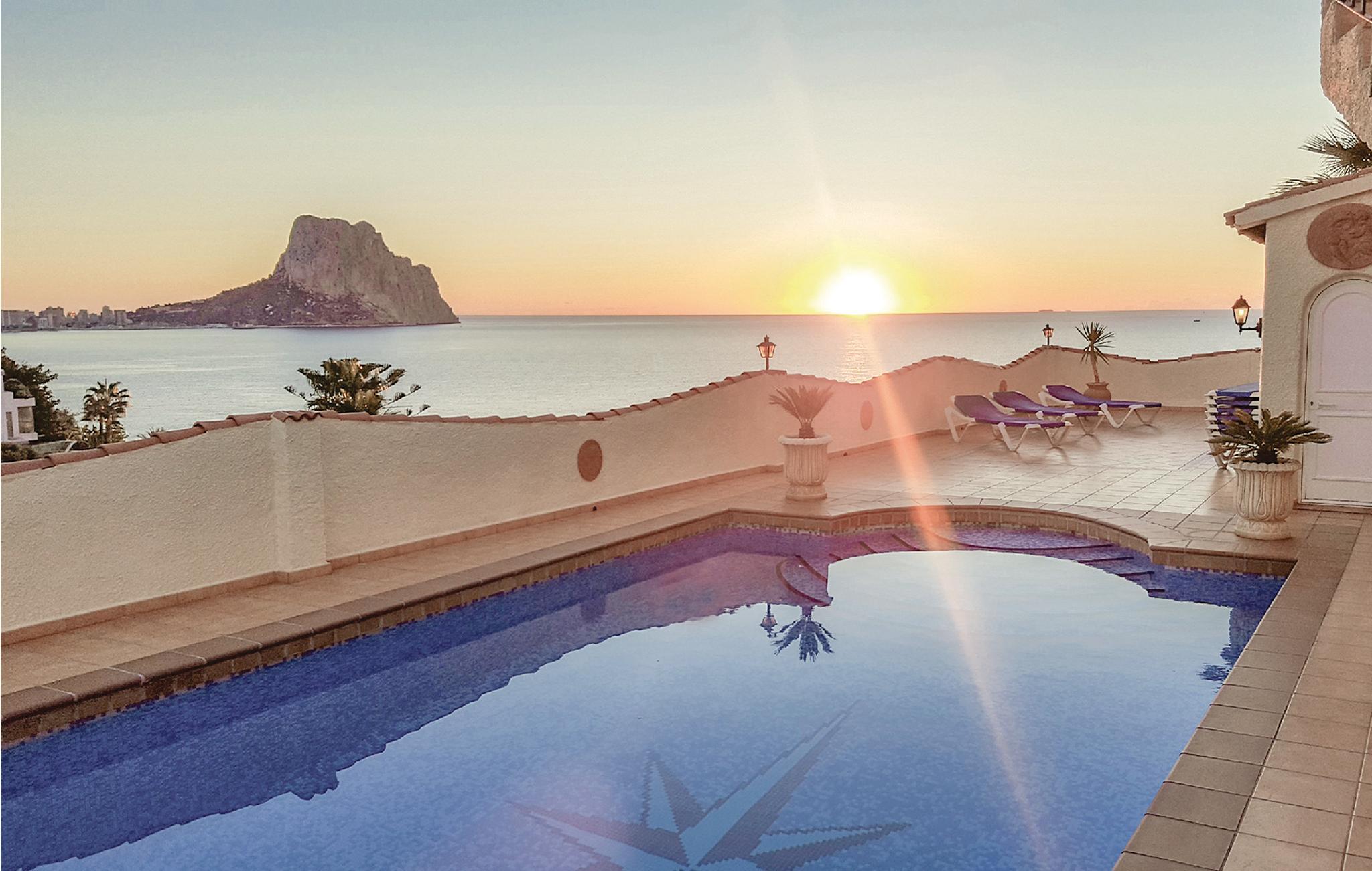 Nyd den fabelagtige panoramaudsigt ud over havet og Penon de Ifach fra dette store hus, som ligger på en rolig, blind vej i Maryvilla. Det består af separate boliger, hvilket også gør huset attraktivt for flere familier, der holder ferie sammen. På 1. sal finder I tre soverum, et bad, et køkken og en stue. Stueetagen, der ligger i niveau med swimmingpoolen, rummer to boligenheder med hver et soverum, en stue, et bad og et køkken. Kælderetagen består af to soverum, et bad samt et køkken i åben forbindelse med stuen. Huset er hyggeligt og rustikt indrettet. Ved den skønne swimmingpool er der rigelig plads, hvor I kan solbade samt et hyggeligt hjørne, hvor I kan nyde de fælles grillaftener. Der er gode tennisbaner i umiddelbar nærhed, og den nærmeste golfplads ligger blot 1.5 km. væk fra huset. Der tilbydes forskellige sejlture fra havnen i Calpe, og om aftenen afholdes der fiskeaktioner på havnen. Og sidst men ikke mindst er fiskerestauranterne ved havnen selvfølgelig også altid et besøg værd. Smag også på den spanske nationalret paella. Calpe har en meget fin sandstrand, men nogle steder er der dog også klipper, som I skal være opmærksomme på. Derudover er det oplagt at se det spændende saltmine-naturreservatet i området og at tage på ture rundt i hele Costa Blanca-regionen. I januar og februar - når Mellemeuropa er sneklædt - blomstrer mandel- og appelsintræerne i Costa Blanca, så på denne tid af året er det bestemt også værd at besøge regionen.
