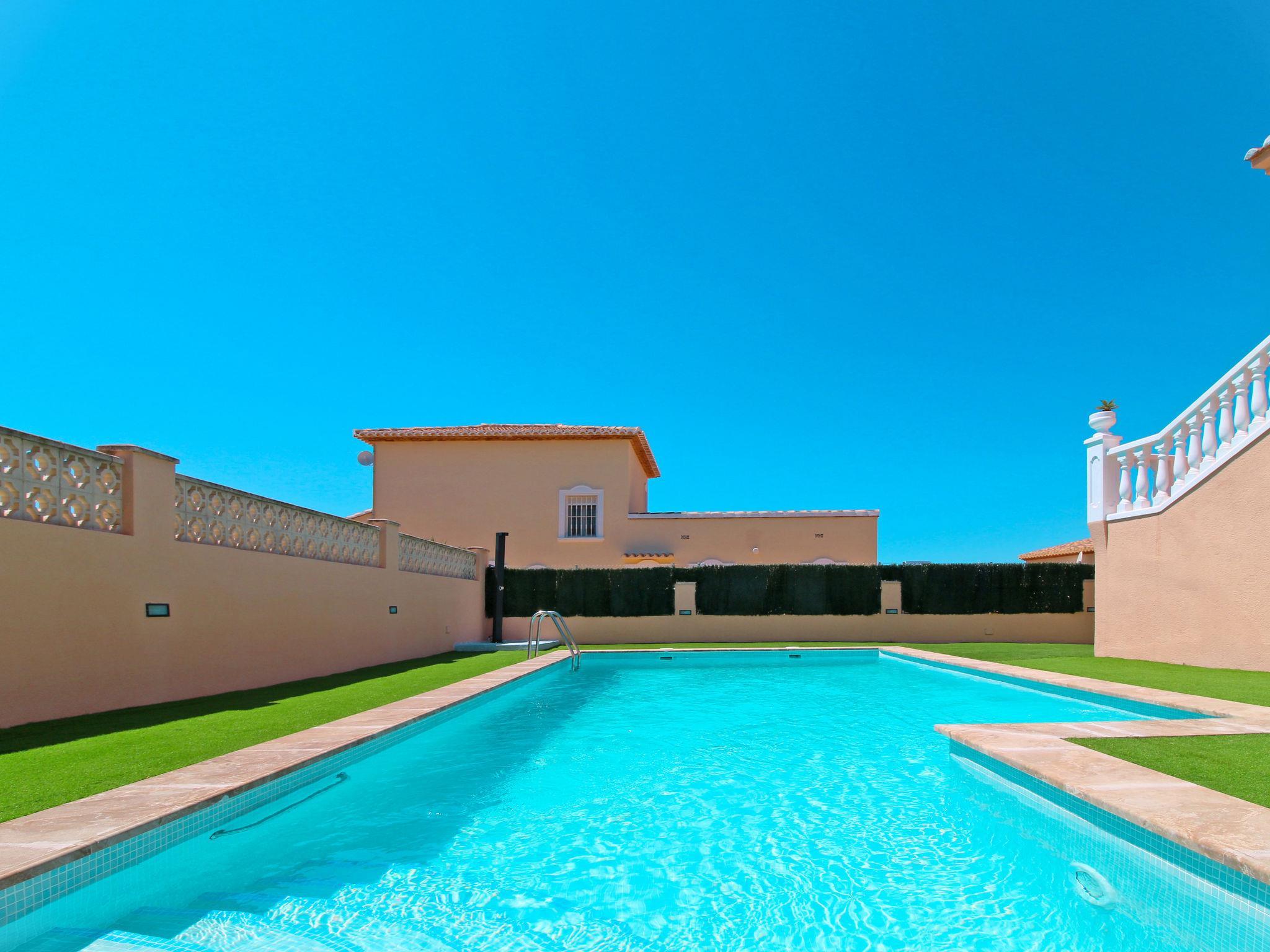 Marisol Park: House "Magia", built in 2018. In the district of Marisol Park 2 km from the centre of Calpe, 67 km from the centre of Alicante, 122 km from the centre of Valencia, in a sunny position in the residential district, residential area (villas), 2 km from the sea. Private: property 900 m2 (fenced), swimming pool angular (11 x 5 m, seasonal availability: 01.Jan. - 31.Dec.) with internal staircase. WC in the pool area, outdoor shower, barbecue, barbecue house. In the house: air conditioning. Parking (for 5 cars) on the premises. Supermarket 1 km, bus stop 1.3 km, sandy beach "Playa El Arenal" 2 km. Nearby attractions: Parque atracciones Terra Mítica 35 km, Parque Acuático Aqualandia 25 km. Hiking paths: Parque natural Peñon de Ifach 2.7 km.