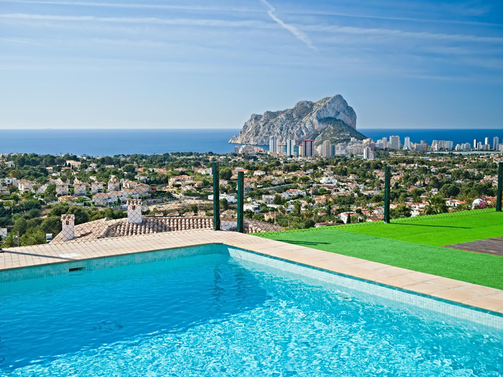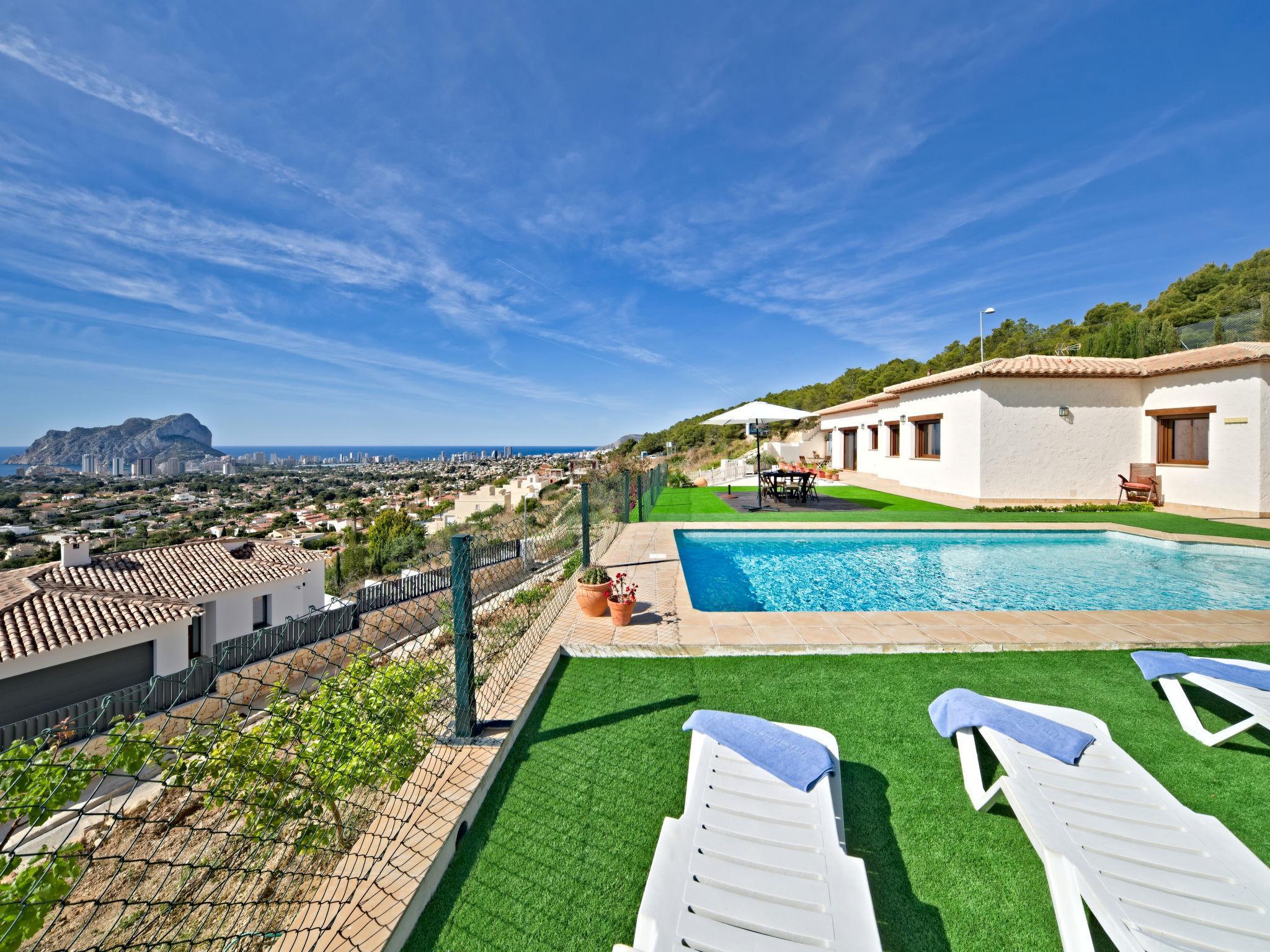Gran Sol: Beautiful villa "Anna", built in 2020. Outside the resort, 4.2 km from the centre of Calpe, in a quiet, sunny position residential area (villas), 2 km from the sea, 2 km from the beach. Private: property 797 m2 (fenced), swimming pool angular (8 x 4 m, depth 100 - 180 cm, seasonal availability: 01.Jan. - 31.Dec.). Shower/WC in the pool area, garden furniture, barbecue, parking (for 3 cars). Supermarket 3 km, bus stop 1.7 km, sandy beach "La Fustera" 2 km. Nearby attractions: Terra Mítica 35 km, Aqualandia 25 km. Hiking paths: Peñón de Ifach 5 km. The owner does not accept any youth groups.