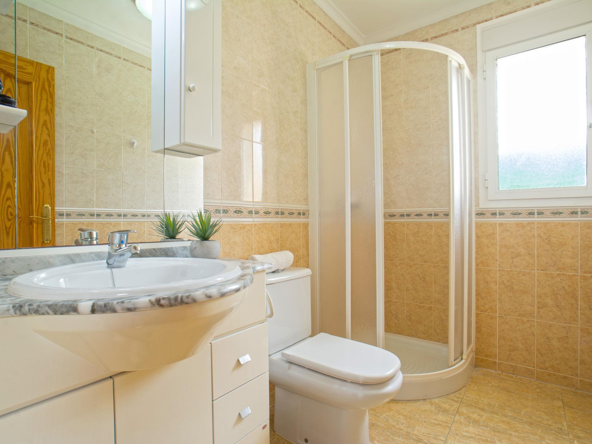 "Liriopadel", 7-room villa 220 m2. Spacious, simple and practical furnishings: living/dining room with open-hearth fireplace (only for decoration), dining table, satellite TV, digital TV and air conditioning. Exit to the terrace. 2 rooms, each room with 1 french bed (135 cm, length 190 cm), air conditioning and forced-air heating. 5 rooms, each room with 2 beds (90 cm, length 190 cm), air conditioning and forced-air heating. Open kitchen (oven, dishwasher, 4 ceramic glass hob hotplates, toaster, kettle, microwave, freezer, electric coffee machine) with dining table. Bath/WC, 3 showers/WC. Patio. Terrace furniture, barbecue, deck chairs. Facilities: washing machine, iron, children's high chair, baby cot, hair dryer. Internet (WiFi, free). Parking. Maximum 2 pets/ dogs allowed. Paddle court. AT-450952-A // Reg. Nr.: ESFCTU00000302900058791200000000000000000AT-450952-A5