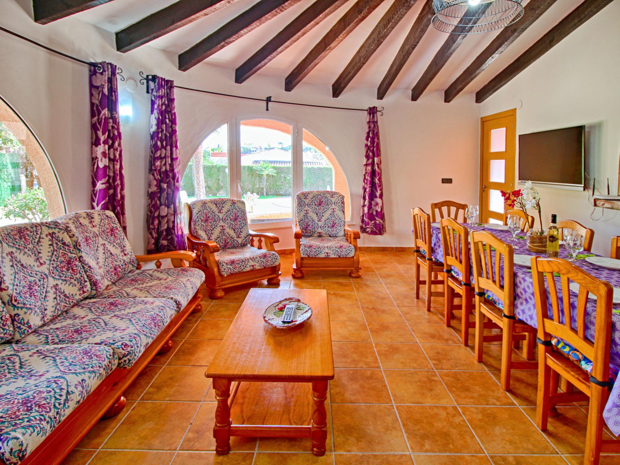 Canuta Baja: Large, beautiful, cosy villa "Roma", renovated in 2017. In the district of Canuta Baja 3 km from the centre of Calpe, 60 km from the centre of Alicante, 120 km from the centre of Valencia, 300 m from the sea, 300 m from the beach. Private: property 800 m2 (fenced) with lawn and wildlife garden, swimming pool kidney shaped (8 x 4 m, seasonal availability: 01.Jan. - 31.Dec.). Outdoor shower, terrace, garden furniture, barbecue, roofed, parking (for 2 cars) on the premises. Shop 2 km, restaurant 300 m, bus stop 1.1 km, sandy beach "Puerto Blanco" 300 m. Nearby attractions: Parque de atracciones Terra Mítica 35 km, Parque acuático Aqualandia 25 km. Hiking paths: Parque Natural Peñon de Ifach 6 km.