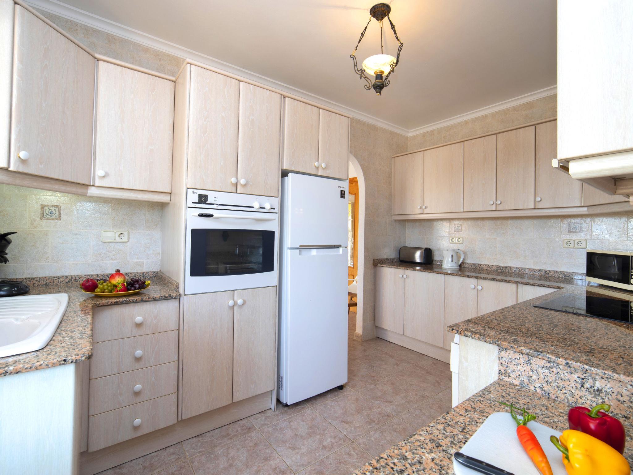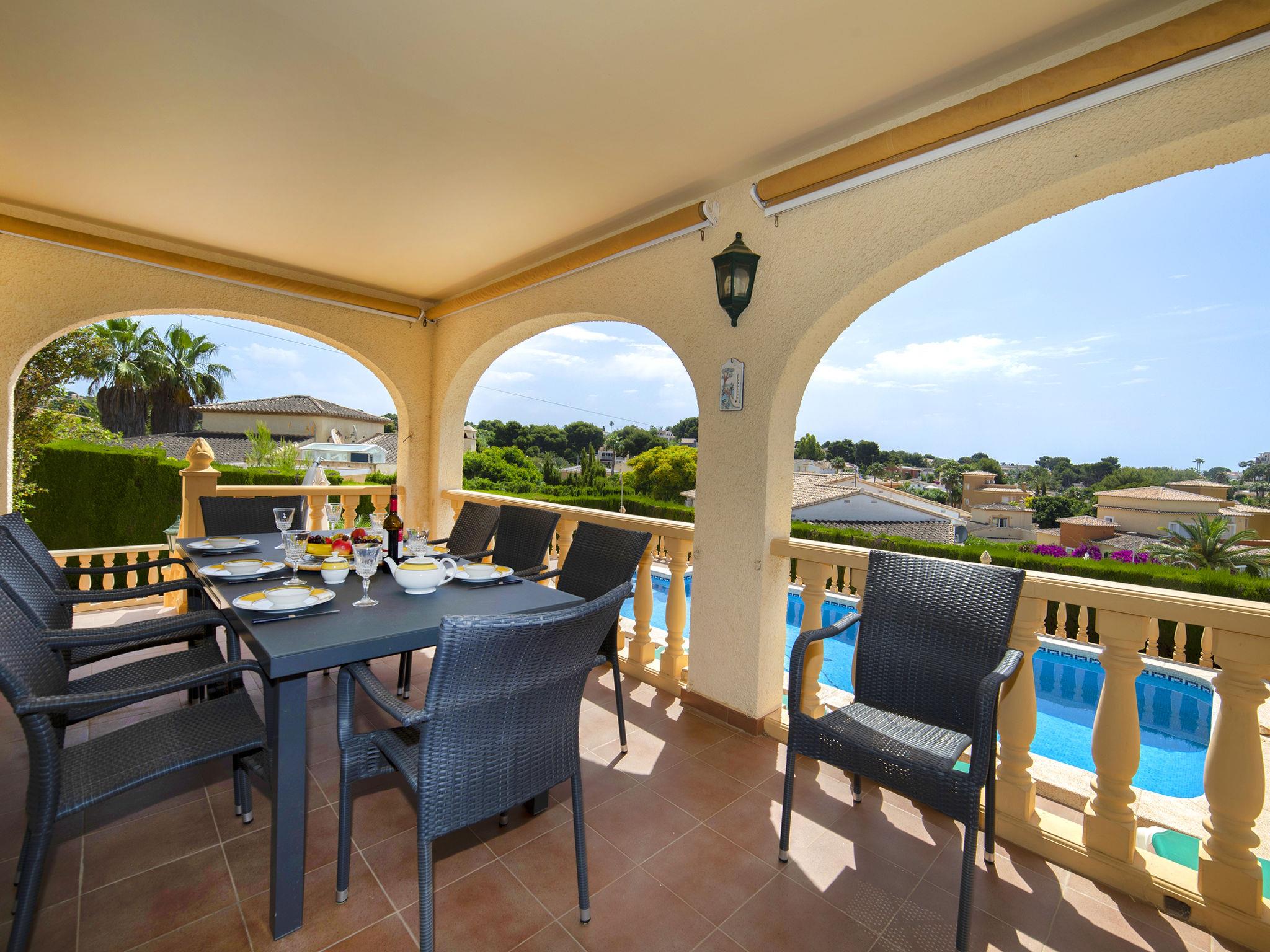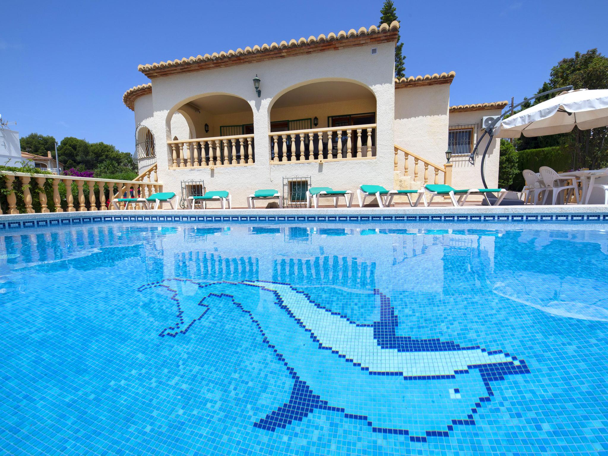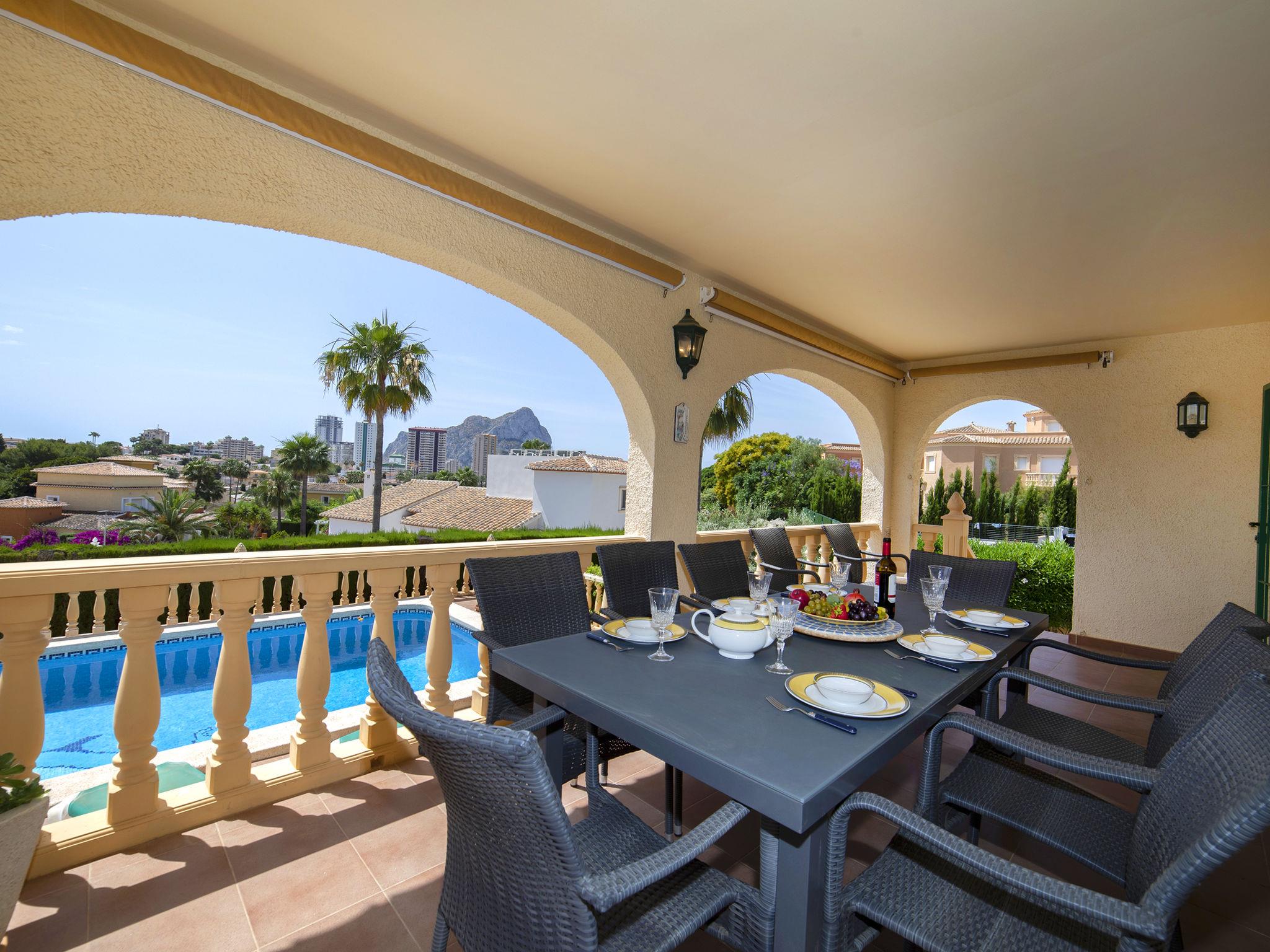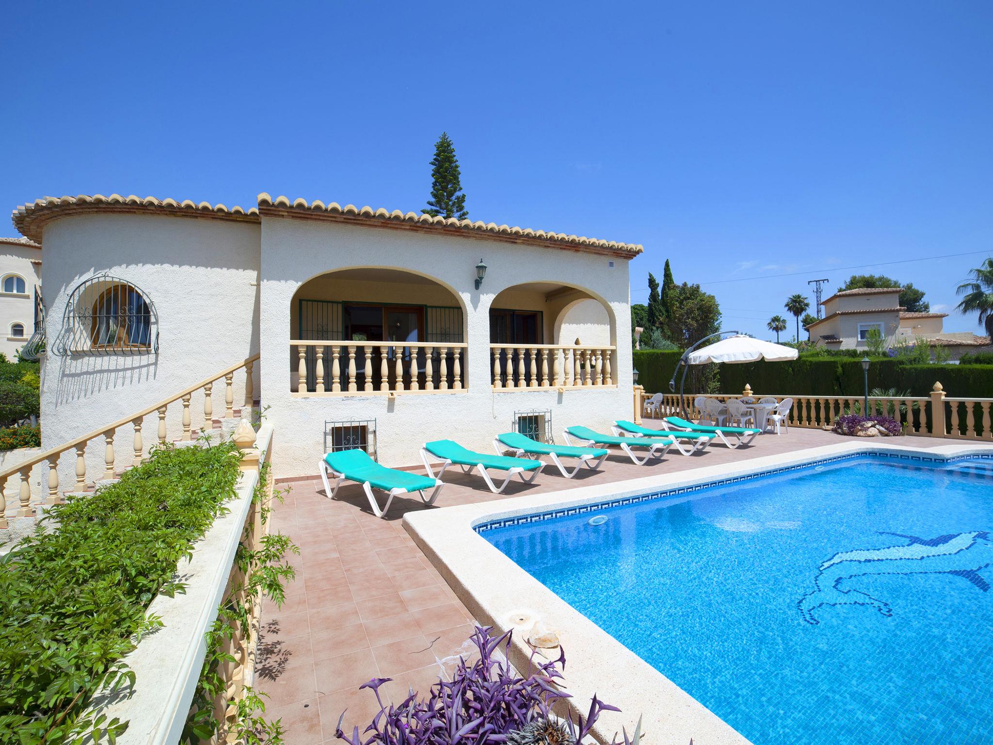 Costeres: Beautiful, comfortable single-family house "Marie Louise". Outside the resort, 3 km from the centre of Calpe, in a quiet, sunny position residential area (villas). Private: property 791 m2 (fenced), well-kept garden, swimming pool angular (8 x 4 m, depth 120 - 190 cm, seasonal availability: 01.Jan. - 31.Dec.). Outdoor shower, terrace, garden furniture. Stepped path to the house. Parking at the house, single garage at the house. Shop 1.2 km, supermarket 1.2 km, restaurant 1 km, bar 1 km, bus stop 800 m, diving center 2.5 km. Sports harbour 2.5 km, golf course (9 hole) 9 km. Nearby attractions: Peñón de Ifach 2.5 km, Salinas de Calpe 2.5 km, Terra Mítica, Aqualandia, Terra Natura, Mundomar, Benidorm Palace (Benidorm).