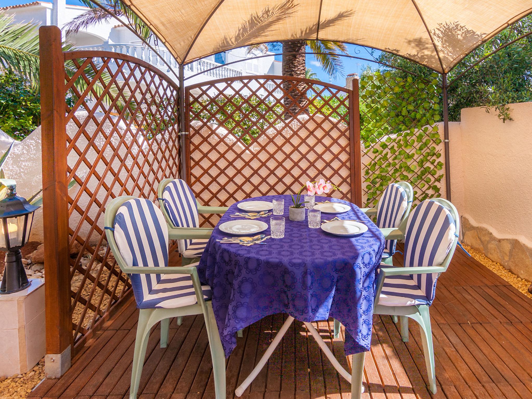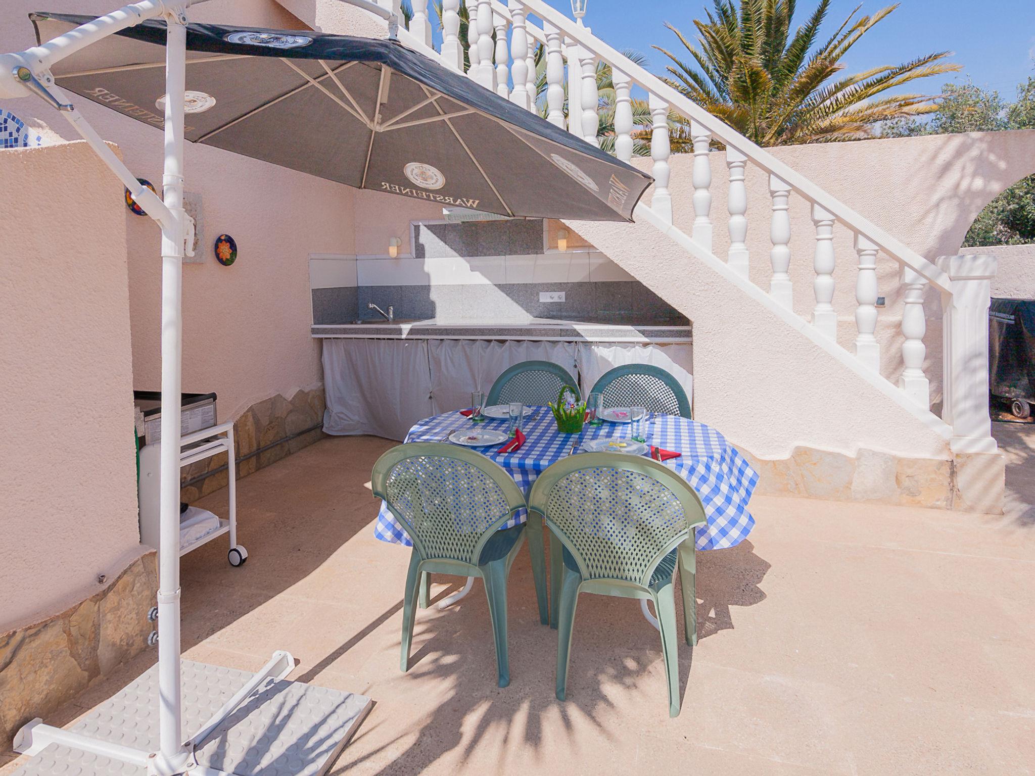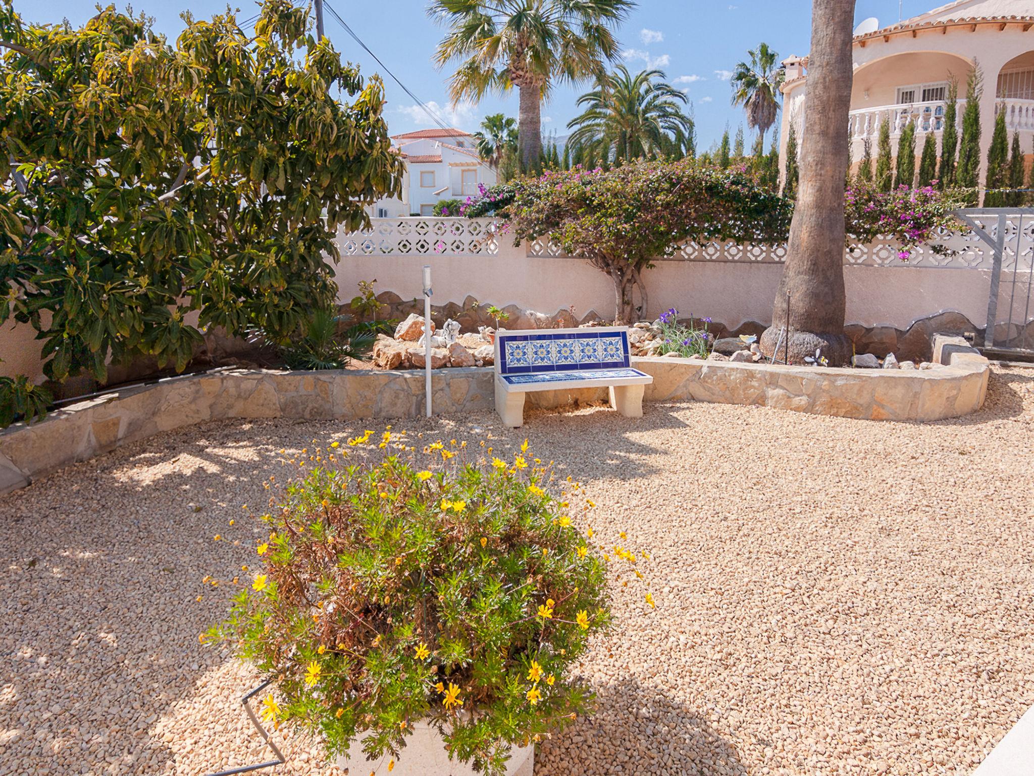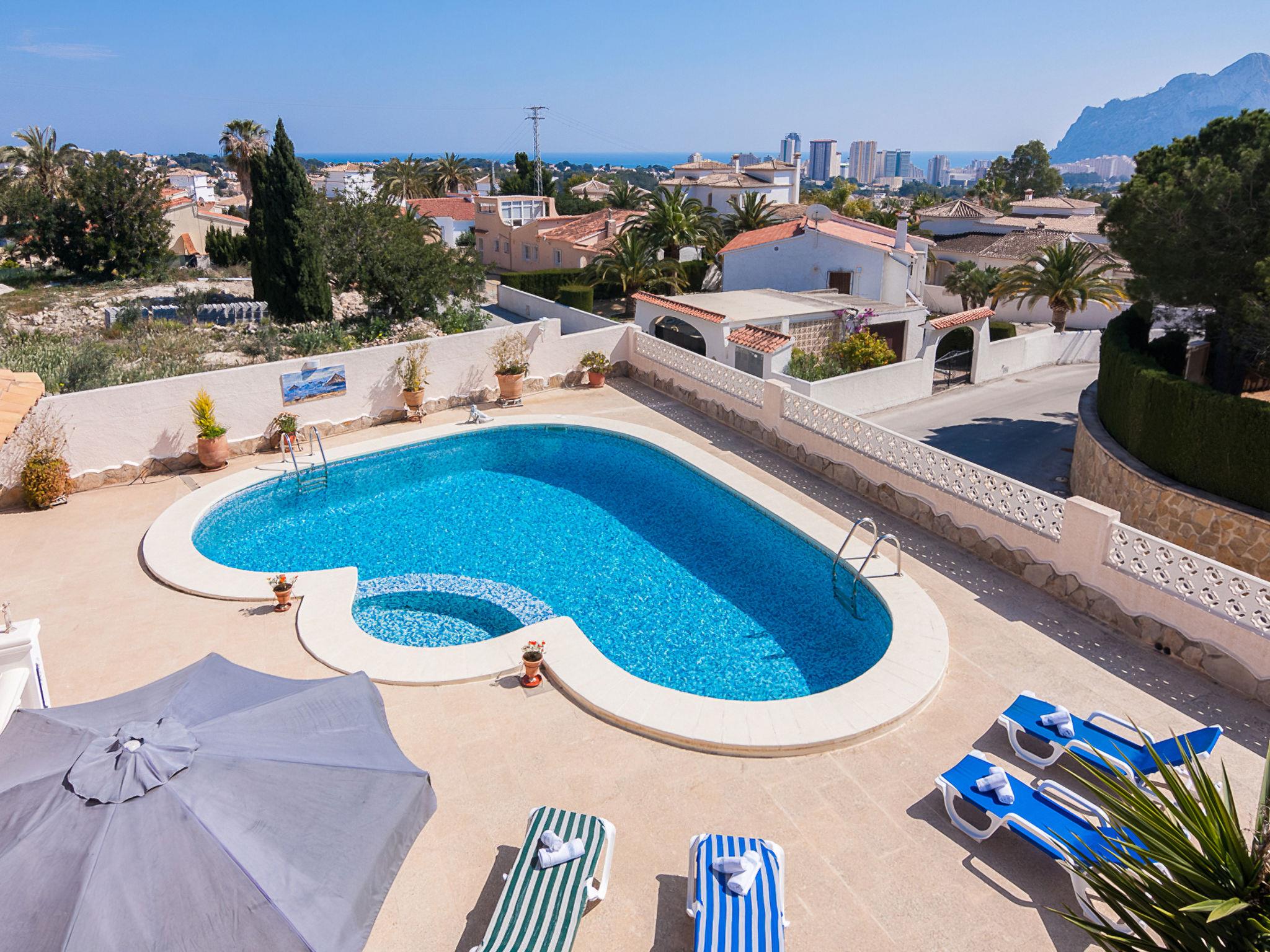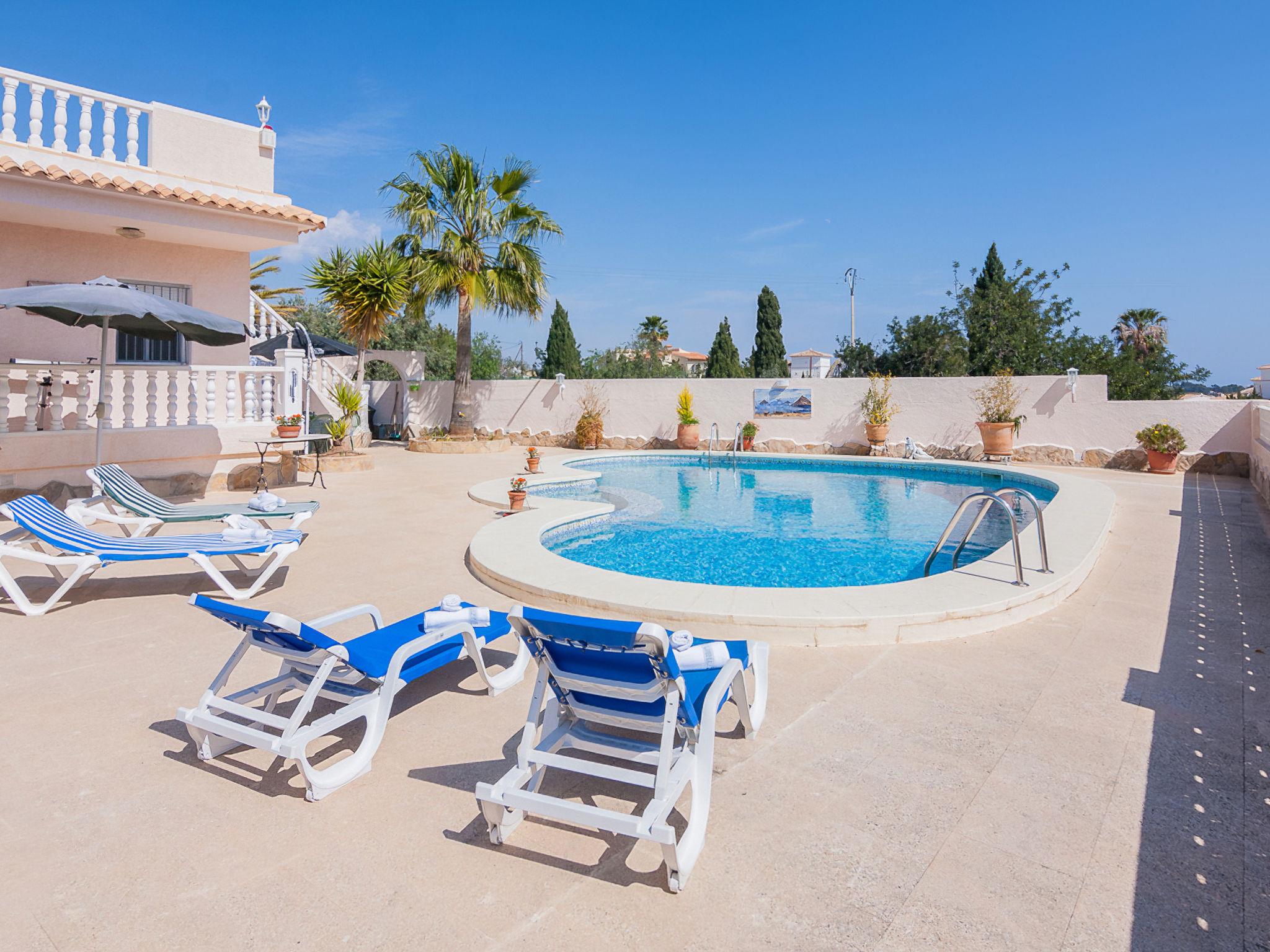 Partida Vallesa: Beautiful, cosy villa "Quito". Outside the resort, 2.9 km from the centre of Calpe, in the district Vallesa, in a secluded, sunny position residential area (villas), 2.1 km from the sea, 2.5 km from the beach. Private: property 820 m2 (fenced), swimming pool kidney shaped, fenced (9 x 5 m, depth 140 - 220 cm, seasonal availability: 01.Jan. - 31.Dec.). Outdoor shower, arbour, terrace, garden furniture, barbecue, pool maintenance by the owner/gardener. Parking. Shop 1.6 km, supermarket 1.6 km, restaurant 900 m, bar, bakery 1.6 km, internet café 900 m, pub garden, 34 minute walk to the centre, bus stop "Bus" 100 m, sandy beach "Playa de la Fosa" 2.5 km, swimming bay 1.9 km. Sports harbour 3.3 km, marina 3.3 km, surf school 3.3 km, sailing school 3.3 km. Nearby attractions: Peñon de Ifach, Salinas de Calpe, Parque de la Vallesa. Please note: baby equipment on request (extra). The owner does not accept any youth groups.