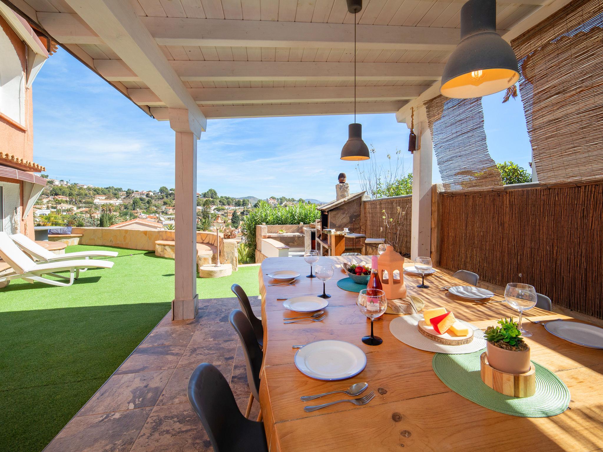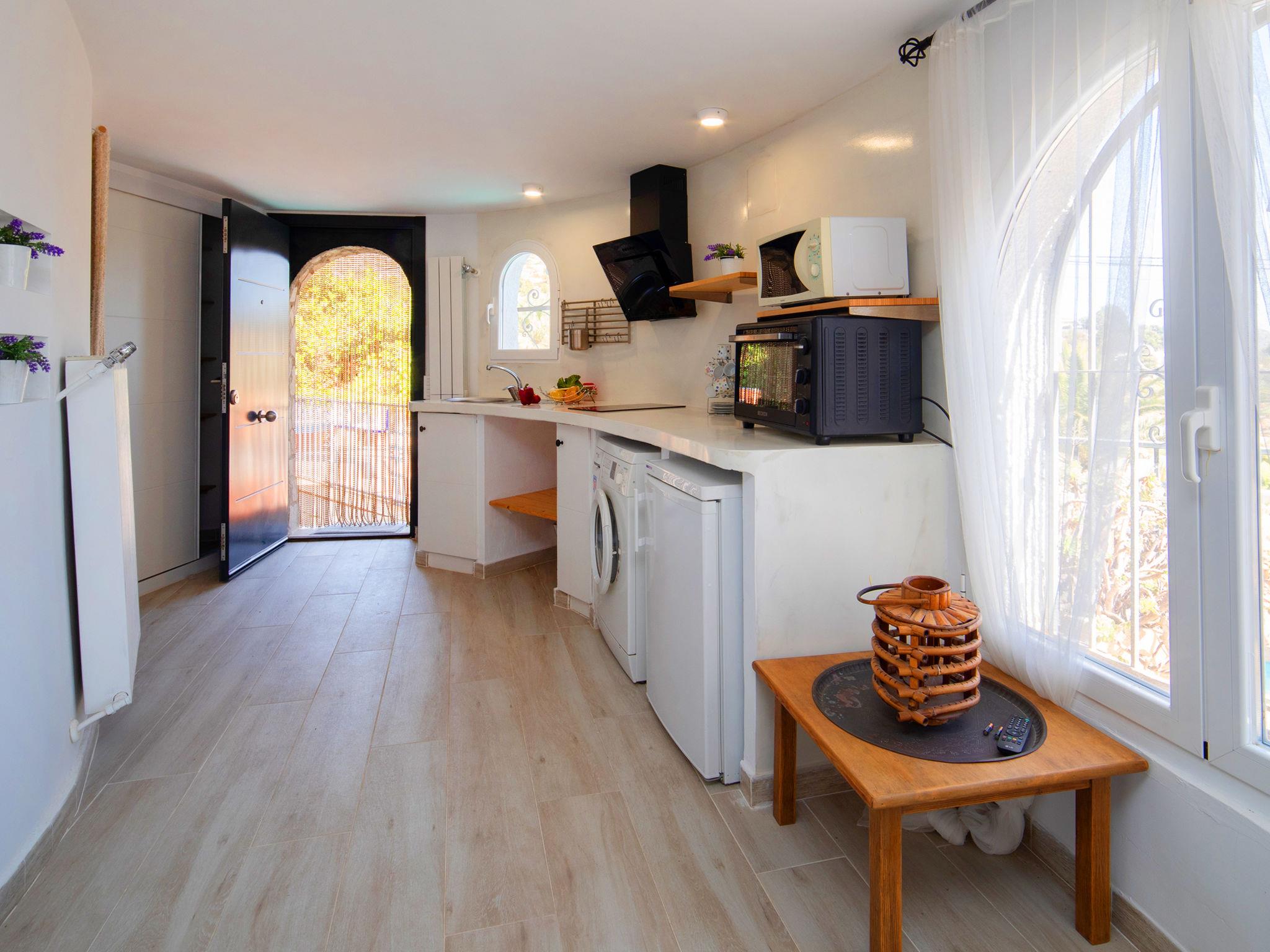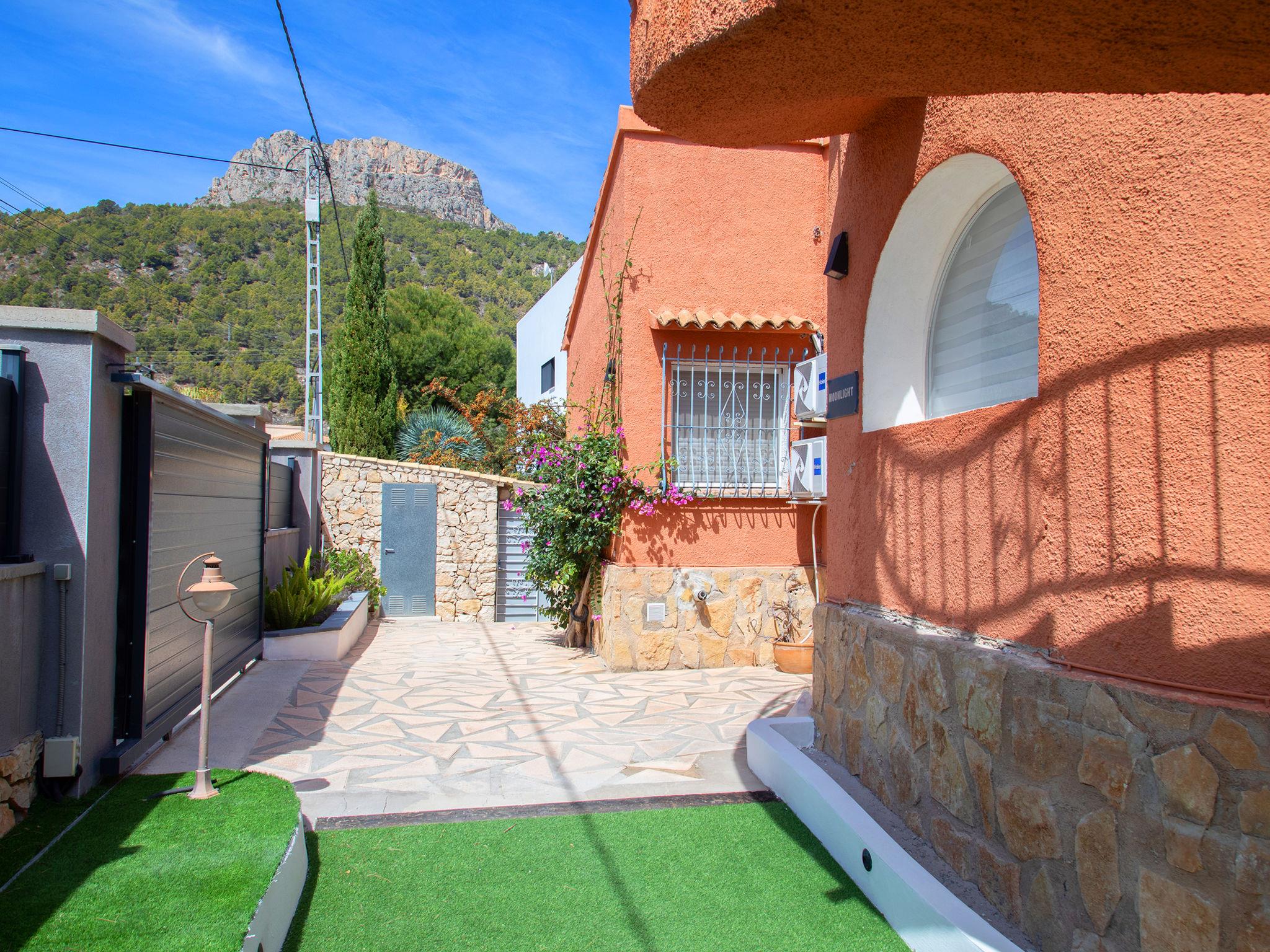 CANUTA 2 km from Calpe Centro: Large, beautiful villa "Moonlight", 2 storeys, built in 2023. 1.8 km from the centre of Calpe, in the district Canuta, in a sunny position residential area (villas), traffic calmed area, 1 km from the sea, 1 km from the beach, in a cul-de-sac. For shared use: property 636 m2 (fenced). Private: property 636 m2 (fenced), garden, swimming pool angular (8 x 4 m, depth 150 - 150 cm, seasonal availability: 01.Jan. - 31.Dec.). Outdoor shower. Shop 2 km, grocery 2 km, supermarket 2 km, restaurant 1 km, bar 1 km, bus stop 1 km, sandy beach "Playa Puerto Blanco" 1.2 km. Sports harbour 4.7 km, marina 4.7 km, golf course (9 hole) 14 km, surf school 4.7 km, sailing school 4.7 km. Nearby attractions: Aqualandia, Mundomar, Terra Mítica, Terra Natura, Les Fonts de l'Algar, Castillo de Guadalest. Please note: baby equipment (included). The owner does not accept any youth groups. 1st floor is closed and not occupied.