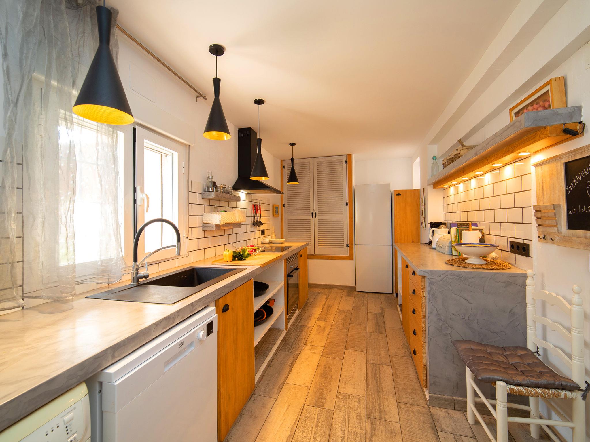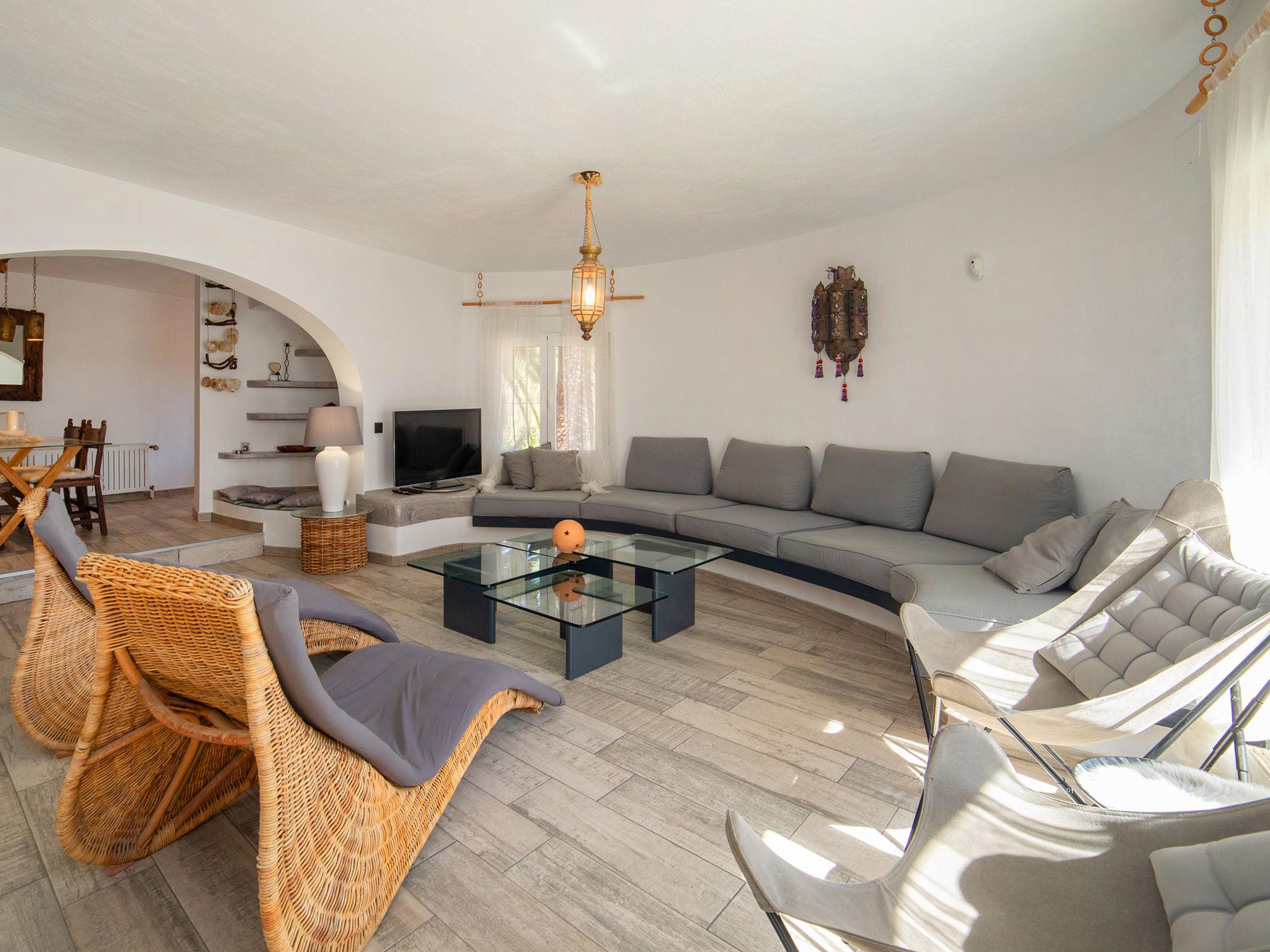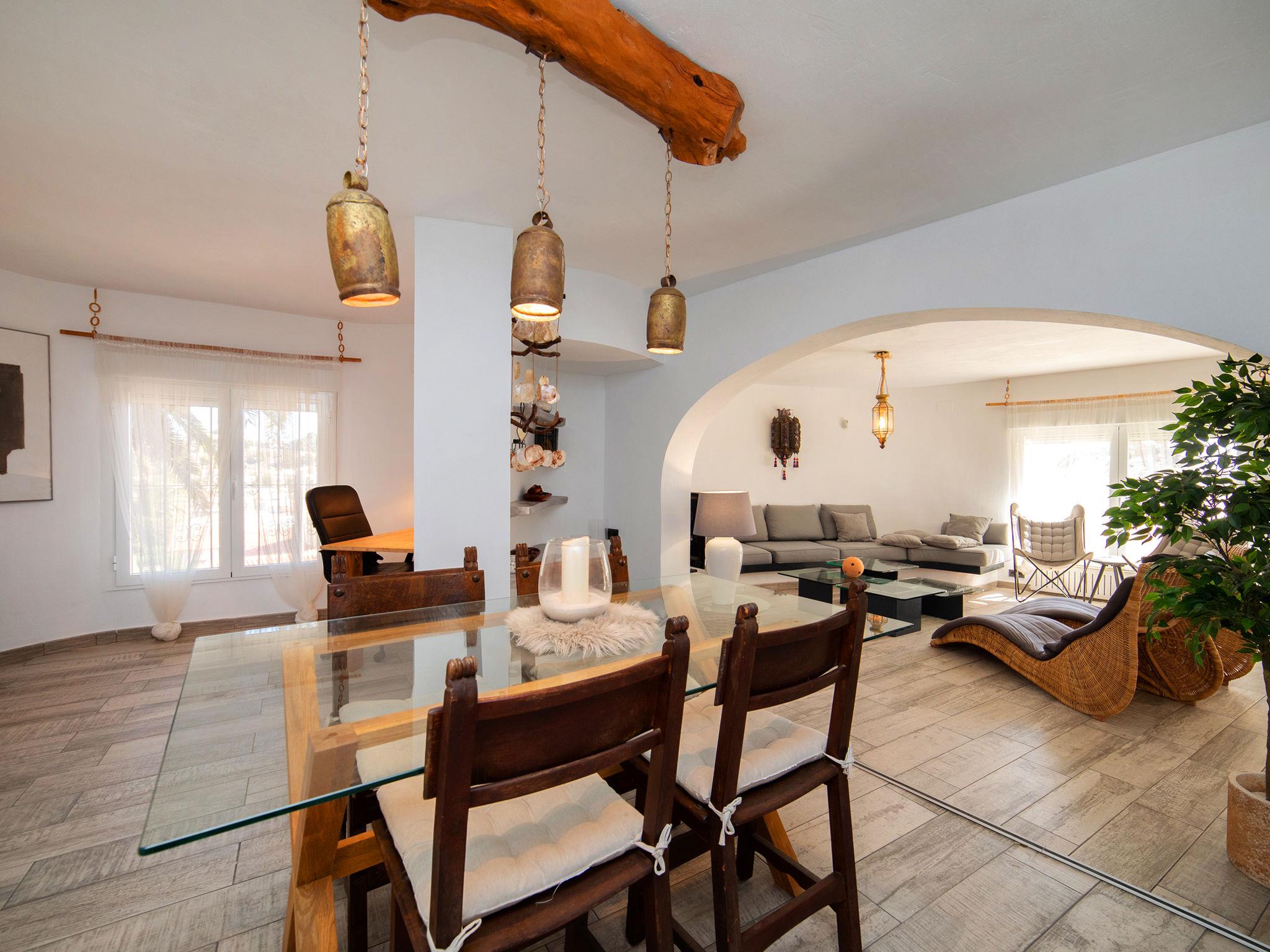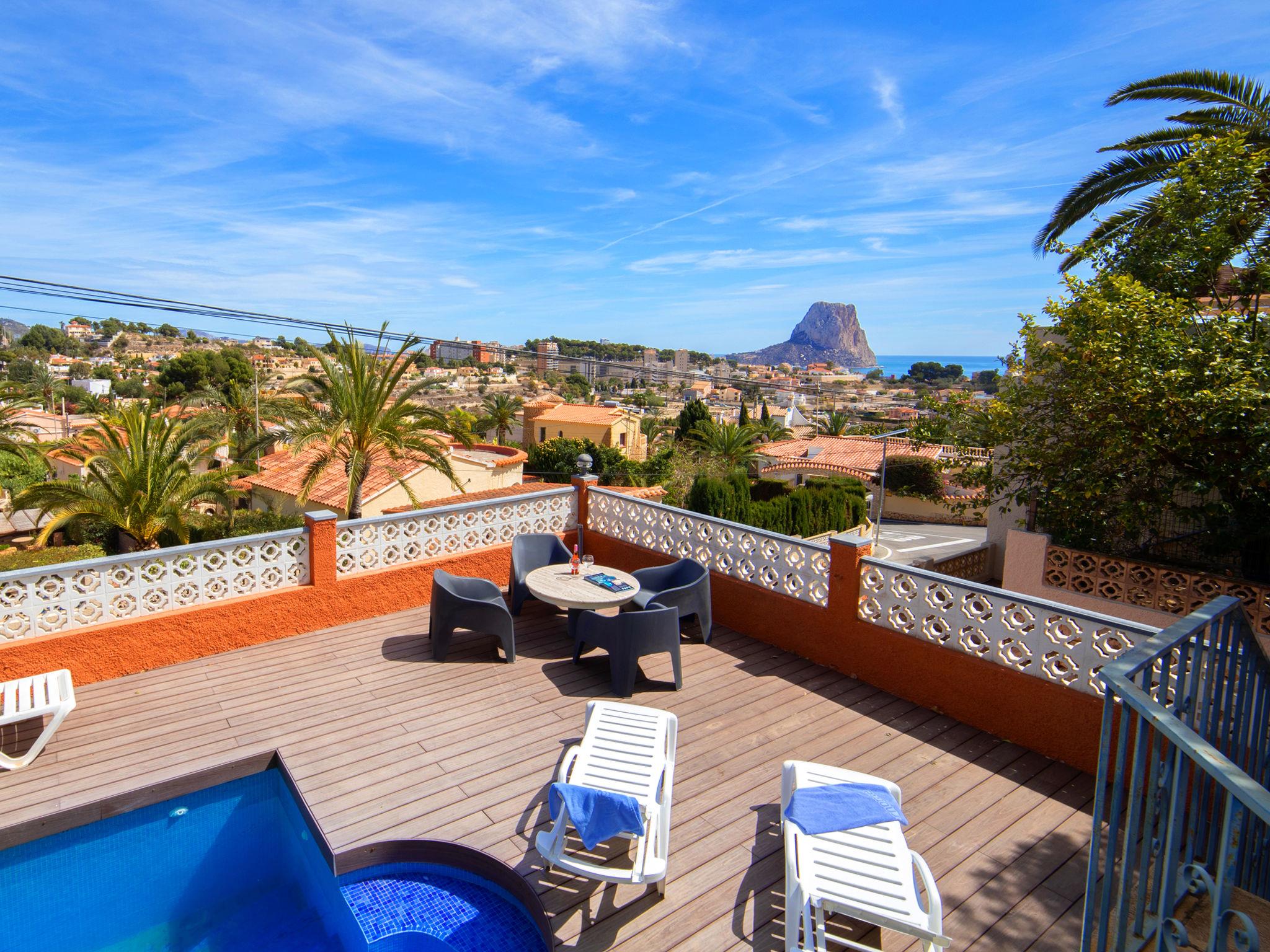 CANUTA 2 km from Calpe Centro: Large, beautiful villa "Moonlight", 2 storeys, built in 2023. 1.8 km from the centre of Calpe, in the district Canuta, in a sunny position residential area (villas), traffic calmed area, 1 km from the sea, 1 km from the beach, in a cul-de-sac. For shared use: property 636 m2 (fenced). Private: property 636 m2 (fenced), garden, swimming pool angular (8 x 4 m, depth 150 - 150 cm, seasonal availability: 01.Jan. - 31.Dec.). Outdoor shower. Shop 2 km, grocery 2 km, supermarket 2 km, restaurant 1 km, bar 1 km, bus stop 1 km, sandy beach "Playa Puerto Blanco" 1.2 km. Sports harbour 4.7 km, marina 4.7 km, golf course (9 hole) 14 km, surf school 4.7 km, sailing school 4.7 km. Nearby attractions: Aqualandia, Mundomar, Terra Mítica, Terra Natura, Les Fonts de l'Algar, Castillo de Guadalest. Please note: baby equipment (included). The owner does not accept any youth groups. 1st floor is closed and not occupied.