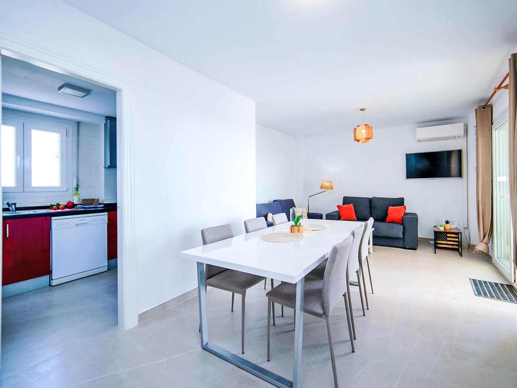 "Talima", 4-room apartment 81 m2 on 1st floor. Spacious and bright, comfortable and beautiful furnishings: living/dining room with digital TV, air conditioning and forced-air heating. Exit to the terrace. 1 room with 1 french bed (1 x 160 cm, length 200 cm), shower/WC and fan. 2 rooms, each room with 2 beds (90 cm, length 200 cm), fan. Kitchen (oven, dishwasher, 3 ceramic glass hob hotplates, toaster, kettle, microwave, electric coffee machine). Bath/WC. Large terrace. Terrace furniture. Beautiful view of the sea and the town. Facilities: washing machine, iron, hair dryer. Internet (WiFi, free). Parking space n 28 (roofed). Please note: non-smoking house. CV-VUT0492724-A // Reg. Nr.: ESFCTU000003029000432212000000000000000CVVUT0492724A3