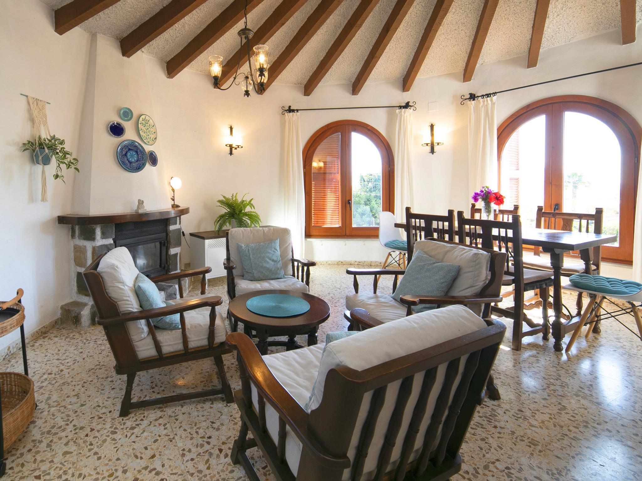 "Silene", 3-room house 57 m2. Simple furnishings: living/dining room with open-hearth fireplace, satellite TV, digital TV, international TV channels, flat screen and gas heater. Exit to the terrace. 1 room with 1 french bed (160 cm, length 200 cm). 1 room with 2 beds (90 cm, length 190 cm). Kitchen (4 hot plates, oven, dishwasher, toaster, kettle, microwave, freezer, electric coffee machine). Exit to the terrace. Shower/WC. Terrace furniture. View of the sea. Facilities: washing machine, iron, children's high chair, baby cot for up to 2 year olds, hair dryer. Parking, garage on the property at the house. Please note: suitable for families. Non-smoking house. VT-4137-V // Reg. Nr.: ESFCTU00000302900026488200000000000000000000VT-4137V0