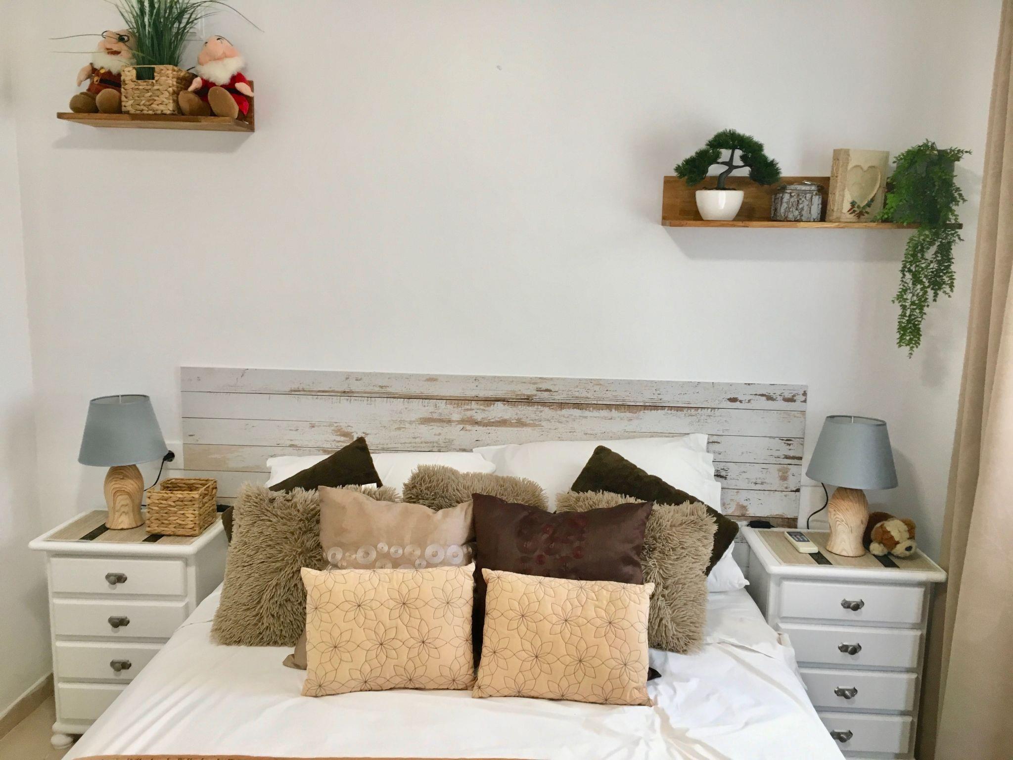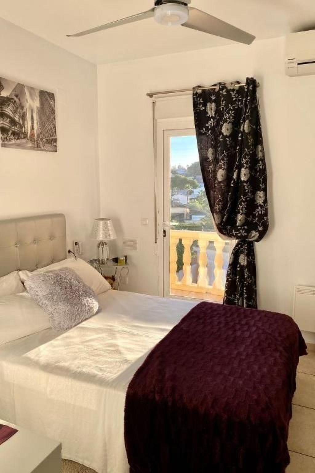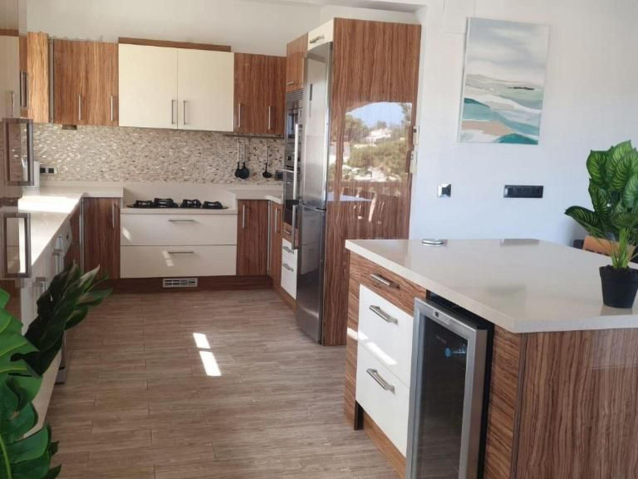 The second apartment comprises a master bedroom that is situated at the entrance (lower) which then leads up the main staircase to the dining area, and a brand new modern kitchen with island, and large open plan living room, with two large sofas, for relaxing. From the living room onto a balcony with cane furniture, with beautiful views over Calpe and the rock Ifach. There is a door leading from the living room to the hallway, where there is 1 bedroom with single beds, a two bedroom with double bed (en suite) and a family bathroom.