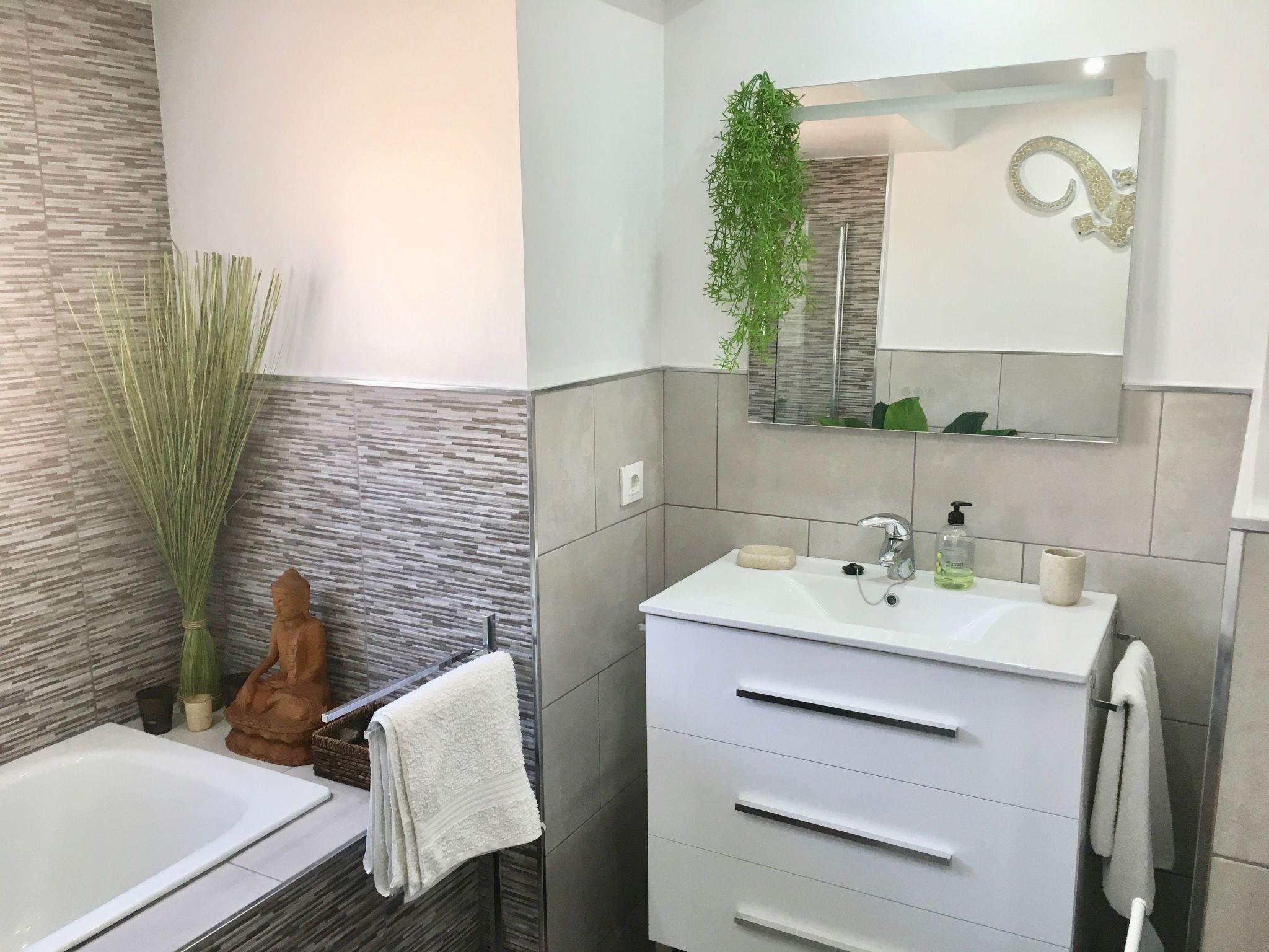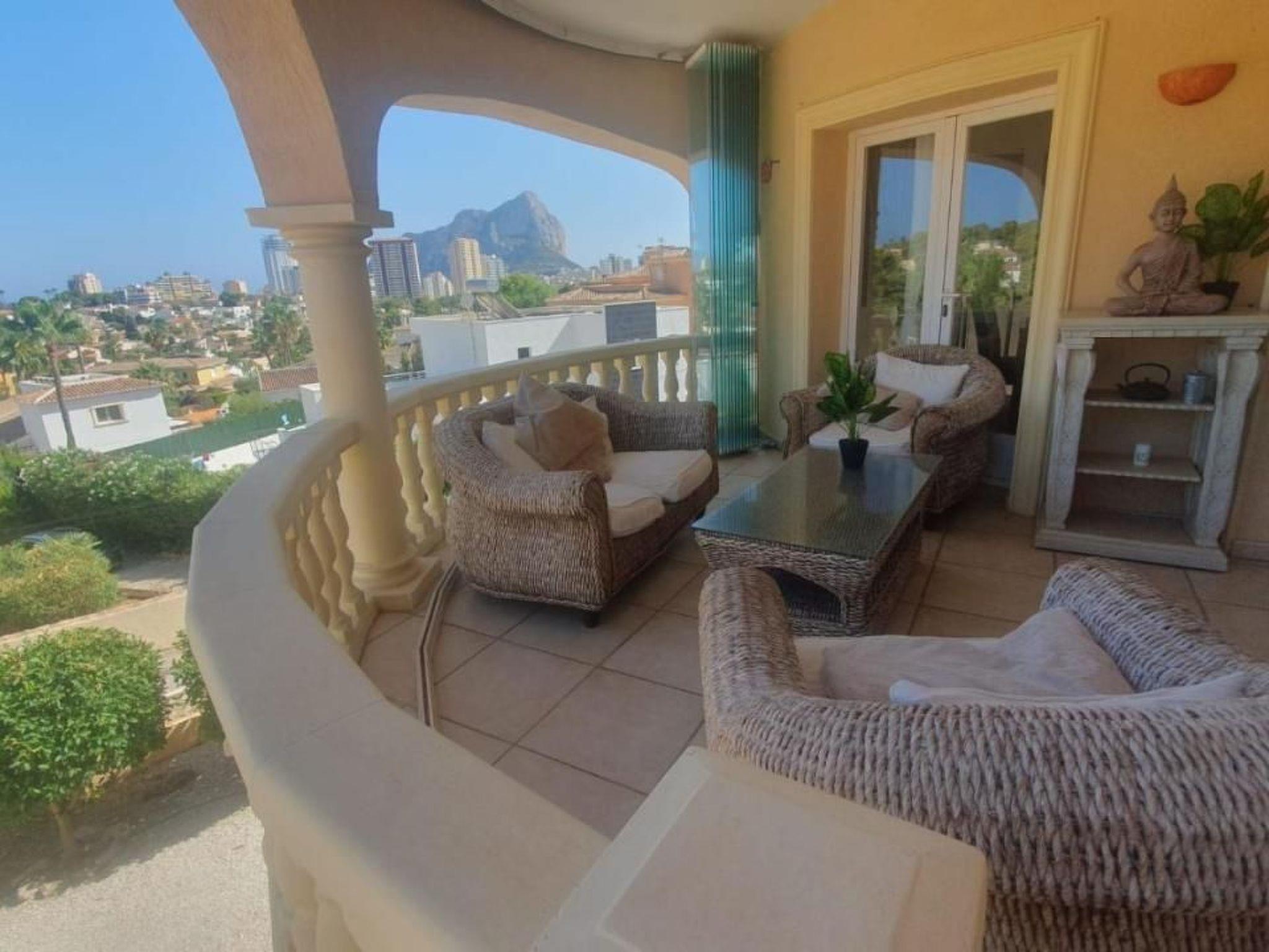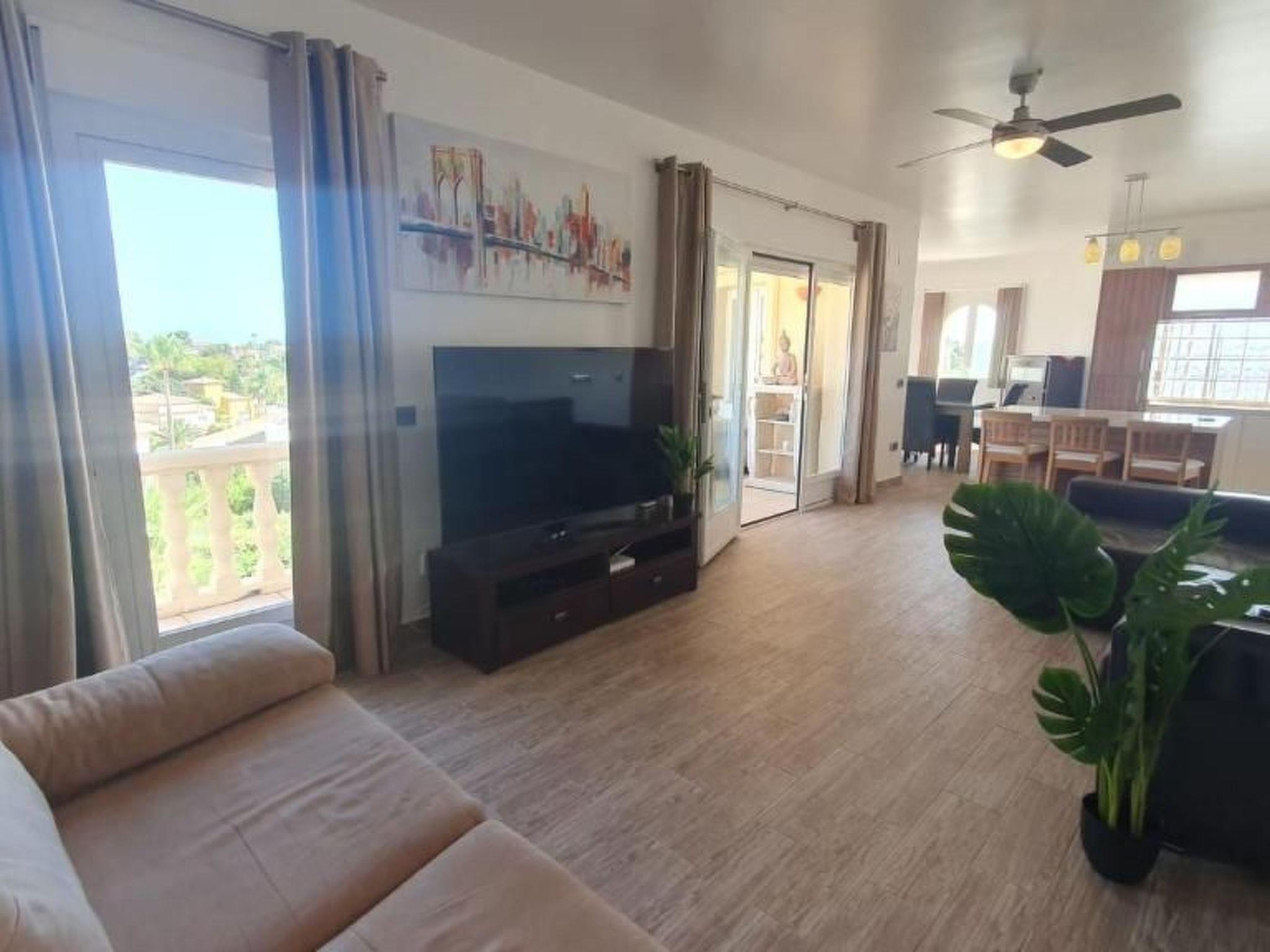 The second apartment comprises a master bedroom that is situated at the entrance (lower) which then leads up the main staircase to the dining area, and a brand new modern kitchen with island, and large open plan living room, with two large sofas, for relaxing. From the living room onto a balcony with cane furniture, with beautiful views over Calpe and the rock Ifach. There is a door leading from the living room to the hallway, where there is 1 bedroom with single beds, a two bedroom with double bed (en suite) and a family bathroom.