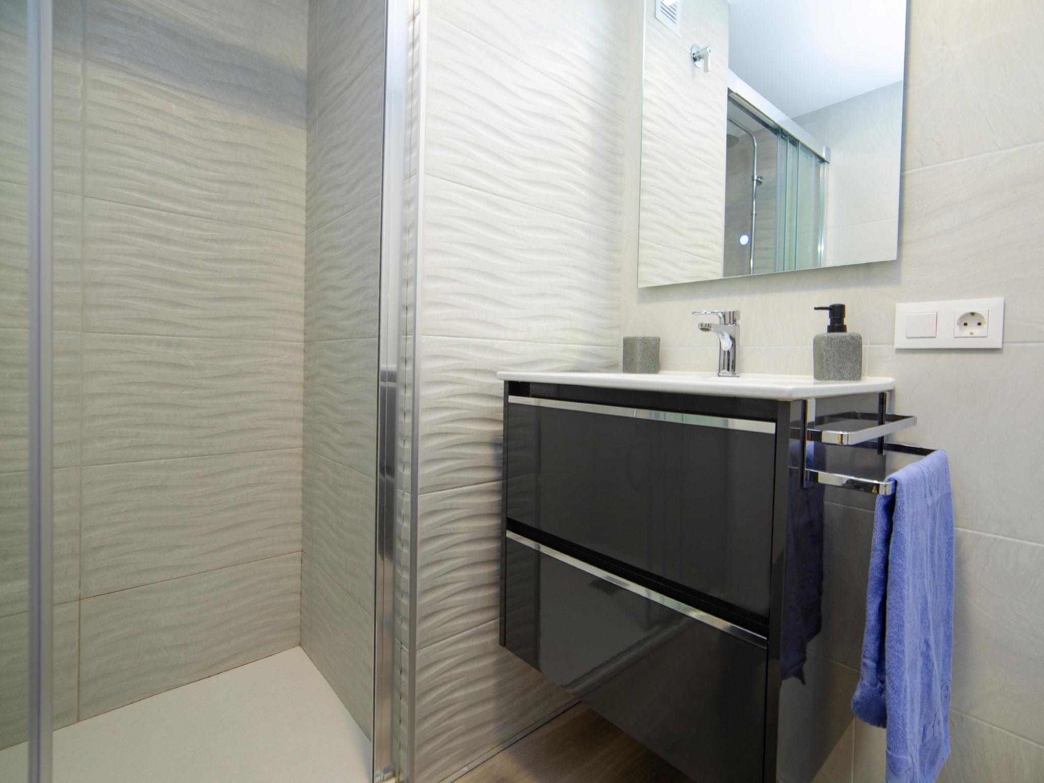 "Voramar", 2-room apartment 54 m2 on 1st floor. Object suitable for 2 adults + 2 children. Bright, comfortable and beautiful furnishings: living/dining room with 1 sofabed (150 cm, length 200 cm), TV, air conditioning and forced-air heating. Exit to the terrace. 1 room with 1 french bed (1 x 150 cm, length 200 cm). Open kitchen in the entrance (oven, 2 induction hot plates, toaster, kettle, microwave). Shower/WC. Large terrace. Terrace furniture. View of the sea and the swimming pool. Facilities: washing machine, iron, children's high chair, baby cot for up to 2 year olds, hair dryer. Internet (WiFi, free). Please note: non-smoking house. VT-486387-A // Reg. Nr.: ESFCTU00000302900034374700000000000000000VT-486387-A3