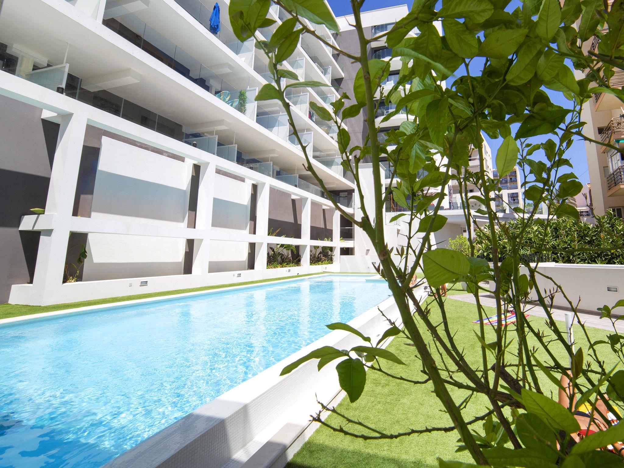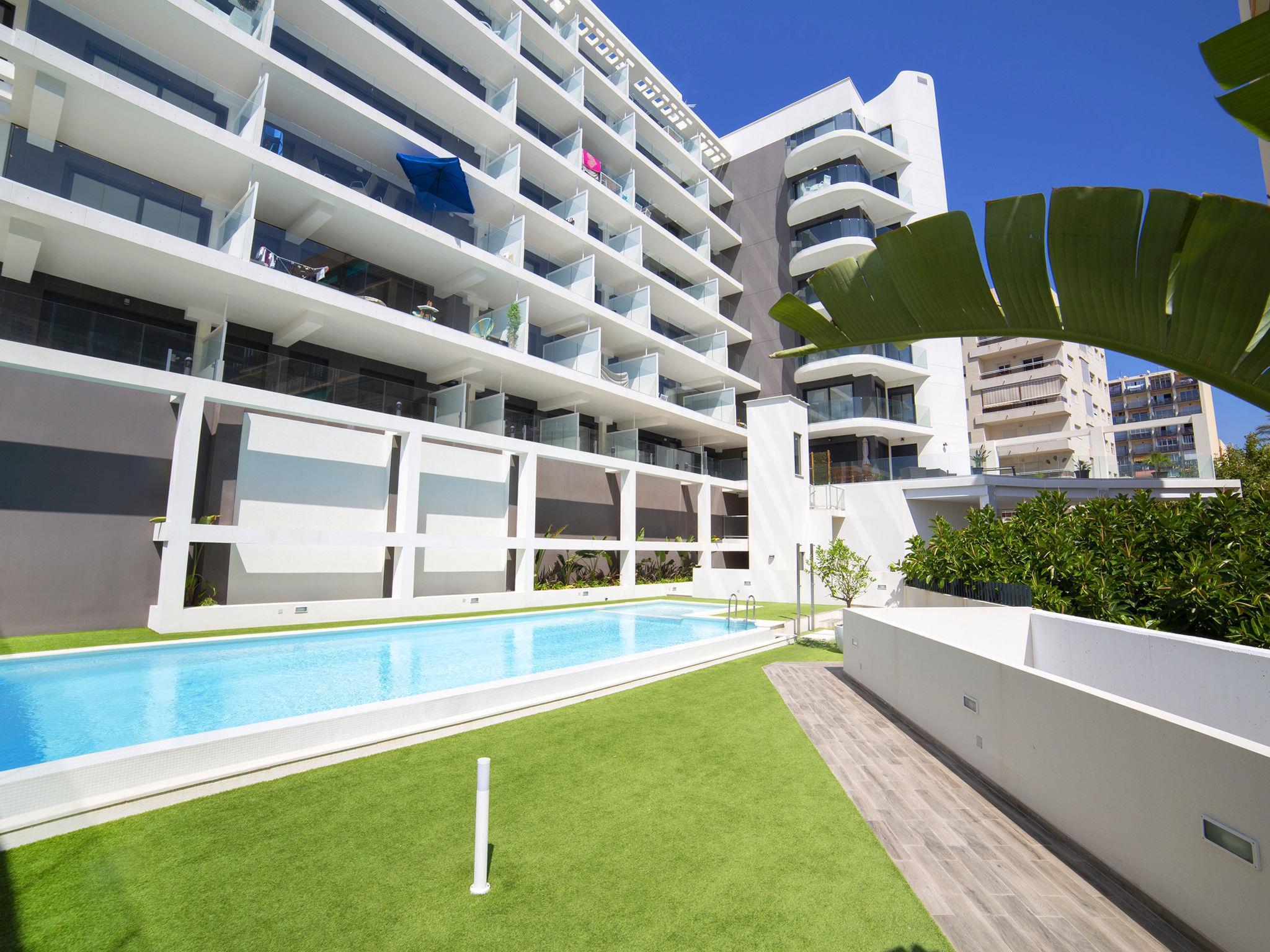 Calpe Centro: Modern, beautiful apartment block "Calpe Beach I", 10 storeys, built in 2019. 62 apartments in the residence. In the centre of Calpe, in a central position, excellent location: right in the centre but still quiet, 100 m from the sea, 100 m from the beach. For shared use: swimming pool (seasonal availability: 16.Apr. - 15.Oct. pool opening hours: 10:00-21:00). WC in the pool area, outdoor shower. In the house: solarium, lift, roof terrace. Grocery, supermarket 100 m, restaurant, bar, café 30 m, bus stop "Parada Bus" 100 m, sandy beach "Playa Arenal" 100 m. Sports harbour 2.4 km, marina 2.4 km, golf course (9 hole) 10 km, sailing school 2.4 km. Nearby attractions: Aqualandia, Terra Mítica, Mundomar, Terra Natura, Benidorm Palace (Benidorm).