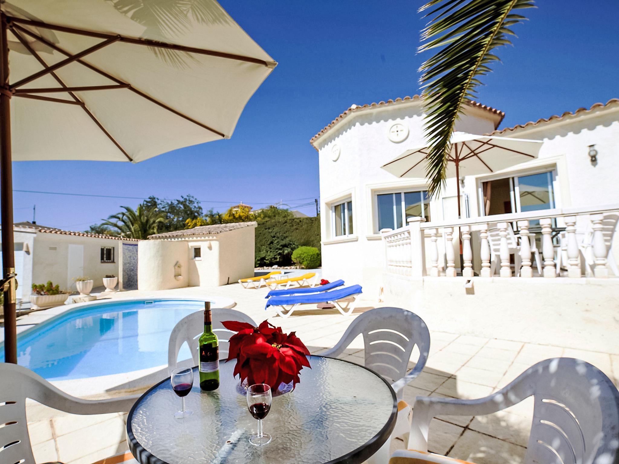 Carrio: Cosy, comfortable villa "Ingy". 4 km from the centre of Calpe, in the district Carrio, in a quiet, sunny position residential area (villas), 2 km from the sea, in a cul-de-sac. Private: property 800 m2 (fenced), swimming pool (8 x 4 m, depth 80 - 150 cm, seasonal availability: 01.Jan. - 31.Dec.) with internal staircase. Outdoor shower, terrace, garden furniture, barbecue. In the house: WiFi, air conditioning, washing machine. Parking. Shop 2 km, restaurant 2 km, bus stop "Estacion de Bus" 5 km, sandy beach "Playa de Calpe" 2 km. Sports harbour 3.3 km, marina 3.3 km, surf school 3.3 km, sailing school 3.3 km. Nearby attractions: Aqualandia, Mundomar, Terra Mítica, Terra Natura, y Benidorm Palace (Benidorm).