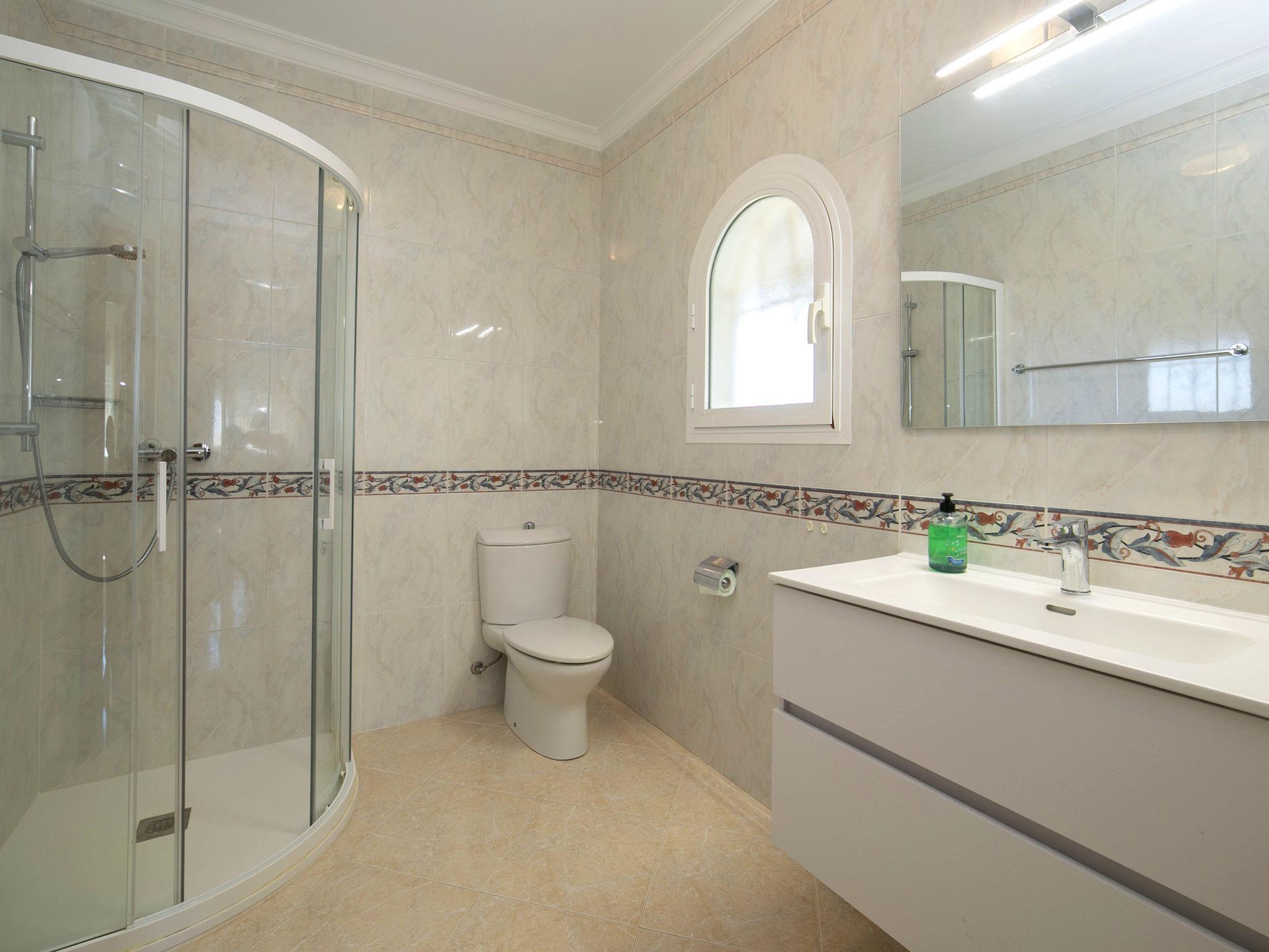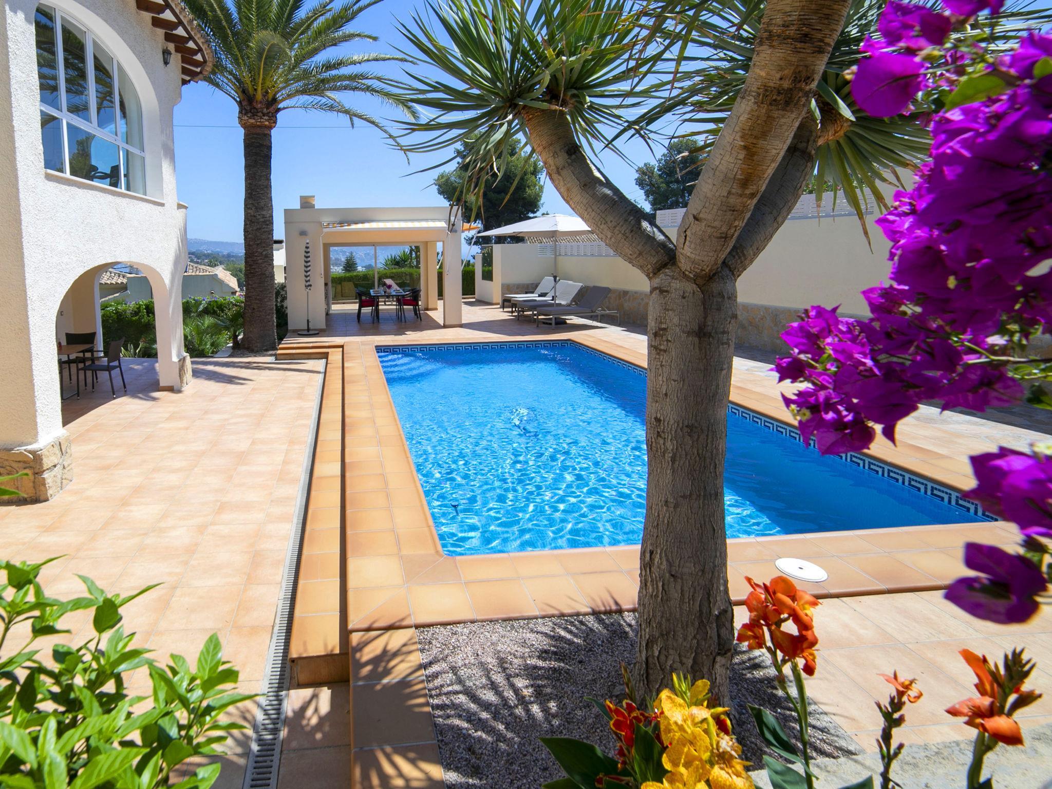 La Fustera: Cosy, comfortable villa "El Descanso", 2 storeys. 5.8 km from the centre of Calpe, in the district La Fustera, 900 m from the sea. Private: property 800 m2 (fenced), beautiful, well-kept garden, swimming pool (4 x 8 m, depth 100 - 180 cm, seasonal availability: 01.Jan. - 31.Dec.) with internal staircase. Outdoor shower, arbour, terrace, garden furniture, barbecue, barbecue house. In the house: central heating system, air conditioning. Stepped path (18 steps) to the house. Roofed, parking (for 2 cars) on the premises. Supermarket, restaurant, bar 500 m, bus stop "Parada Bus" 4.4 km, sandy beach 900 m. Sports harbour 3 km. Nearby attractions: Aqualandia, Mundomar, Terra Mítica, Terra Natura, y Benidorm Palace (Benidorm). Hiking paths: Peñon de Ifach. Part of the house is closed and unoccupied.