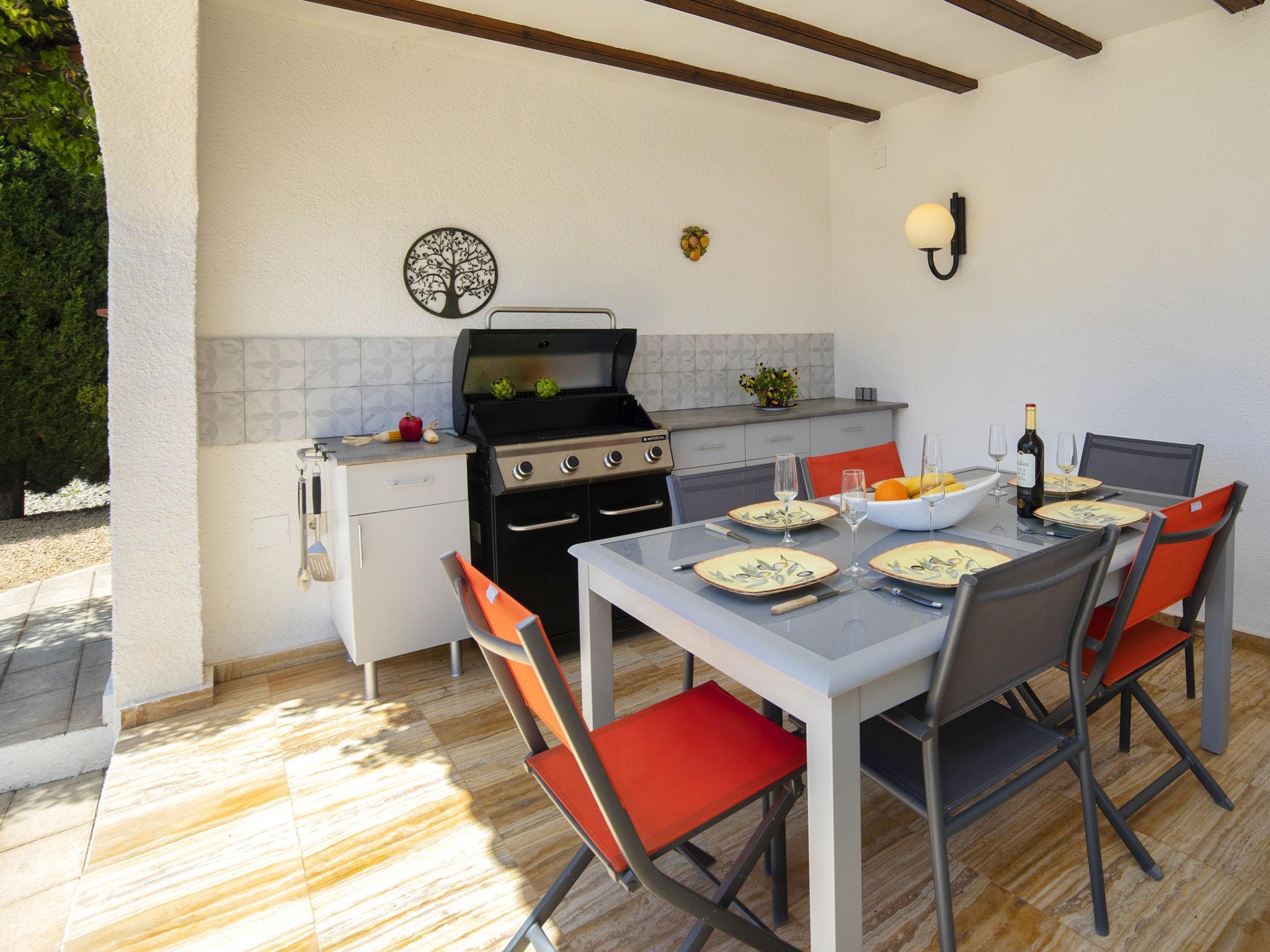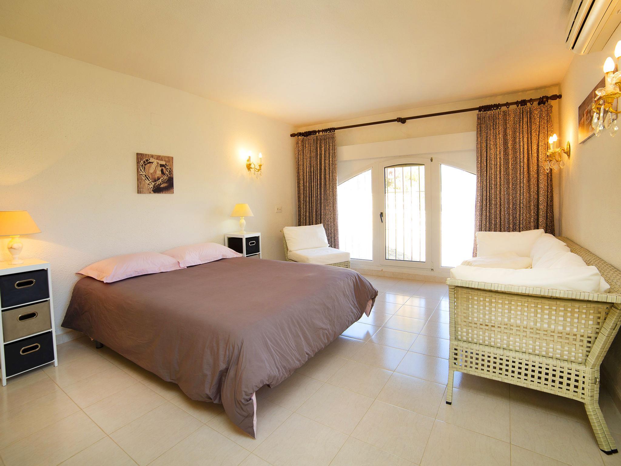 Gran Sol: House "La Grippiere". In the resort 4.4 km from the centre of Calpe, in a quiet, sunny position, 2.1 km from the sea. Private: property 900 m2 (fenced), terraced garden, swimming pool (4 x 9 m, depth 145 - 195 cm, seasonal availability: 01.Jan. - 31.Dec.) with internal staircase. Terrace. Stepped path (15 steps) to the house. Supermarket 2.8 km, restaurant 2.1 km, bar 2.1 km, bus stop "Parada bus" 1.6 km, sandy beach 2.2 km. Sports harbour 4.6 km, marina 4.6 km, golf course (9 hole) 7.8 km, tennis 3.8 km. Nearby attractions: Aqualandia, Mundomar, Terra Mítica, Terra Natura, Benidorm Palace en Benidorm.
