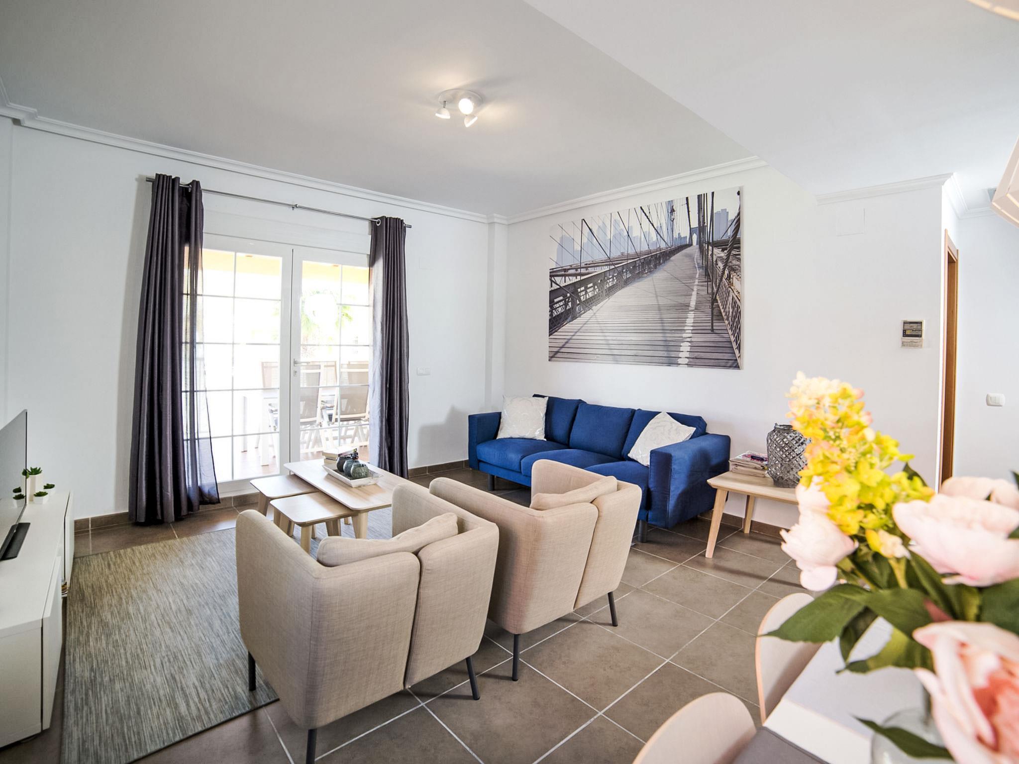 "Luz del Sol", 5-room terraced house on 2 levels. Spacious and bright, comfortable and modern furnishings: living/dining room with satellite TV, digital TV and DVD. Exit to the terrace. 1 room with 1 french bed and shower/WC. 1 room with 2 beds. Kitchen (4 hot plates, oven, dishwasher, microwave, freezer, electric coffee machine, combination microwave). Shower/WC. Air-conditioning, forced-air heating. Upper floor: 1 double bedroom. 1 room with 2 beds. Bath/WC. Air-conditioning, forced-air heating. Terrace furniture, barbecue. Facilities: washing machine, dryer. Internet (WiFi, free). Garage (2 cars). AT-451015-A // Reg. Nr.: ESFCTU00000302900059721800000000000000000AT-451015-A6