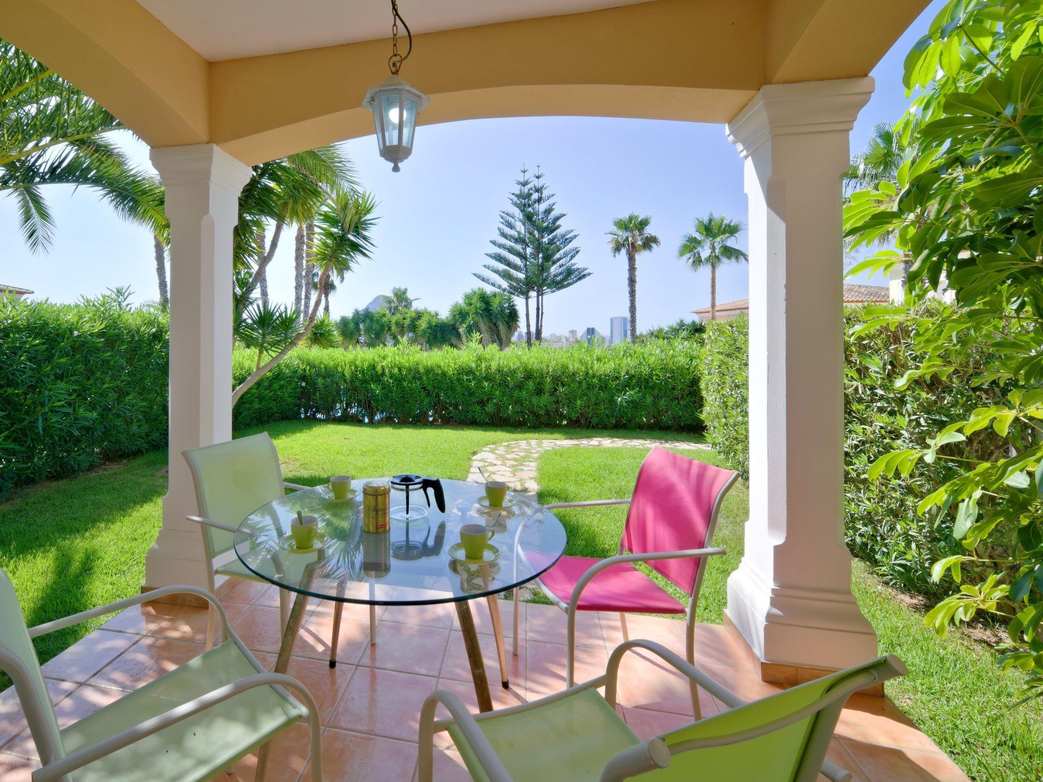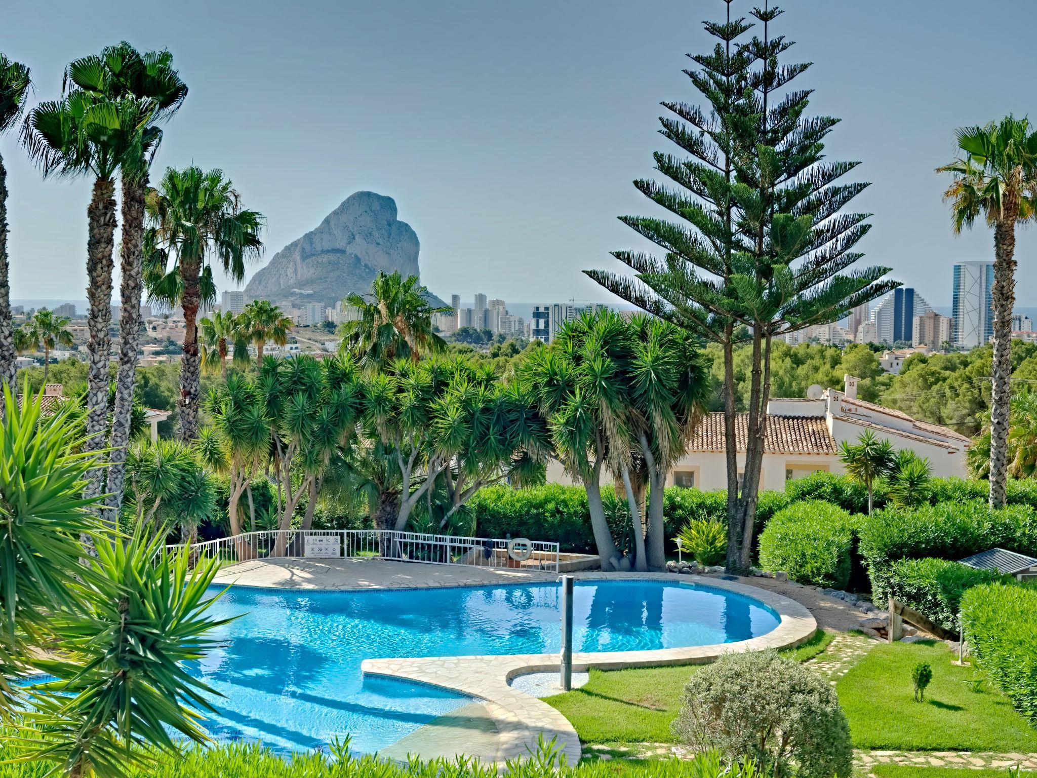 Very beautiful bungalow "Bel-Air", 2 storeys, semi-detached. 15 houses in the resort. In the resort 2 km from the centre of Calpe, in the district Garduix, in a quiet, sunny position residential area (villas), traffic calmed area, 2 km from the sea, 2 km from the beach. For shared use: property (fenced) with lawn and plants, lawn for sunbathing, beautiful garden to relax, swimming pool (15 x 14 m, depth 50 - 200 cm, seasonal availability: 01.Jan. - 31.Dec.). Outdoor shower. Private: property (fenced). Terrace, barbecue. Supermarket 1.5 km, restaurant 1 km, café 1 km, bus stop 1.5 km, sandy beach "Playa Arenal" 2 km. Sports harbour 3.8 km, marina 3.8 km, golf course (9 hole) 12 km, surf school 3.8 km, sailing school 3.8 km, tennis 1.1 km. Nearby attractions: Aqualandia, Mundomar, Terra Mítica, Terra Natura, Benidorm Palace (Benidorm), Les Fonts de l'Algar, Castillo de Guadalest. Residence with electric gates.