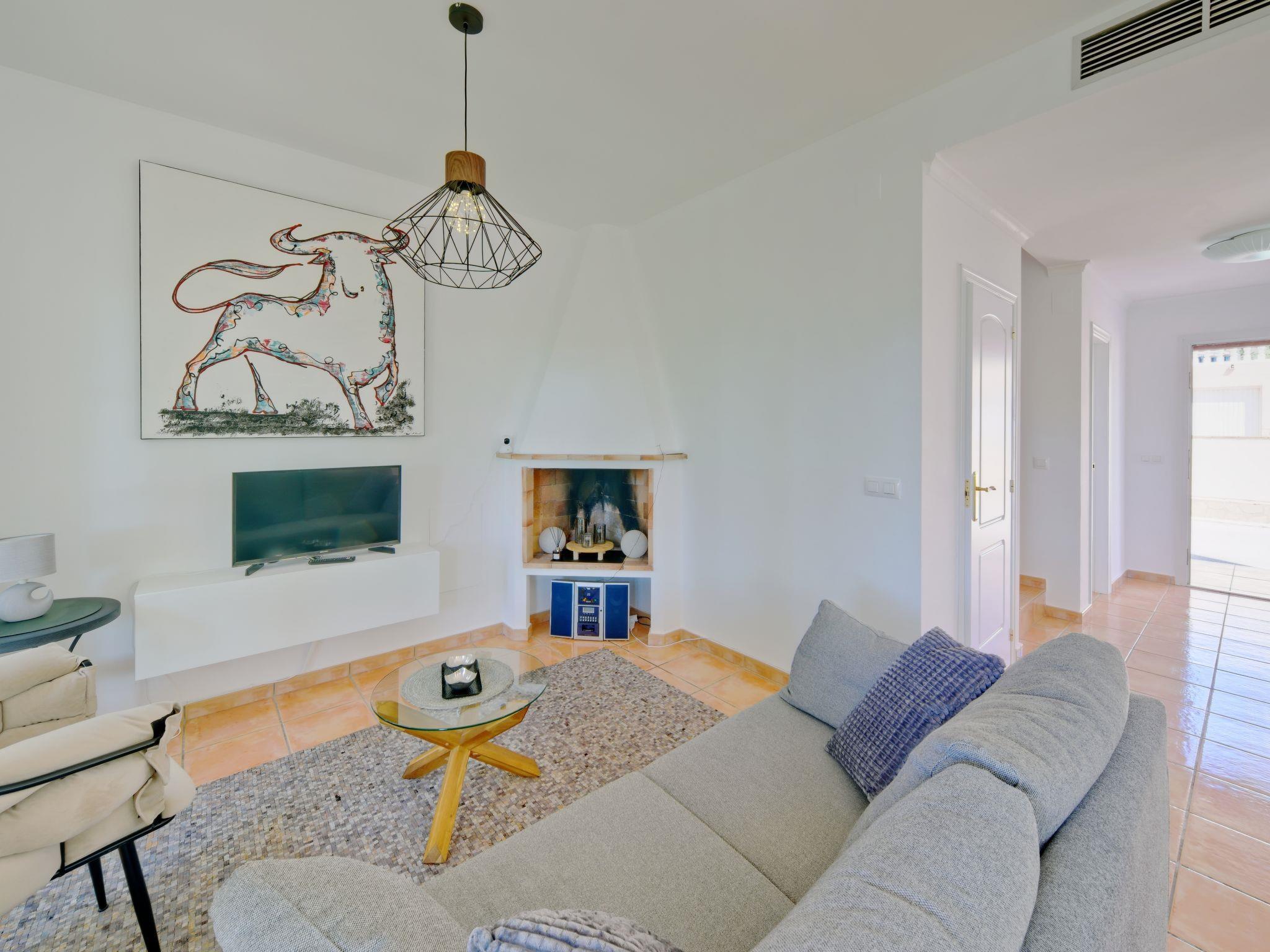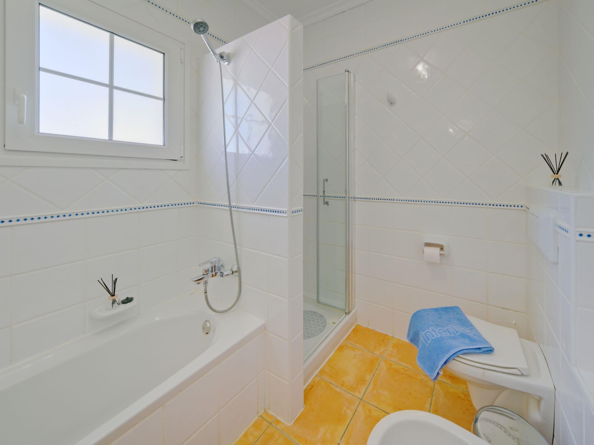 "Bel Air", 3-room bungalow 119 m2. Spacious and bright, beautiful and cosy furnishings: living/dining room with digital TV, air conditioning and forced-air heating. Exit to the garden, to the terrace. Open kitchen (oven, dishwasher, 3 ceramic glass hob hotplates, toaster, kettle, microwave, electric coffee machine). Shower/bidet/WC. Upper floor: 1 room with 1 french bed (1 x 160 cm, length 200 cm), air conditioning and forced-air heating. Exit to the terrace. 1 room with 1 double bed (1 x 160 cm, length 200 cm), air conditioning and forced-air heating. Exit to the terrace. Bath/bidet/WC. Large terrace, garden, lawn. Terrace furniture. Beautiful distant view of the sea, the swimming pool and the resort. Facilities: washing machine, iron, children's high chair, baby cot for up to 2 year olds, hair dryer. Internet (WiFi, free). Parking. Please note: suitable for families. Non-smoking house. CV-VUT0499910-A // Reg. Nr.: ESFCTU00000302900059365400000000000000000VT-499910-A1