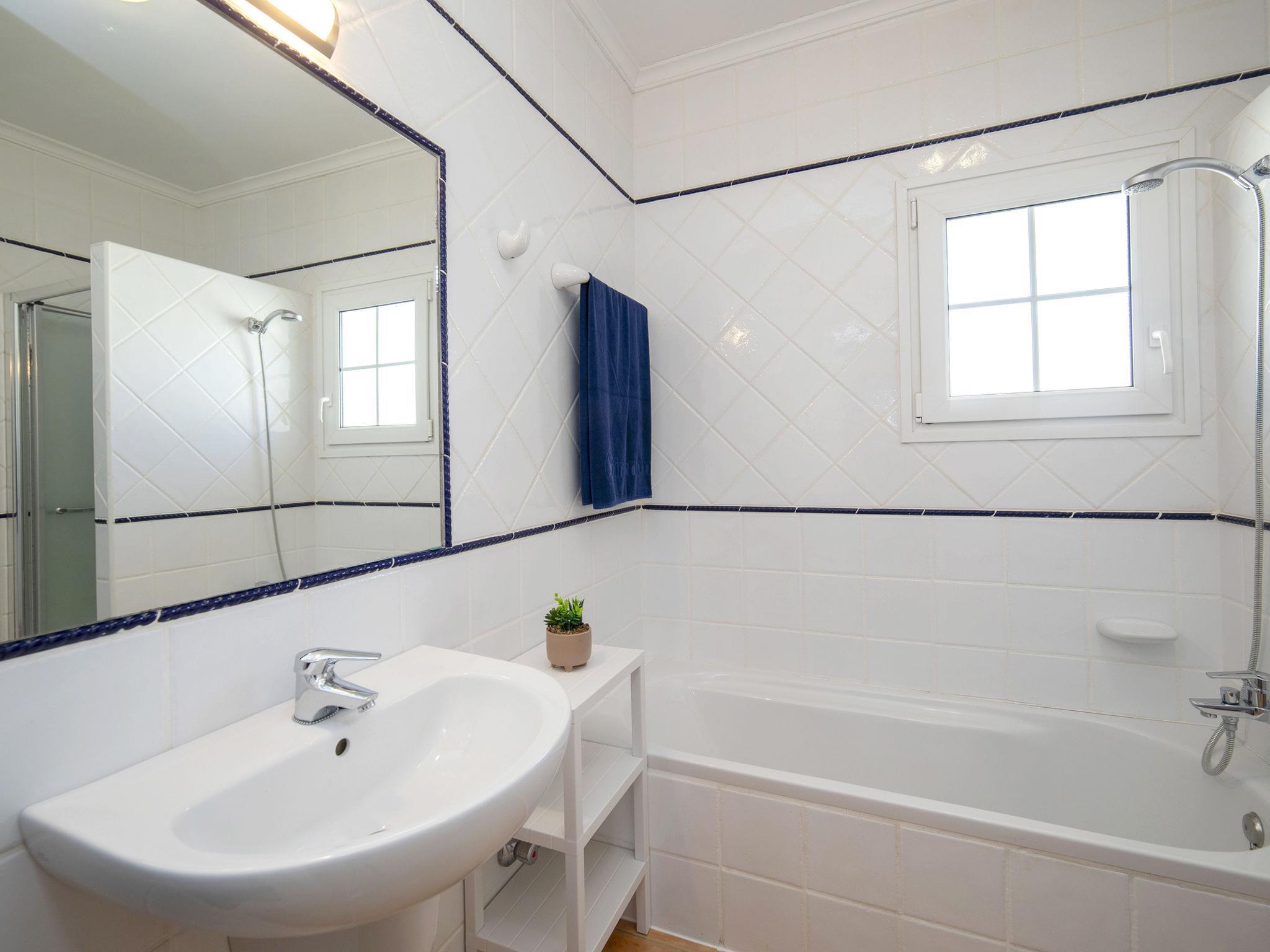 "Bel-Air", 3-room terraced house 122 m2 on 2 levels. Spacious and bright, comfortable and beautiful furnishings: living/dining room with satellite TV, digital TV, air conditioning and forced-air heating. Exit to the garden, to the terrace. Open kitchen (dishwasher, 4 ceramic glass hob hotplates, toaster, kettle, microwave, electric coffee machine). Sep. WC. Forced-air heating. Upper floor: with 1 double bed (2 x 80 cm, length 190 cm), bath/shower/bidet/WC, air conditioning, fan and forced-air heating. Exit to the terrace. 1 room with 1 french bed (1 x 160 cm, length 200 cm), air conditioning, fan and forced-air heating. Shower/bidet/WC. Forced-air heating. Large balcony, large terrace. Terrace furniture, barbecue. Beautiful view of the sea, the resort and the town. Facilities: washing machine, iron, children's high chair, baby cot for up to 2 year olds, hair dryer. Internet (WiFi, free). Parking. Please note: non-smoking house. VT-488108-A // Reg. Nr.: ESFCTU00000302900059367800000000000000000VT-488108-A2