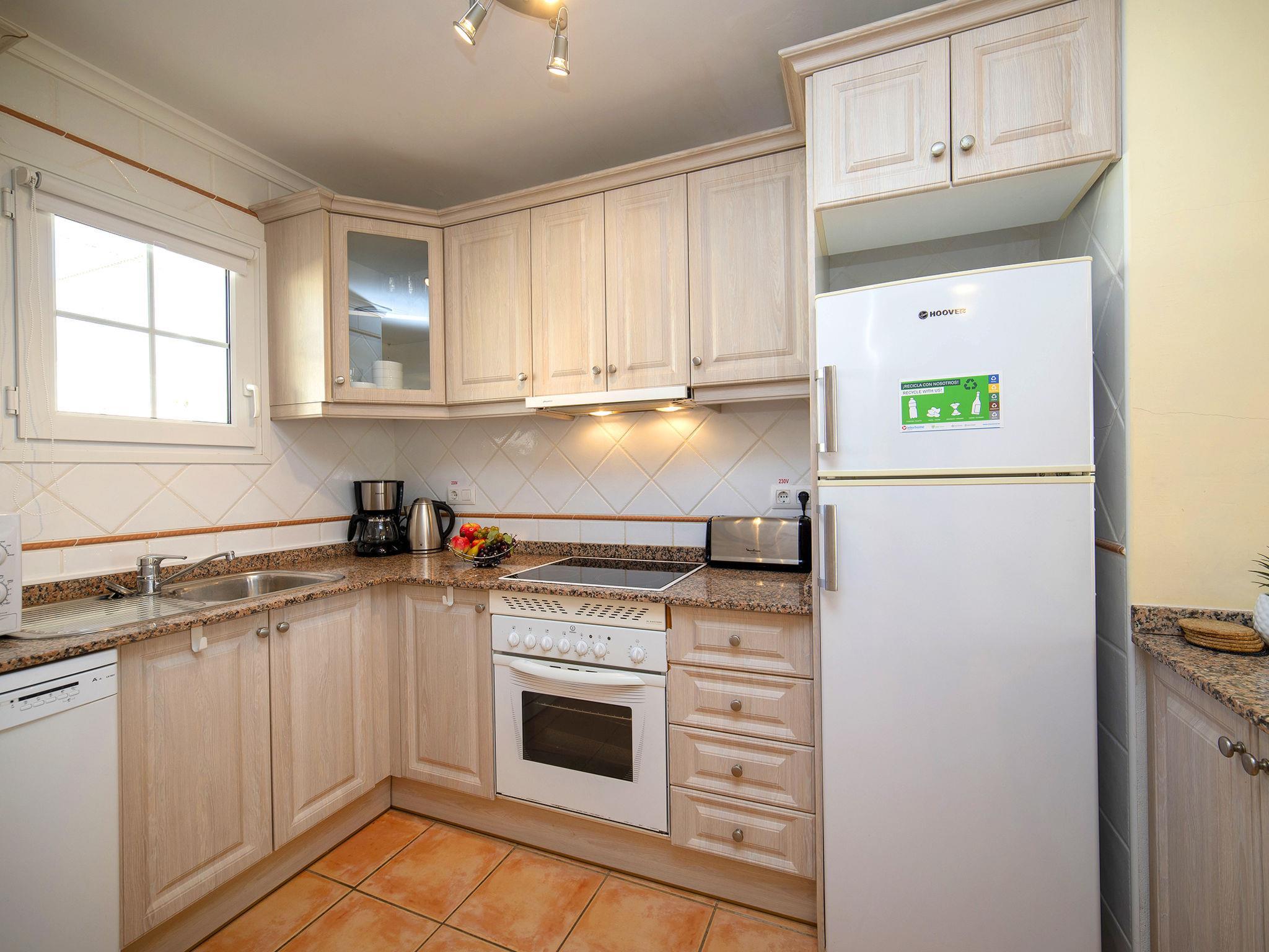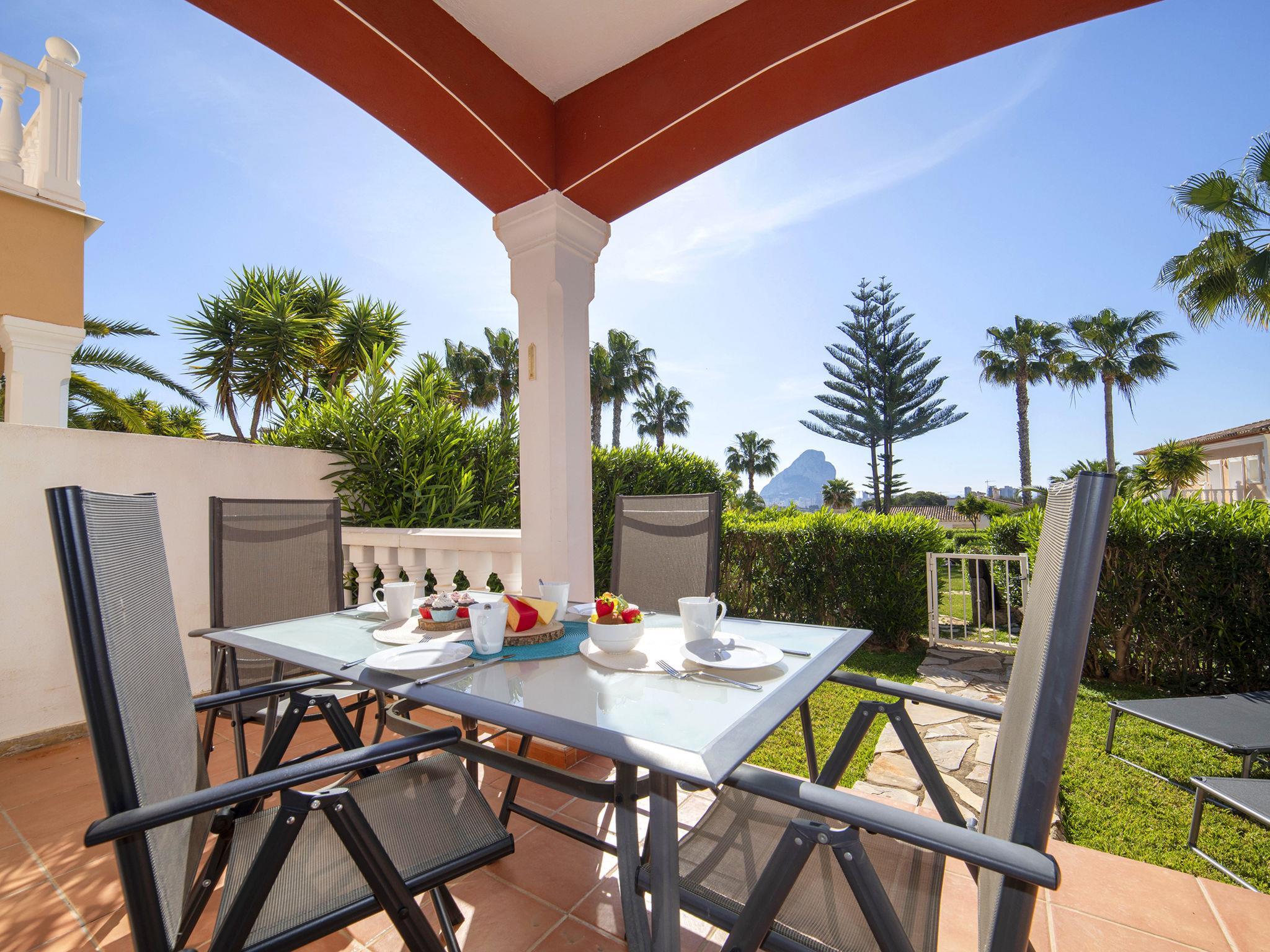 Very beautiful bungalow "Bel-Air", 2 storeys, semi-detached. 15 houses in the resort. In the resort 2 km from the centre of Calpe, in the district Garduix, in a quiet, sunny position residential area (villas), traffic calmed area, 2 km from the sea, 2 km from the beach. For shared use: property (fenced) with lawn and plants, lawn for sunbathing, beautiful garden to relax, swimming pool (15 x 14 m, depth 50 - 200 cm, seasonal availability: 01.Jan. - 31.Dec.). Outdoor shower. Private: property (fenced). Terrace, barbecue. Supermarket 1.5 km, restaurant 1 km, café 1 km, bus stop 1.5 km, sandy beach "Playa Arenal" 2 km. Sports harbour 3.8 km, marina 3.8 km, golf course (9 hole) 12 km, surf school 3.8 km, sailing school 3.8 km, tennis 1.1 km. Nearby attractions: Aqualandia, Mundomar, Terra Mítica, Terra Natura, Benidorm Palace (Benidorm), Les Fonts de l'Algar, Castillo de Guadalest. Residence with electric gates.
