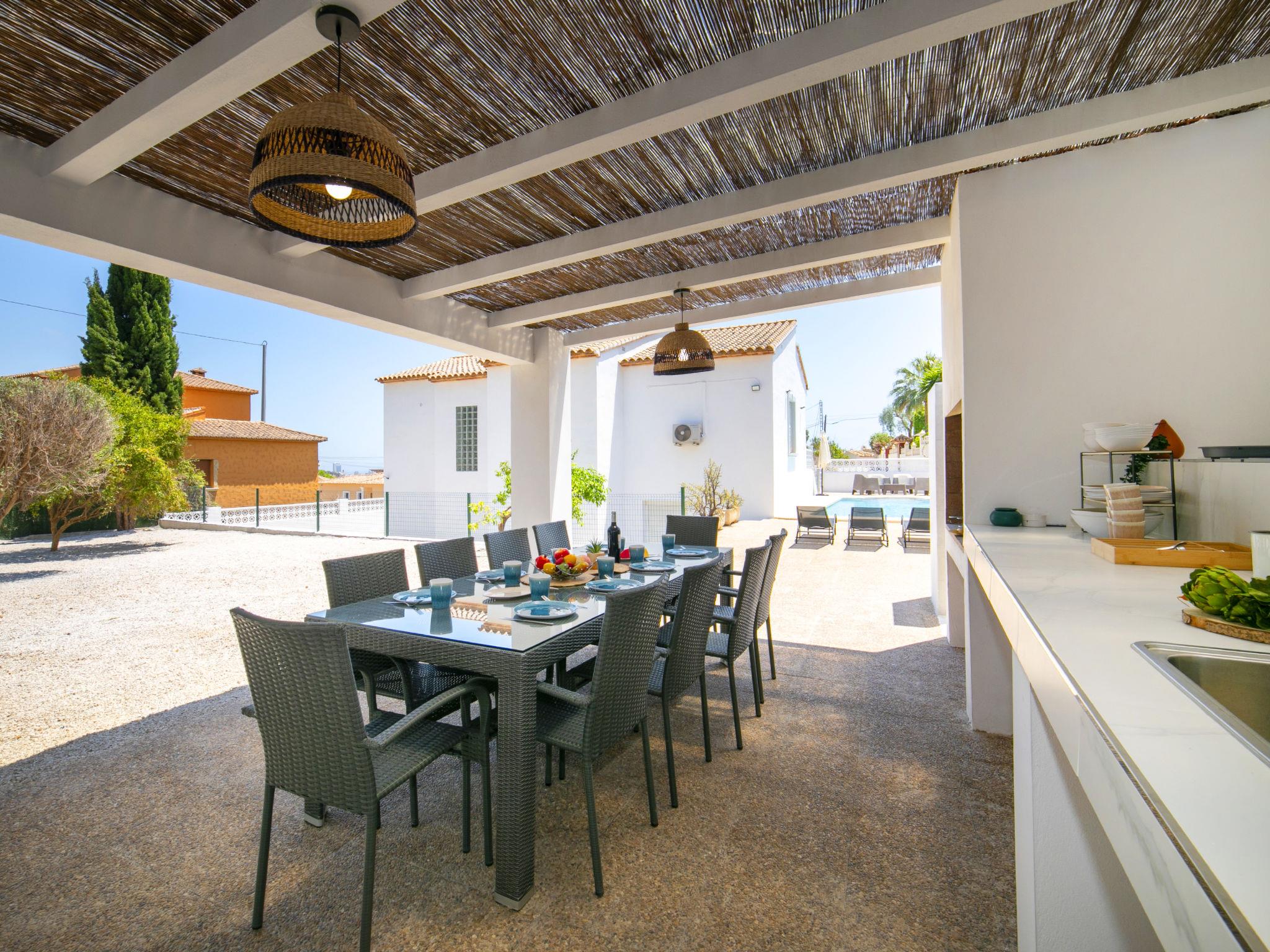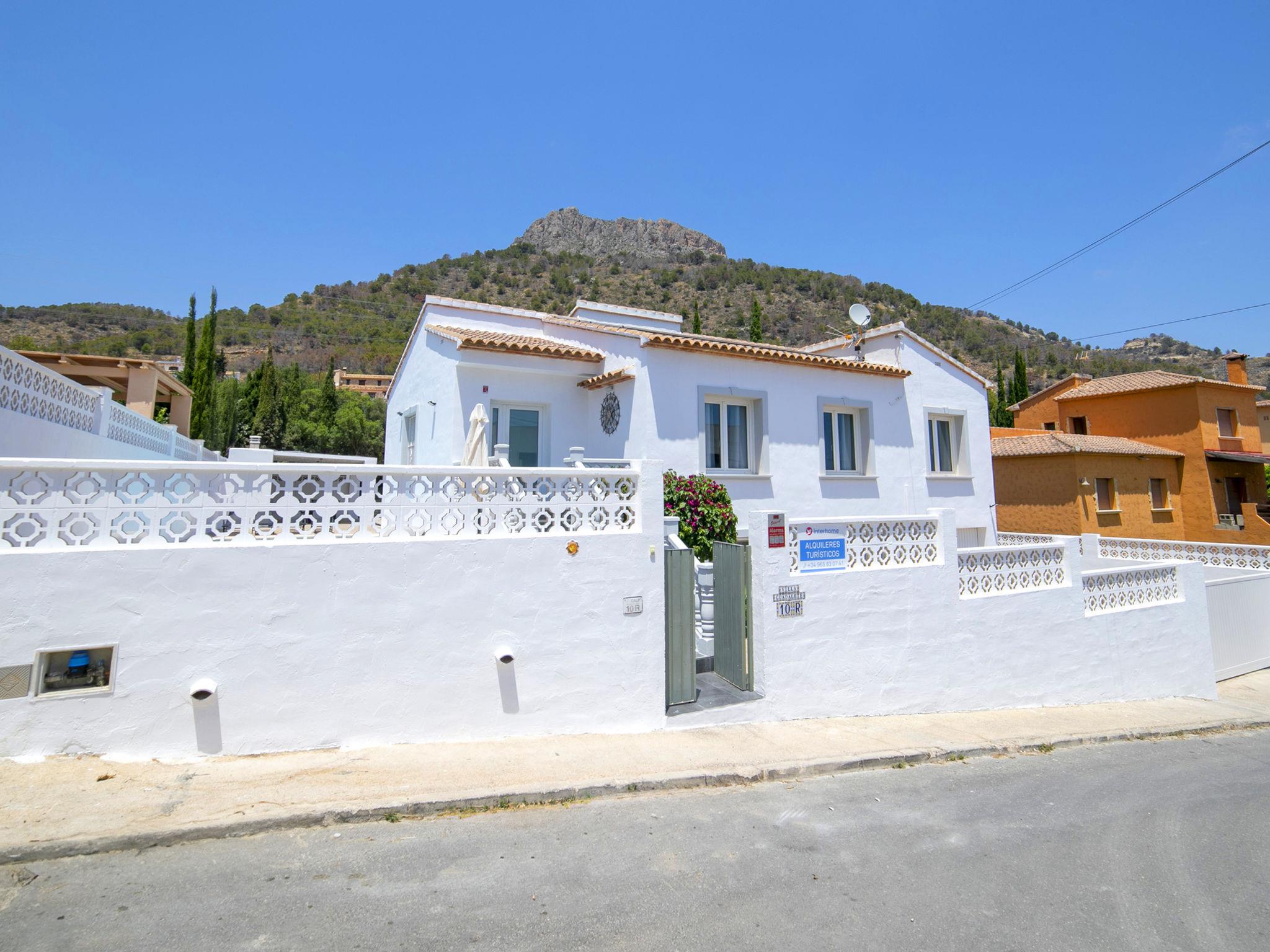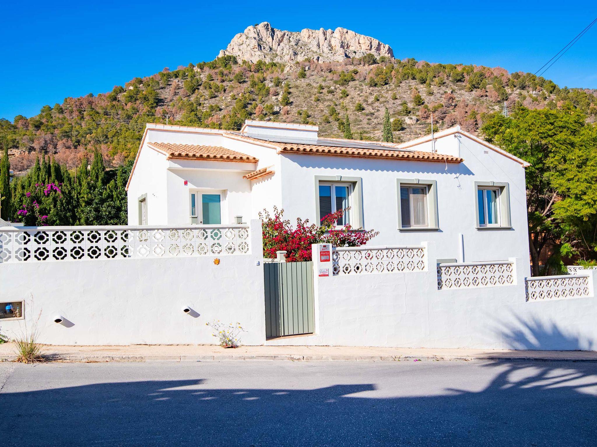 Canuta de Ifach: Beautiful, cosy villa "Guadalete", 2 storeys, renovated in 2023. In the district Canuta de Ifach, residential area (villas), 1.8 km from the sea, 1.8 km from the beach. Private: natural state property (fenced), swimming pool angular (seasonal availability: 01.Jan. - 31.Dec.). Garden furniture, barbecue, parking on the premises. Grocery 3 km, supermarket 3 km, restaurant 1.8 km, bakery 3 km, bus stop 1.7 km, sandy beach "Playa del Arenal" 3.2 km, swimming bay 1.8 km. Sports harbour 5.9 km, marina 5.9 km, surf school 5.9 km, sailing school 5.9 km. Nearby attractions: Peñon de Ifach 6 km, Aqualandia 25 km, Terra Mitica 35 km.