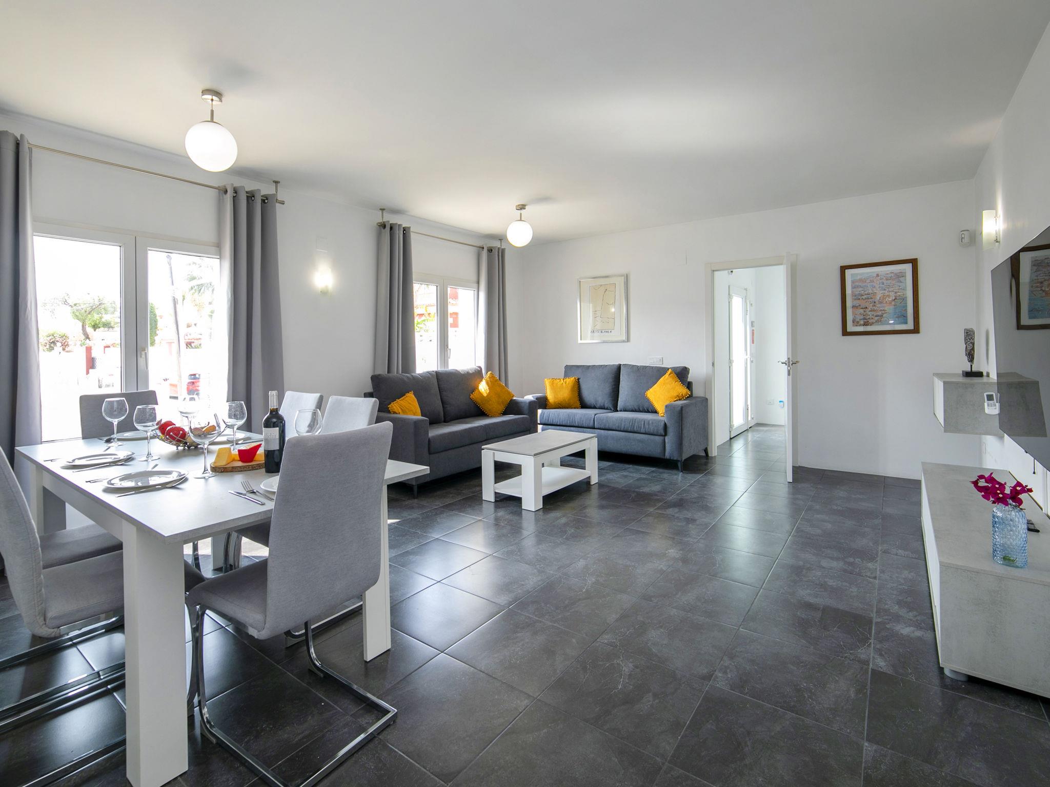 "Guadalete", 7-room villa 282 m2 on 2 levels, south facing position. Renovated in 2025, comfortable and modern furnishings: living/dining room with digital TV, air conditioning and forced-air heating. 1 room with 1 french bed (150 cm, length 190 cm). 1 room with Dressing room with 1 french bed (160 cm, length 190 cm), bath/shower/WC, air conditioning and forced-air heating. Kitchen (oven, dishwasher, 3 ceramic glass hob hotplates, toaster, kettle, microwave, freezer, electric coffee machine). Shower/WC. On the lower ground floor: living/dining room with dining table, kitchen corner, digital TV, air conditioning and forced-air heating. Exit to the patio. 1 room with 2 beds (90 cm, length 190 cm), fan. 1 room with 1 double bed (2 x 90 cm, length 190 cm), fan. Kitchenette (microwave). Shower/WC. Terrace furniture, barbecue, deck chairs, sitting area. Facilities: washing machine, iron, children's high chair, baby cot for up to 2 year olds, hair dryer. Internet (WiFi, free). Parking (fenced 3 cars), garage (1 car). Maximum 1 pet/ dog allowed. VT-516432-A // Reg. Nr.: ESFCTU00000302900050021800000000000000000VT-516432-A8