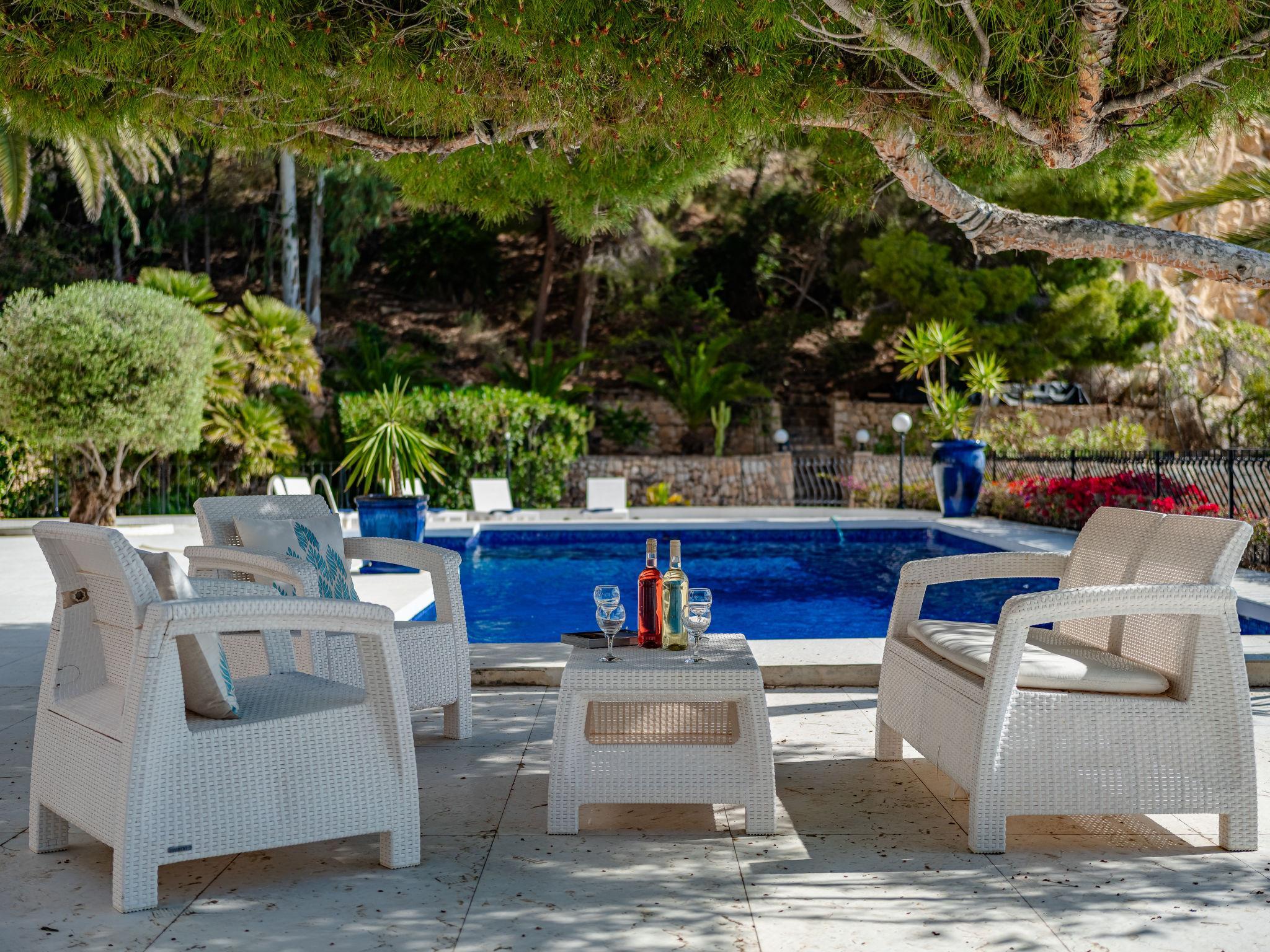 Beautiful villa "Casela", 2 storeys. 3 km from the centre of Calpe, in a quiet, sunny position residential area (villas), traffic calmed area, 20 m from the sea, 20 m from the beach. Private: property (fenced), natural garden, swimming pool (15 x 6 m, seasonal availability: 01.Jan. - 31.Dec.). Terrace, barbecue house. Bus stop 2 km, sandy beach "Playa Puerto Blanco", rocky beach "Cala Les Urques". Sports harbour 1 km, marina 1 km, golf course (18 hole) 12 km. Nearby attractions: Aqualandia, Mundomar, Terra Mítica, Terra Natura, Benidorm Palace (Benidorm), Les Fonts de l'Algar, Castillo de Guadalest, Peñon de Ifach. The owner does not accept any youth groups.