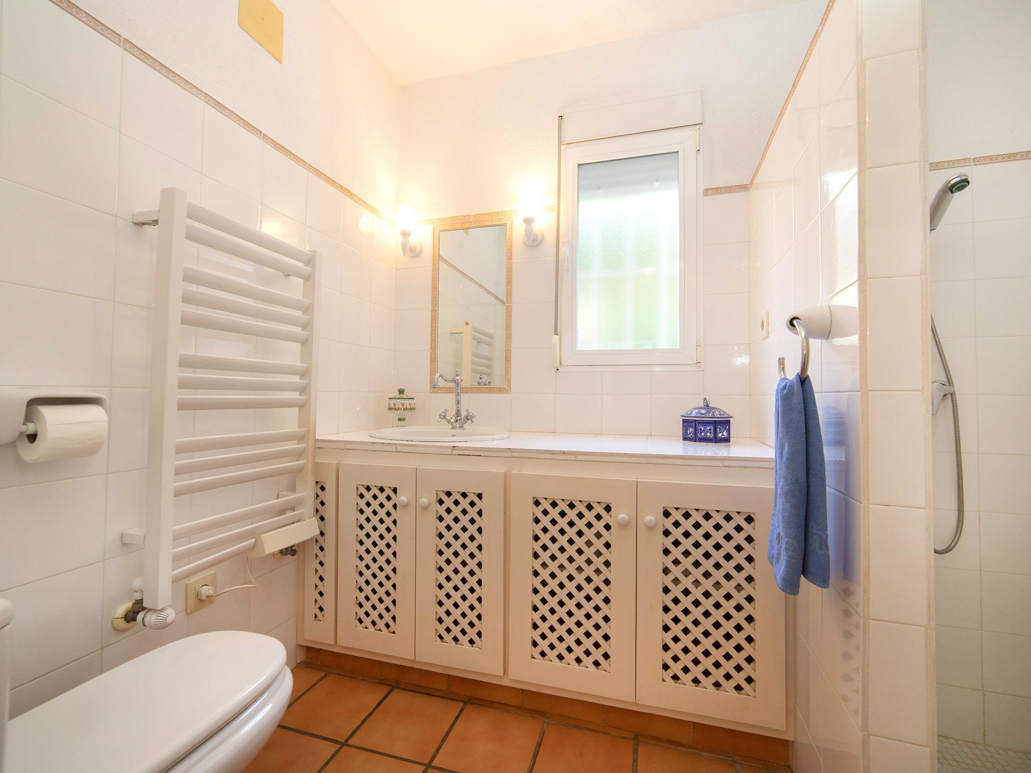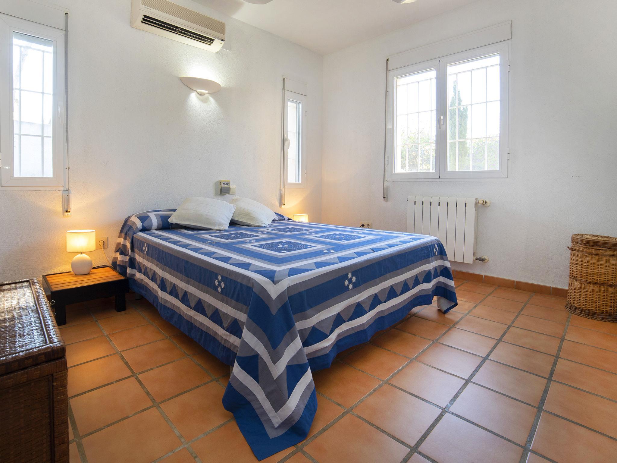"Flamenco", 3-room villa 140 m2, lower ground floor. Bright, comfortable and cosy furnishings: living/dining room with veranda with dining table, satellite TV, digital TV, flat screen and fan. Exit to the patio, to the swimming pool. 1 room with 2 beds (90 cm, length 190 cm), air conditioning and fan. 1 room with 1 french bed (150 cm, length 190 cm), bath/bidet/WC, air conditioning, fan and forced-air heating. Lounge with 1 sleeping facility, open-hearth fireplace and hi-fi system. Exit to the patio. Kitchen (2 hot plates, dishwasher, 2 ceramic glass hob hotplates, toaster, kettle, microwave, freezer, electric coffee machine). Shower/WC. Terrace furniture, barbecue, deck chairs, covered balcony. View of the swimming pool and the garden. Facilities: washing machine, iron, mosquito net, children's high chair, baby cot for up to 2 year olds, hair dryer. Internet (WiFi, free). Parking (roofed, fenced 1 car). Suitable for families. VT-487187-A // Reg. Nr.: ESFCTU0000030290004833200000000000000CV-VUT0487187-A0