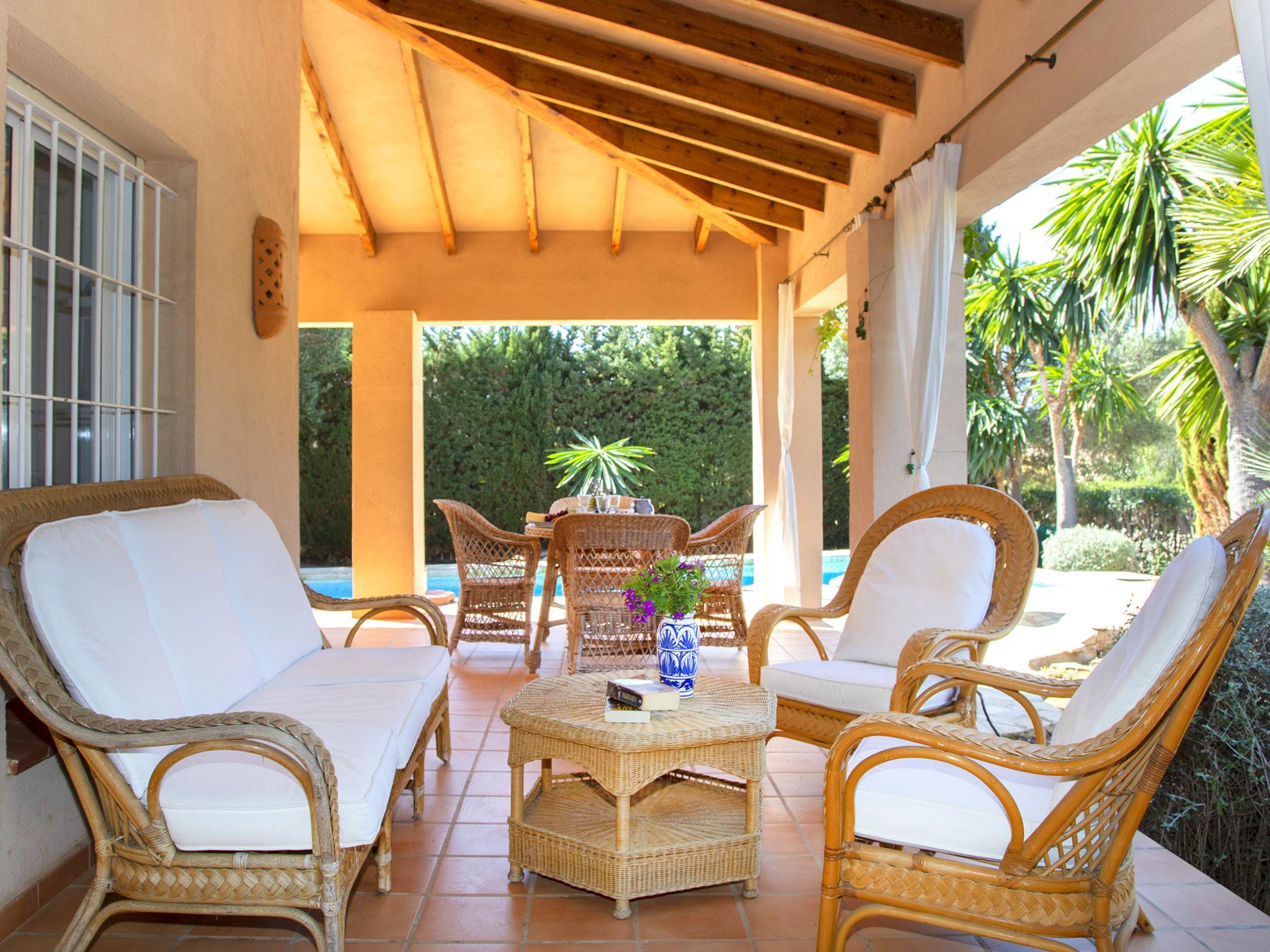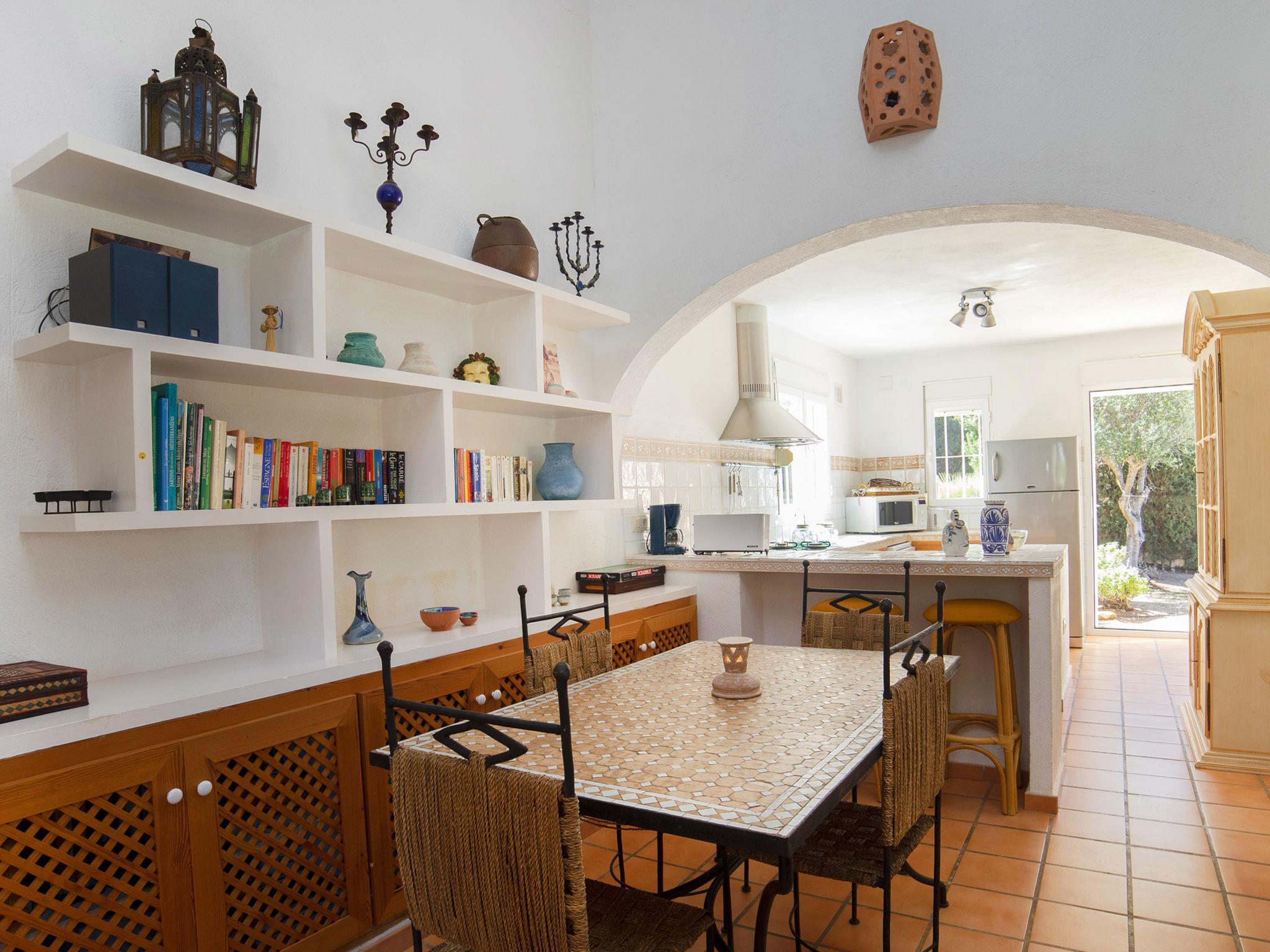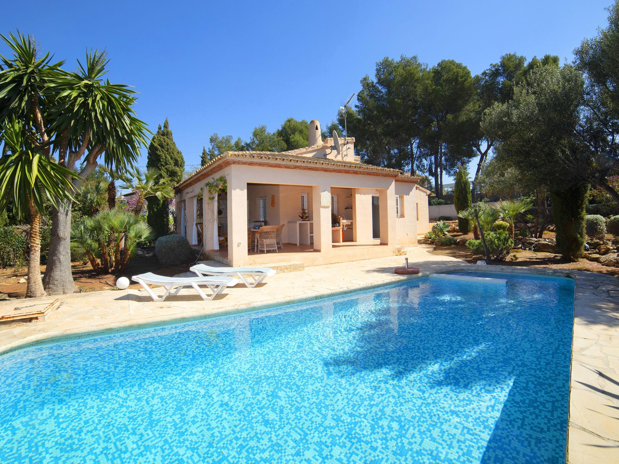 Buenavista: Large, child friendly, cosy villa "Flamenco", surrounded by trees. In the resort Calpe, in the district Buenavista, in a quiet position residential area (villas), 2.4 km from the sea, 2.4 km from the beach. Private: property (fenced), beautiful garden to relax, swimming pool (4 x 8 m, depth 85 - 180 cm, seasonal availability: 01.Jan. - 31.Dec.) with internal staircase and salt-electrolysis pool-cleaning system. Pergola, terrace, garden furniture, barbecue, pool maintenance by the owner/gardener. In the house: central heating system, heating available only from 01.Nov. - 30.Apr.. Roofed, parking (limited number of spaces). Shop 2 km, grocery 2 km, supermarket 2 km, restaurant 1.5 km, bar 1.3 km, café 1.3 km, pub garden 1.5 km, bus stop "Parque de la Vallesa" 500 m, sandy beach "Playa de la Fossa" 2.4 km, swimming bay 2.2 km. Sports harbour 3.2 km, marina 3.2 km, golf course (9 hole) 8.2 km, surf school 3.2 km, sailing school 3.2 km, cycle lane 500 m. Nearby attractions: Salinas de Calpe, Sierra Bernia. Hiking paths: Peñon de Ifach. Please note: suitable for families, baby equipment (included). The owner does not accept any youth groups.