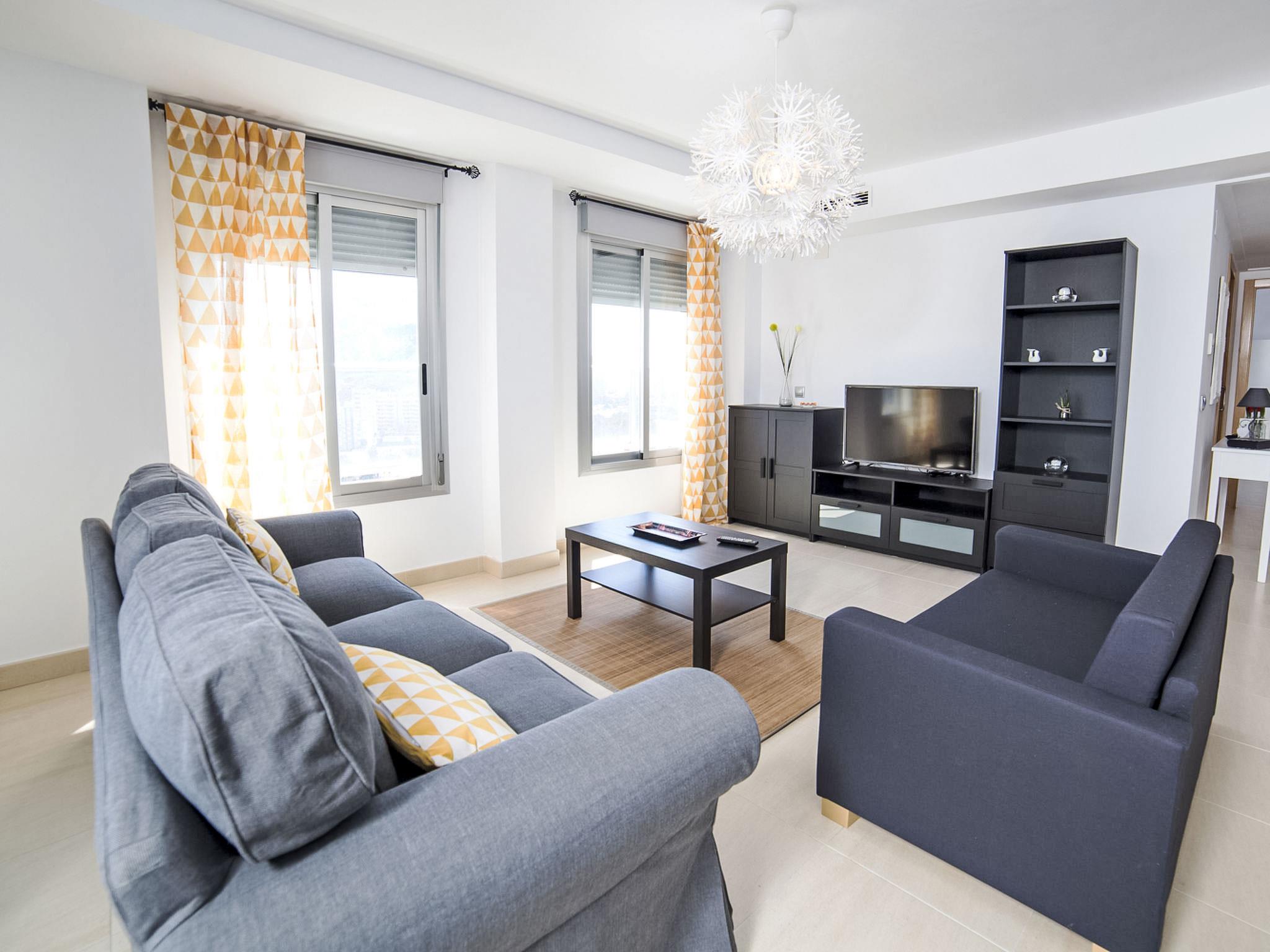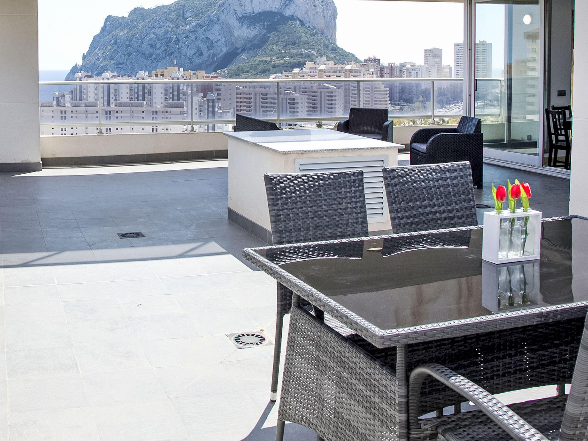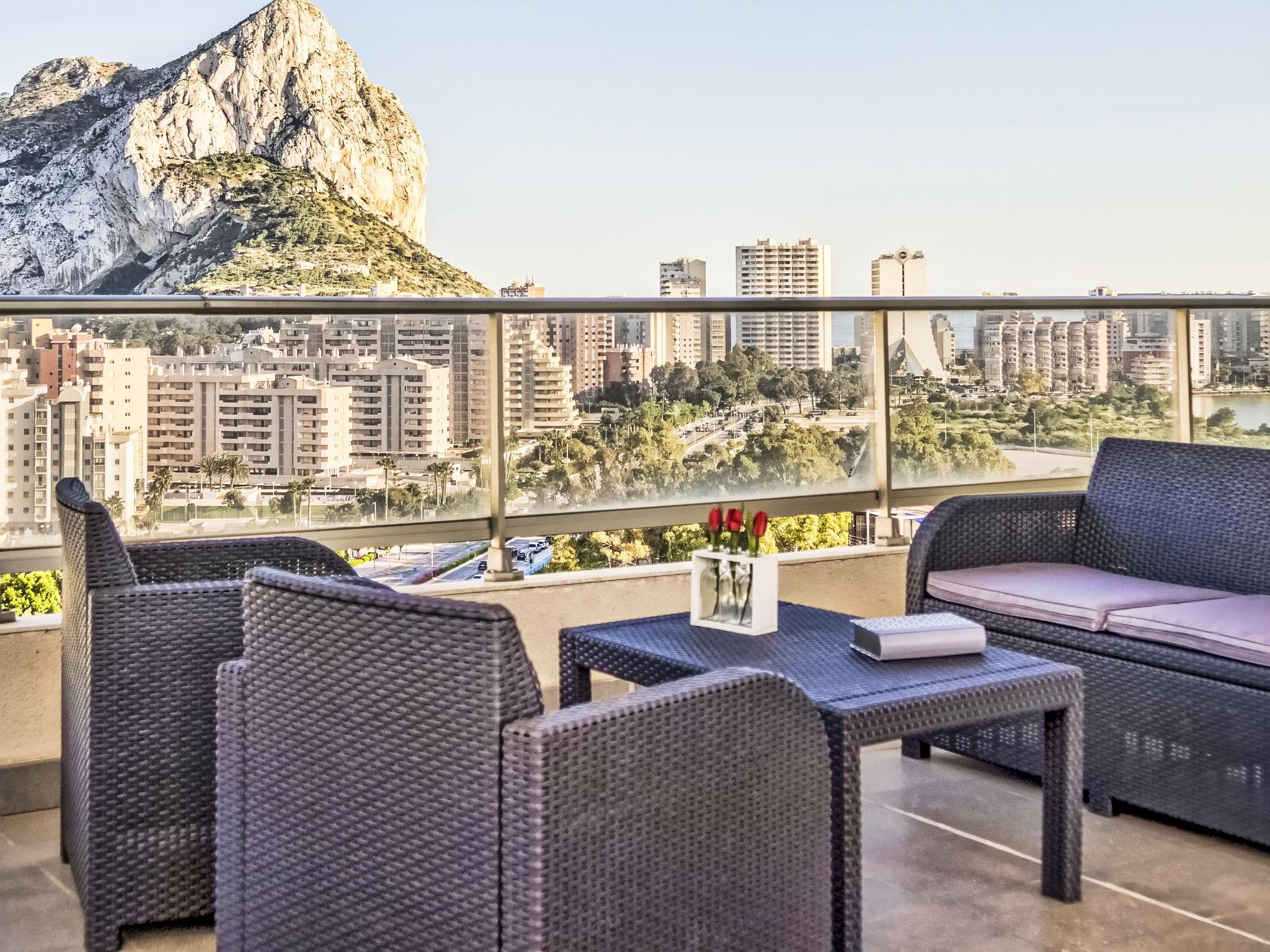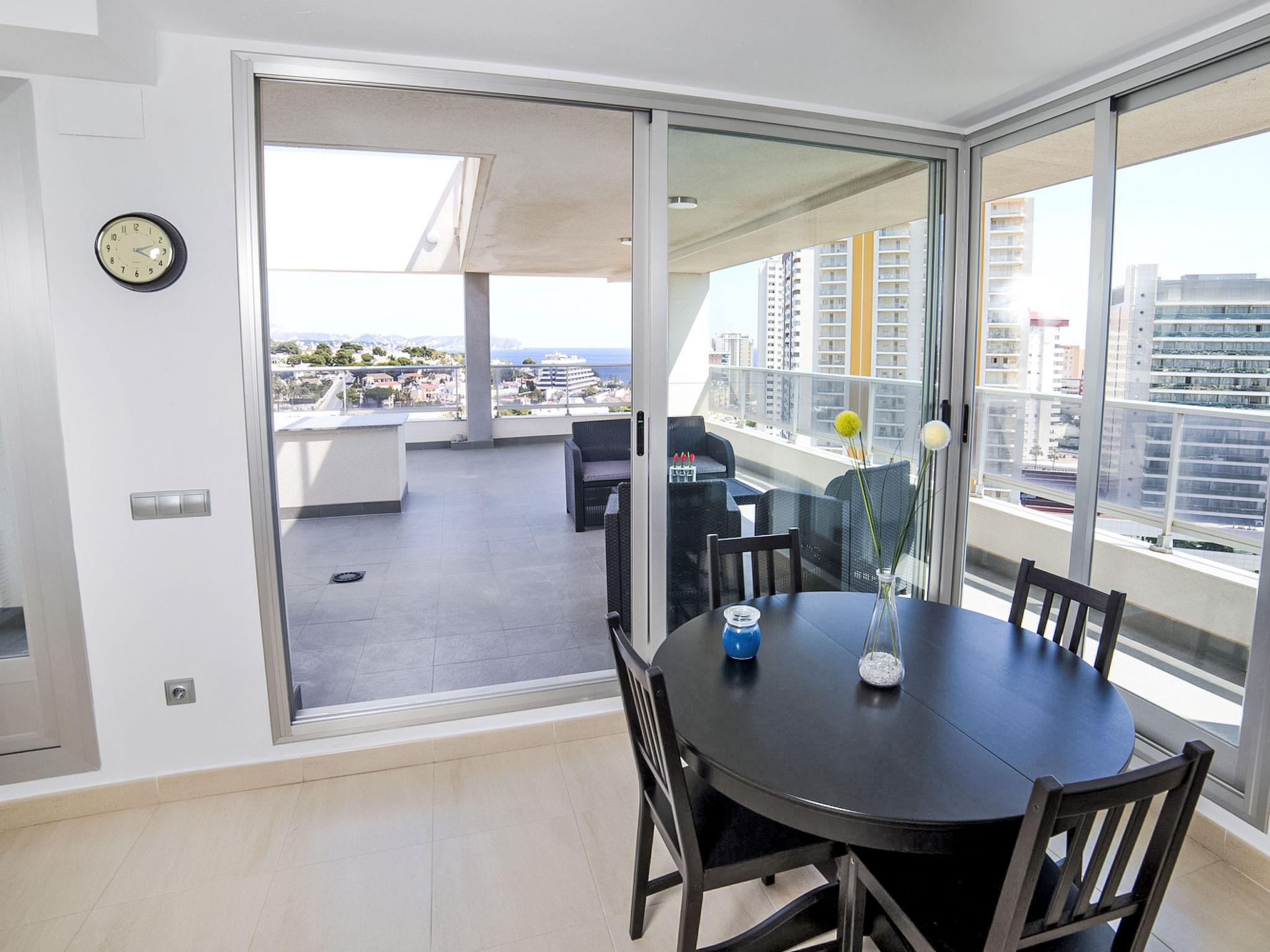 "Costa Calpe", 3-room apartment 98 m2 on 13rd floor. Bright, beautiful and modern furnishings: open large living/dining room with satellite TV, digital TV and fan. Exit to the terrace. 1 room with 1 french bed (150 cm, length 190 cm), shower/bidet/WC and fan. 1 room with 2 beds (90 cm, length 190 cm), fan. Open kitchen (oven, dishwasher, 4 ceramic glass hob hotplates, toaster, kettle, microwave, electric coffee machine). Shower/WC. Electric heating, boiler. Heating available only from 01.11. to 30.04. Large terrace 41 m2. Terrace furniture. Panoramic view of the sea, the mountains and the city. Facilities: washing machine, dryer. Internet (WiFi, free). Parking space n 10. The air conditioners are portable. AT-454825-A // Reg. Nr.: ESFCTU00000302900069059900000000000000000AT-454825-A4