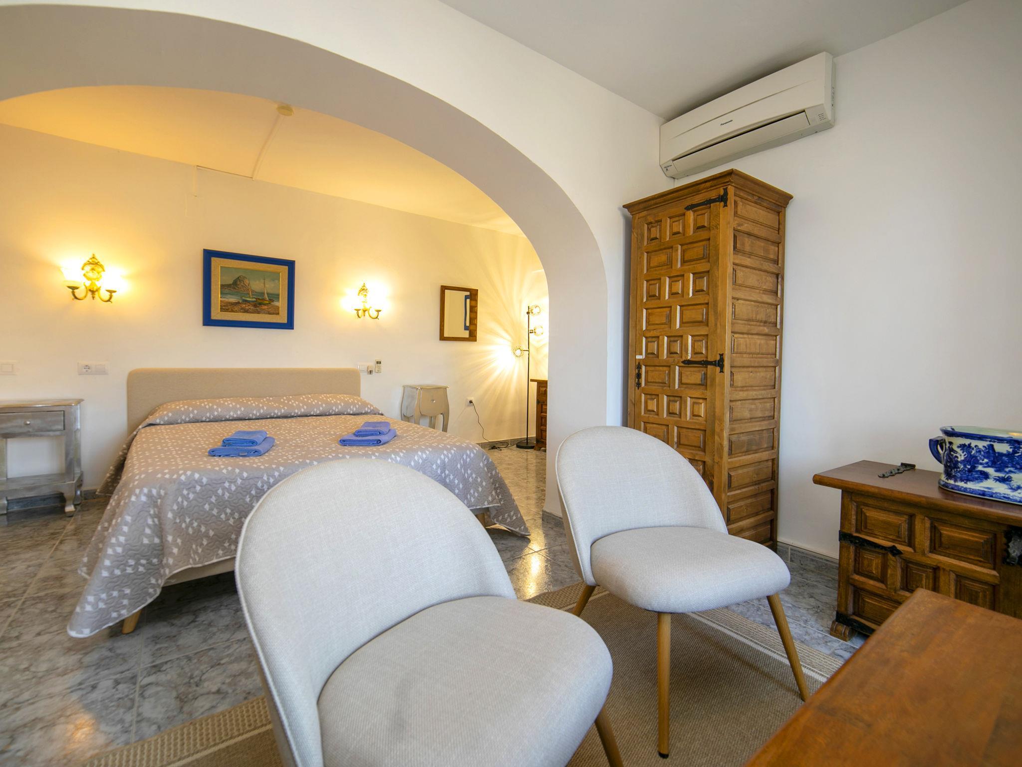 "Brisa del Mar", 5-room villa 193 m2 on 2 levels. Spacious and bright, comfortable and cosy furnishings: open living/dining room with TV, air conditioning and fan. Exit to the terrace, to the swimming pool. 1 room with 1 french bed (1 x 190 cm, length 190 cm), air conditioning. 1 room with 1 french bed (1 x 140 cm, length 190 cm), air conditioning. Kitchen (oven, dishwasher, 3 ceramic glass hob hotplates, toaster, kettle, electric coffee machine). Bath/WC. On the lower ground floor: (exterior staircase) living/dining room with TV and fan. Exit to the terrace. 1 room with 1 french bed (1 x 160 cm, length 200 cm), air conditioning and forced-air heating. Small, open kitchen (2 hot plates, microwave, electric coffee machine). Shower/WC. Terrace furniture, barbecue, deck chairs. Beautiful view of the sea, the resort and the town. Facilities: washing machine, iron, children's high chair, baby cot for up to 2 year olds, hair dryer. Internet (WiFi, free). Garage. Please note: non-smoking house. No internal connecting door between the floors. CV-VUT0476320-A // Reg. Nr.: ESFCTU0000030290002830050000000000000CV-VUT0476320-A3