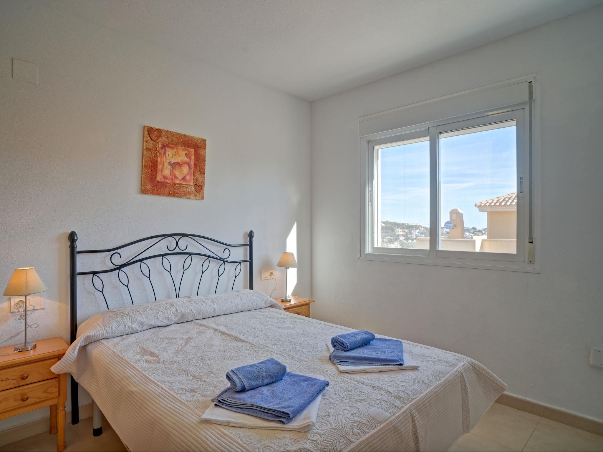 "Montesol", 4-room terraced house 143 m2 on 2 levels. Comfortable and tasteful furnishings: living/dining room with digital TV. Exit to the terrace. Open kitchen (oven, dishwasher, 4 ceramic glass hob hotplates, microwave, electric coffee machine). Sep. WC. Air-conditioning, forced-air heating. Upper floor: 1 room with 1 french bed (150 cm, length 200 cm), bath/WC. 1 room with 2 beds (80 cm, length 200 cm). 1 children's room with 1 bed and 1 pull-out bed. Shower/WC. Air-conditioning, forced-air heating. Terrace furniture, deck chairs (2), box-room. Facilities: washing machine, iron, children's high chair, hair dryer. Internet (WiFi, free). Parking space n 7 (roofed). Please note: non-smoking house. TV only ES. Solarium: with terrace furniture and a nice view of the sea and Peñón de Ifach. AT-437846-A // Reg. Nr.: ESFCTU00000302900066778200000000000000000AT-437846-A0