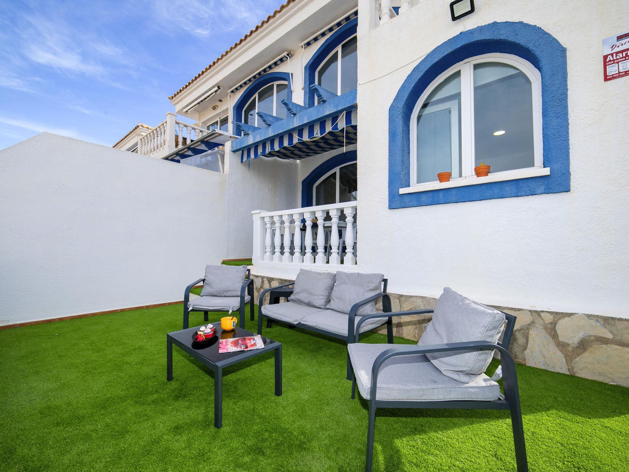 Casanova: Beautiful resort "Pueblo Casanova". 1.7 km from the centre of Calpe, in a quiet, sunny position, 1.9 km from the sea. For shared use: property (fenced), garden, swimming pool (15 x 12 m, seasonal availability: 01.Jan. - 31.Dec.) with salt-electrolysis pool-cleaning system. Unconventional pool shape. Children's pool, terrace. Heating available only from 01.Nov. - 30.Apr.. Supermarket 1.2 km, restaurant 1.4 km, bus stop 450 m, sandy beach 1.9 km, indoor swimming pool 1.5 km. Tennis 1.4 km. Please note: Additional accommodations can be booked. Sun loungers and shower/WC near the swimming pool.