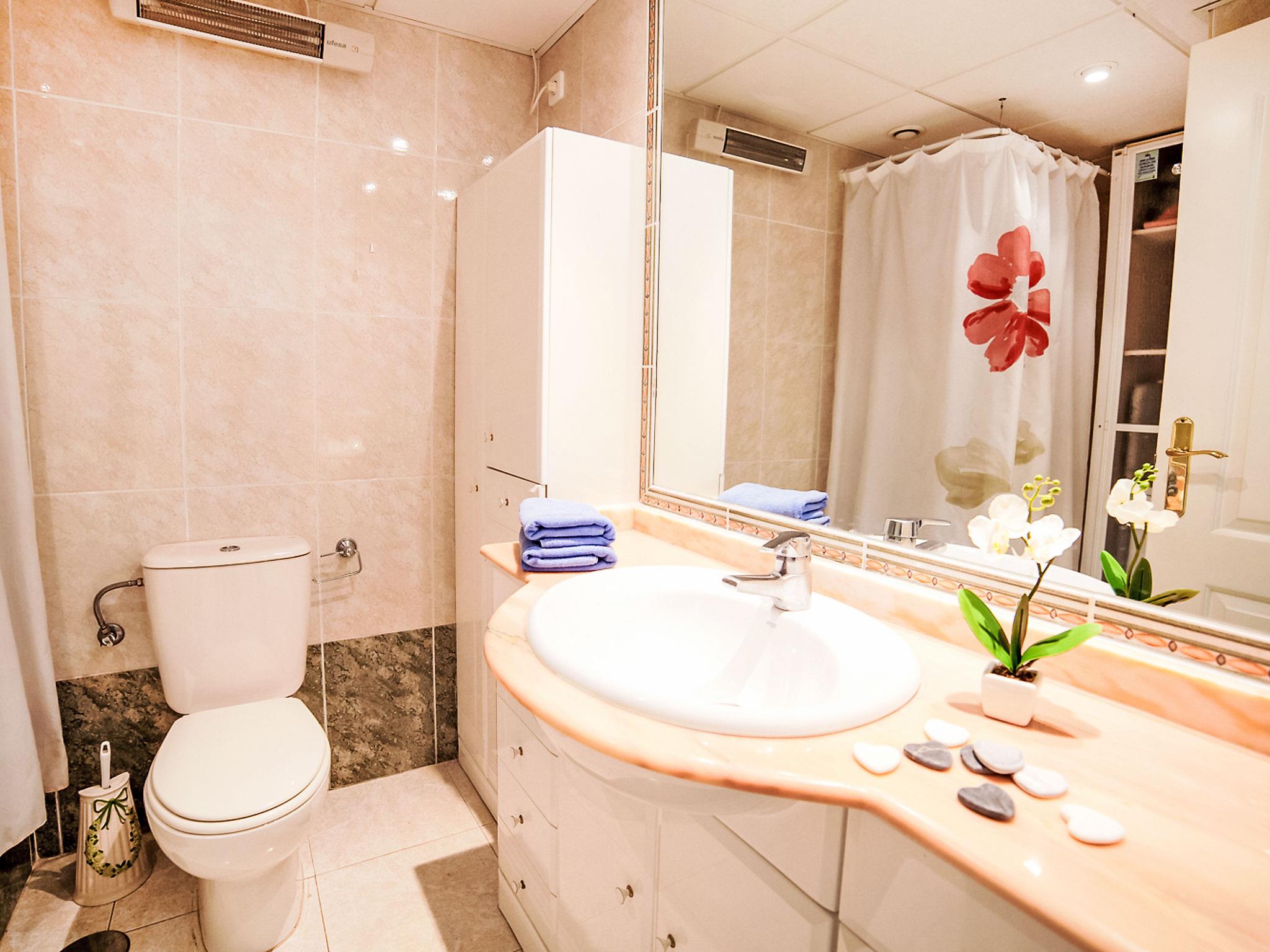 Playa Levante: It is situated opposite the Peñón de Ifach large, beautiful apartment block "Zafiro". 1.8 km from the centre of Calpe, in a sunny position, 50 m from the sea, 50 m from the beach, direct access to the beach. For shared use: property (fenced), 3 swimming pools (depth 40 - 180 cm, seasonal availability: 01.Jan. - 31.Dec.). Children's pool, outdoor shower, terrace. Private: terrace. In the complex: lift. Supermarket 100 m, restaurant, bar 10 m, bus stop 300 m. Golf course (9 hole) 12 km, tennis 2 km. Nearby attractions: Aqualandia, Mundomar, Terra Mítica, Terra Natura, Benidorm Palace (Benidorm). Hiking paths: Peñon de Ifach 700 m.