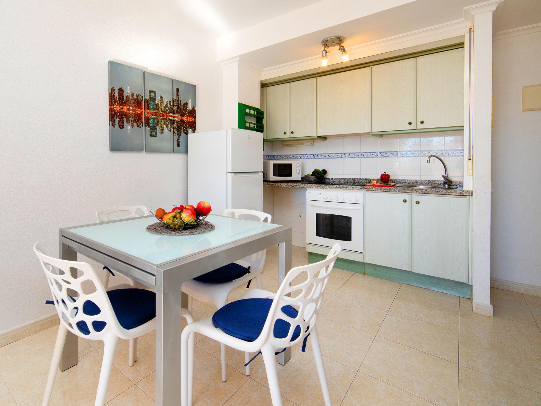 "Zafiro 02", 2-room apartment 62 m2 on 9th floor. Object suitable for 2 adults + 2 children. Comfortable and tasteful furnishings: living/dining room 20 m2 with 1 double sofabed, digital TV, air conditioning and forced-air heating. Exit to the terrace. 1 room with 1 french bed, air conditioning and forced-air heating. Open kitchen (oven, 4 ceramic glass hob hotplates, microwave). Bath/WC. Terrace furniture. Very beautiful panoramic view of the sea. Facilities: washing machine. Please note: TV only ES. AT-440228-A // Reg. Nr.: ESFCTU00000302900049528600000000000000000AT-440228-A6