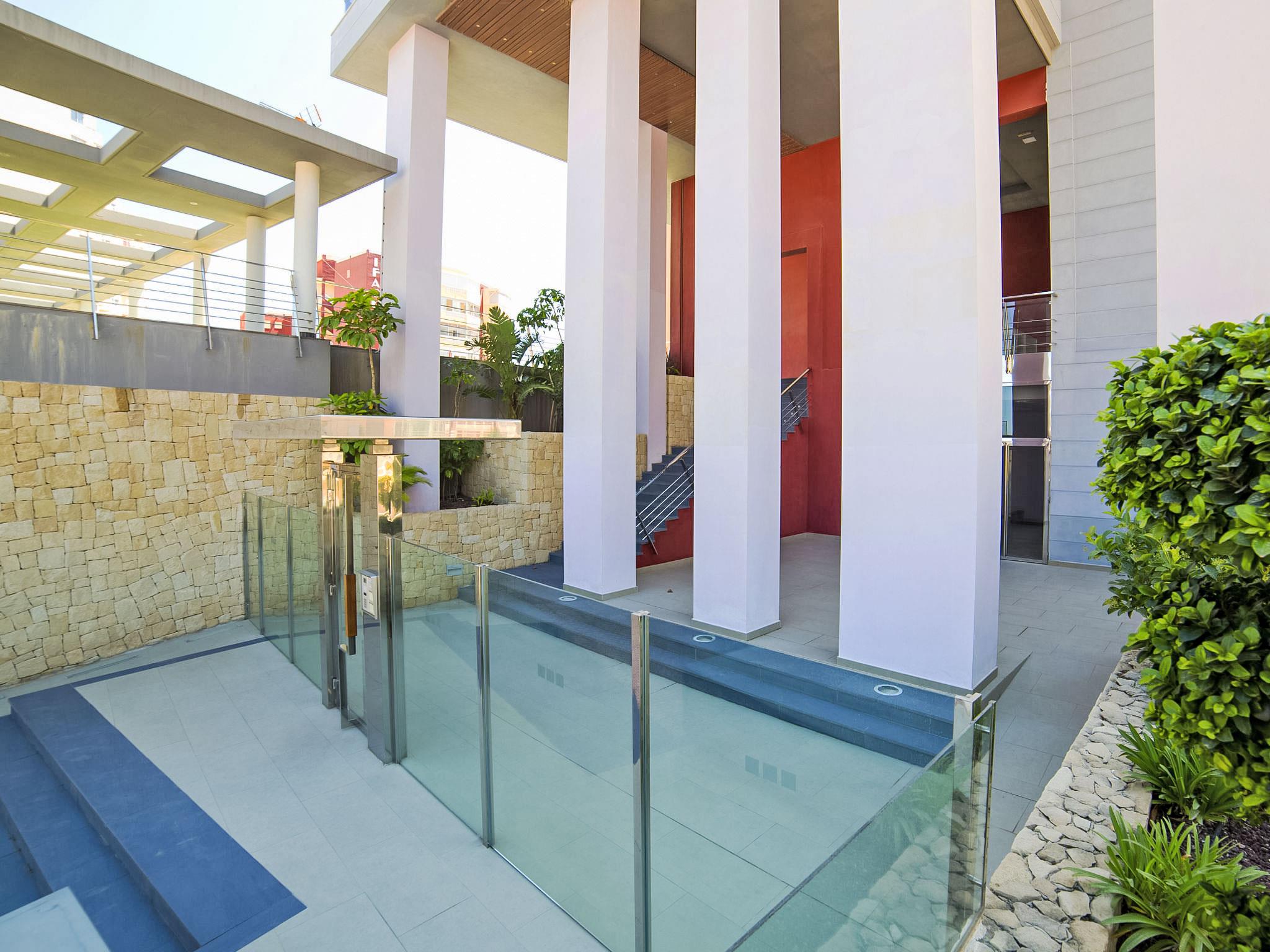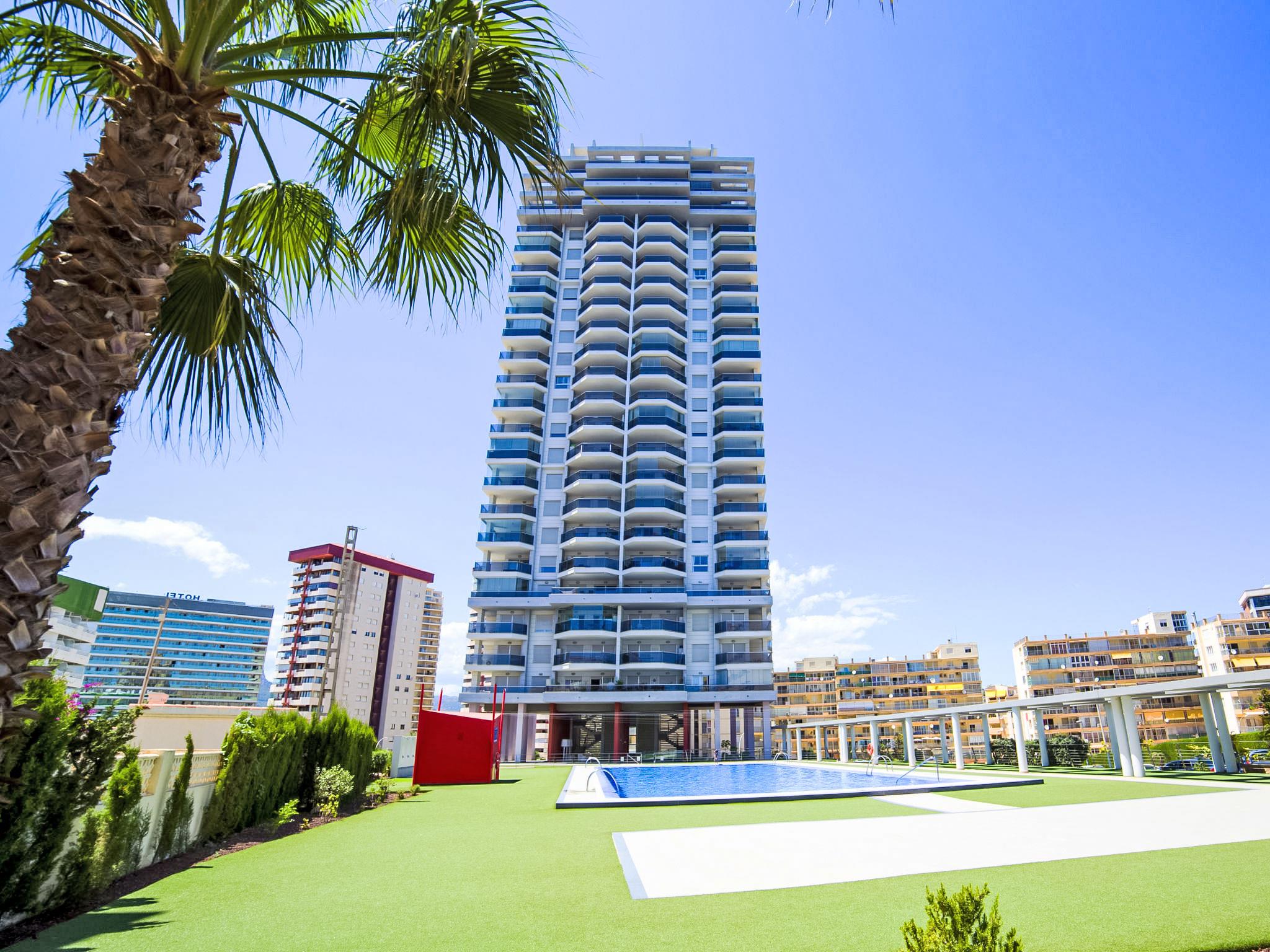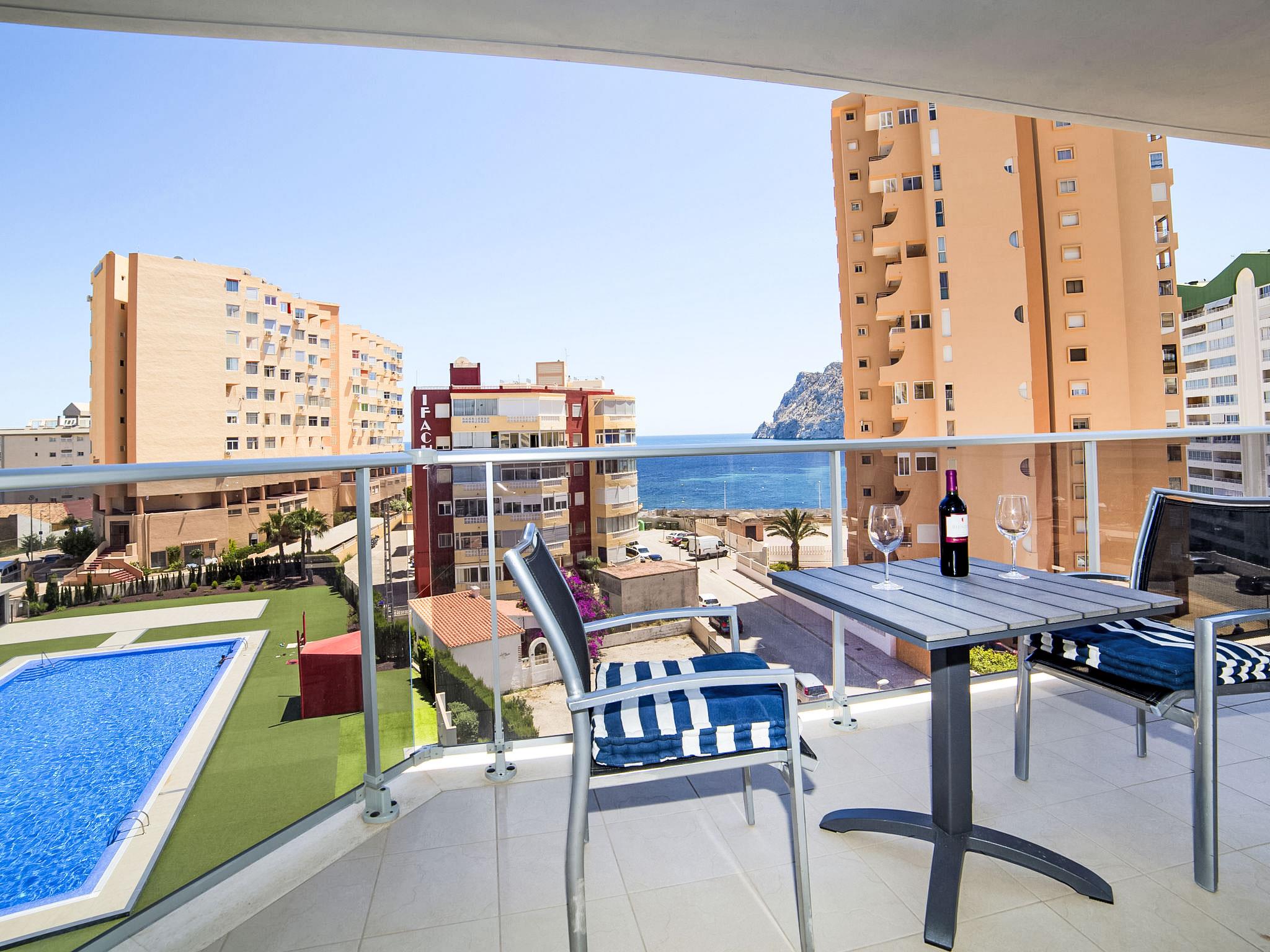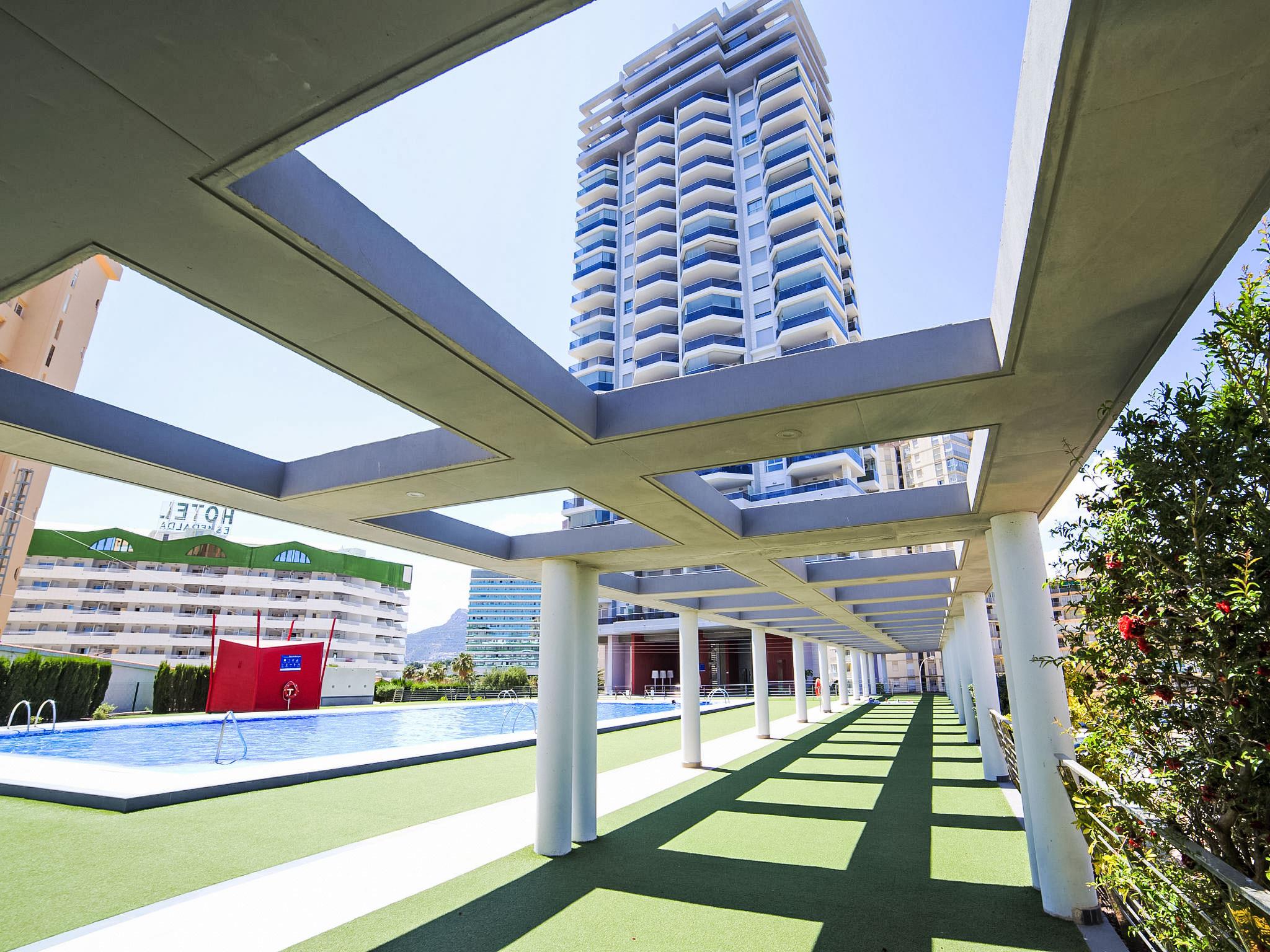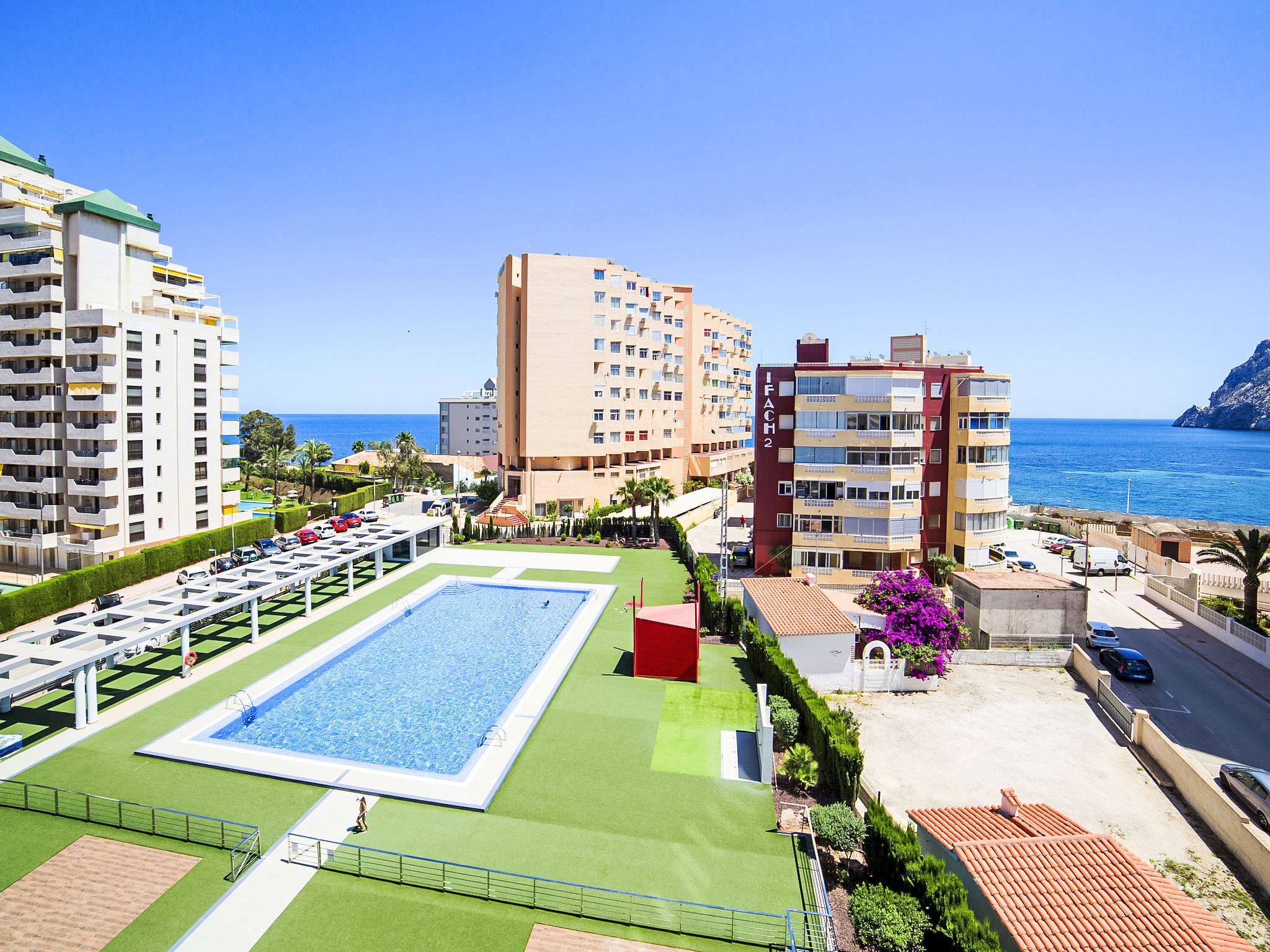 Playa de la Fossa: Large, very beautiful apartment block "Entremares". In the resort 3.6 km from the centre of Calpe, in a quiet, sunny position, 200 m from the sea, 250 m from the beach, in a cul-de-sac. For shared use: property (fenced), swimming pool (seasonal availability: 15.Jun. - 15.Sep.). Outdoor shower. In the house: lift. Grocery, supermarket 350 m, restaurant 300 m, bakery 350 m, café 65 m, bicycle rental 170 m, bus stop 140 m, sandy beach "Playa de la Fossa" 300 m. Sports harbour 2.4 km, marina 2.4 km, golf course (9 hole) 9.9 km. Nearby attractions: Aqualandia, Mundomar, Terra Mítica, Les Fonts de l'Algar, Terra Natura, Benidorm Palace (Benidorm), Castillo de Guadalest.