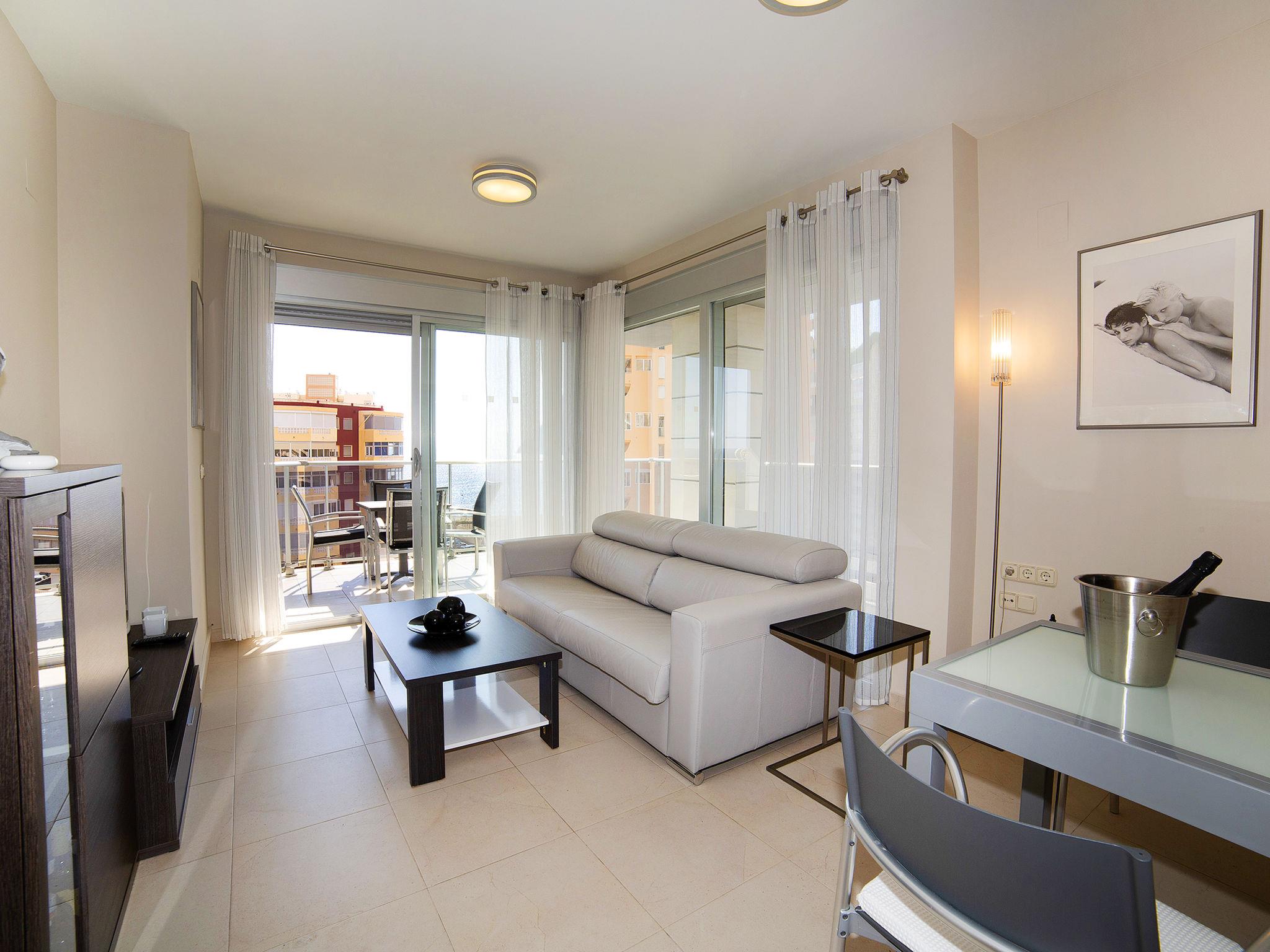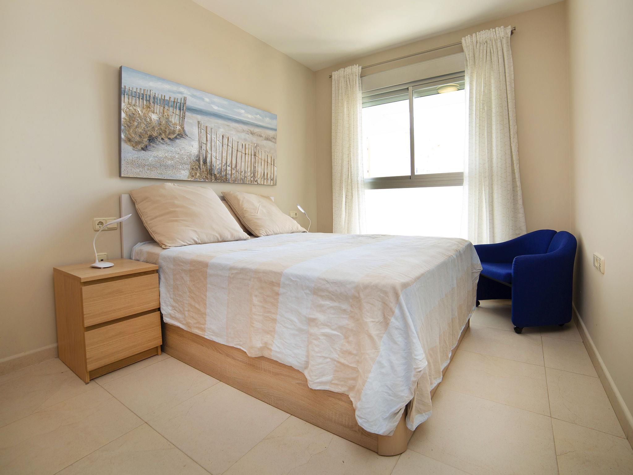 "Entremares", 2-room apartment 73 m2 on 3rd floor. Object suitable for 2 adults. Spacious and bright, beautiful and modern furnishings: living/dining room with digital TV, air conditioning and forced-air heating. Exit to the terrace. 1 room with 1 french bed, air conditioning and forced-air heating. Open kitchen (oven, dishwasher, 3 ceramic glass hob hotplates, microwave). Shower/bidet/WC. Terrace 20 m2. Terrace furniture. View of the sea, the swimming pool and the town. Facilities: washing machine. Internet (WiFi, free). Parking space n 11 (roofed). AT-468365-A // Reg. Nr.: ESFCTU00000302900074042300000000000000000AT-468365-A0