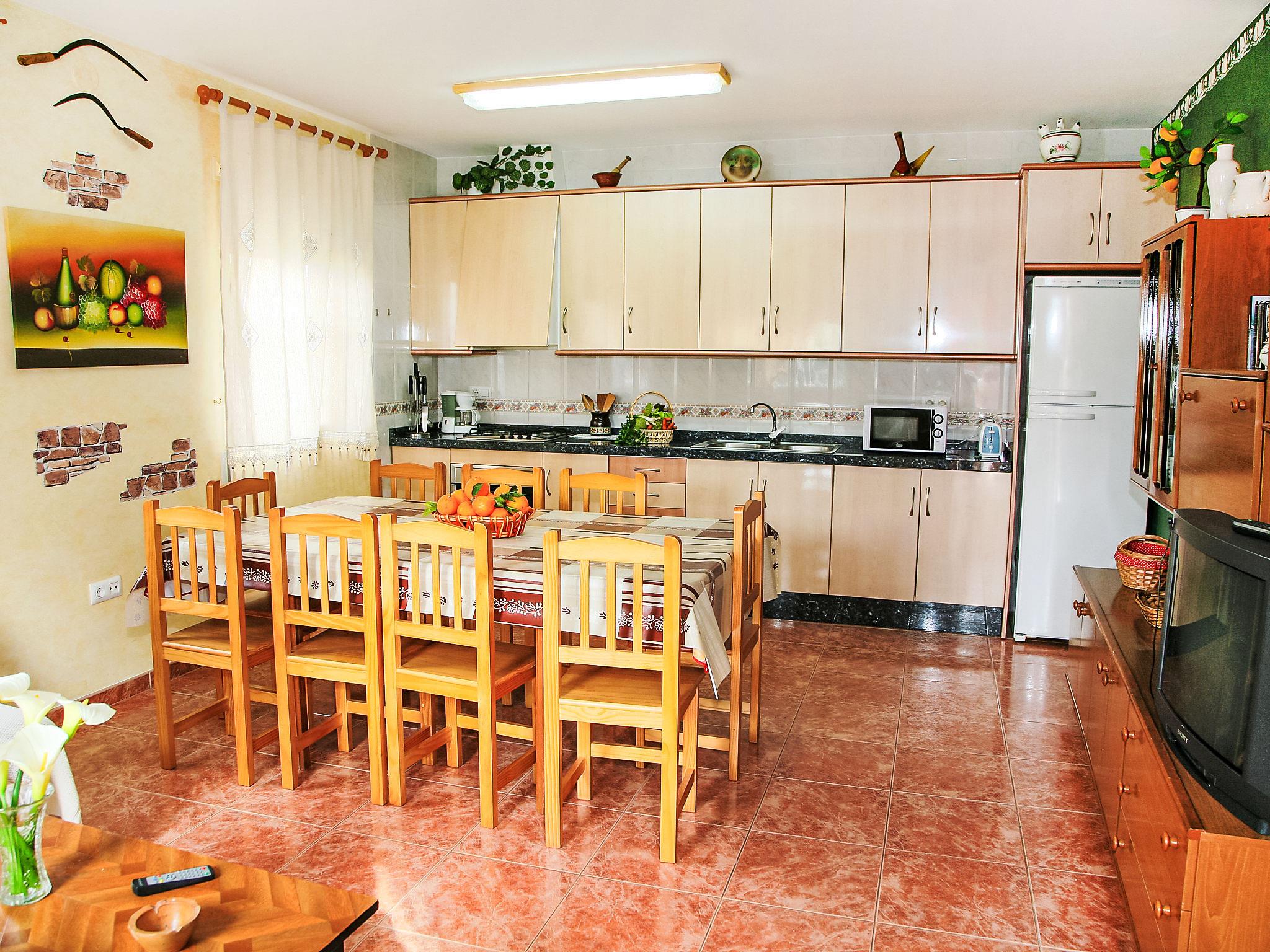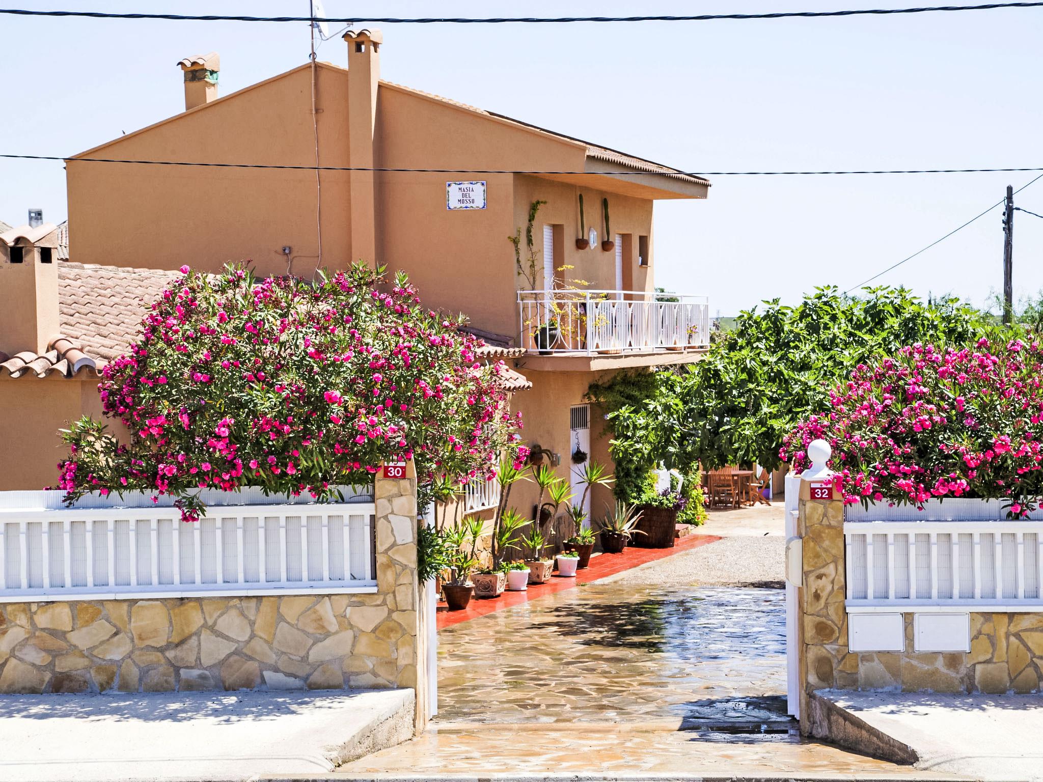 "Masia del Mosso", 7-room house 130 m2 on 2 levels. Renovated in 2022: living/dining room 30 m2 with satellite TV, digital TV and flat screen. 1 room with 2 beds (90 cm, length 190 cm), fan. 1 room with 1 french bed (135 cm, length 190 cm), fan. 1 room with 1 bed (90 cm, length 180 cm), fan. Open kitchen (4 hot plates, oven, microwave, freezer, electric coffee machine) with fan. Hip bath/bidet/WC. Upper floor: living/dining room with digital TV. 1 room with 1 french bed (135 cm, length 190 cm), fan. 1 room with 2 beds (90 cm, length 190 cm), fan. Bath/bidet/WC. Balcony. Deck chairs (5). Facilities: washing machine, iron, mosquito net. Internet (WiFi, free). Parking (fenced 2 cars). The living-dining room has a ceiling fan. The access to the 1st floor is via a metal, outdoor staircase (18 steps). 2 refrigerators are available. HUTTE-001036 // Reg. Nr.: ESFCTU0000430190004636040000000000000000HUTTE-0010361