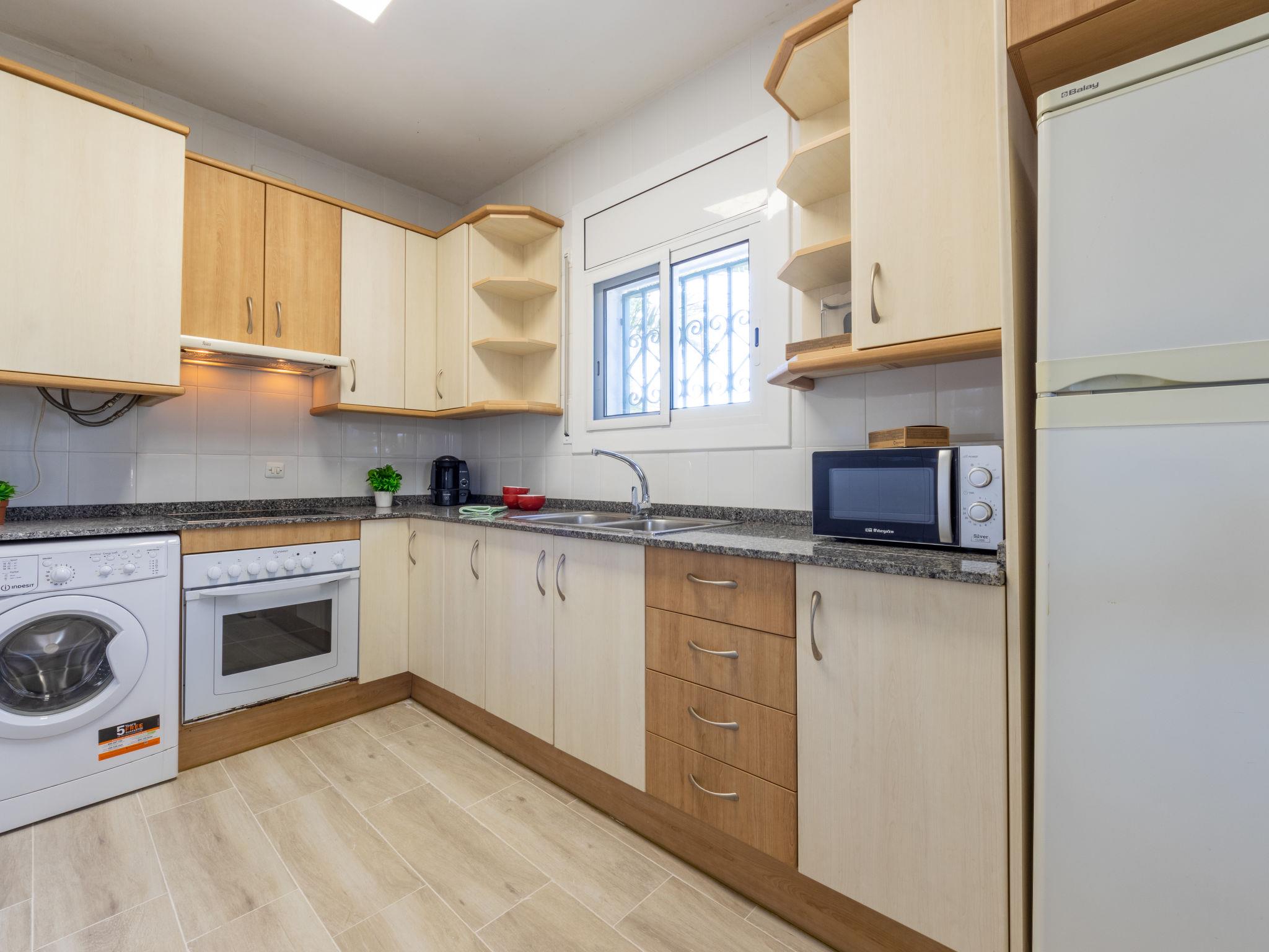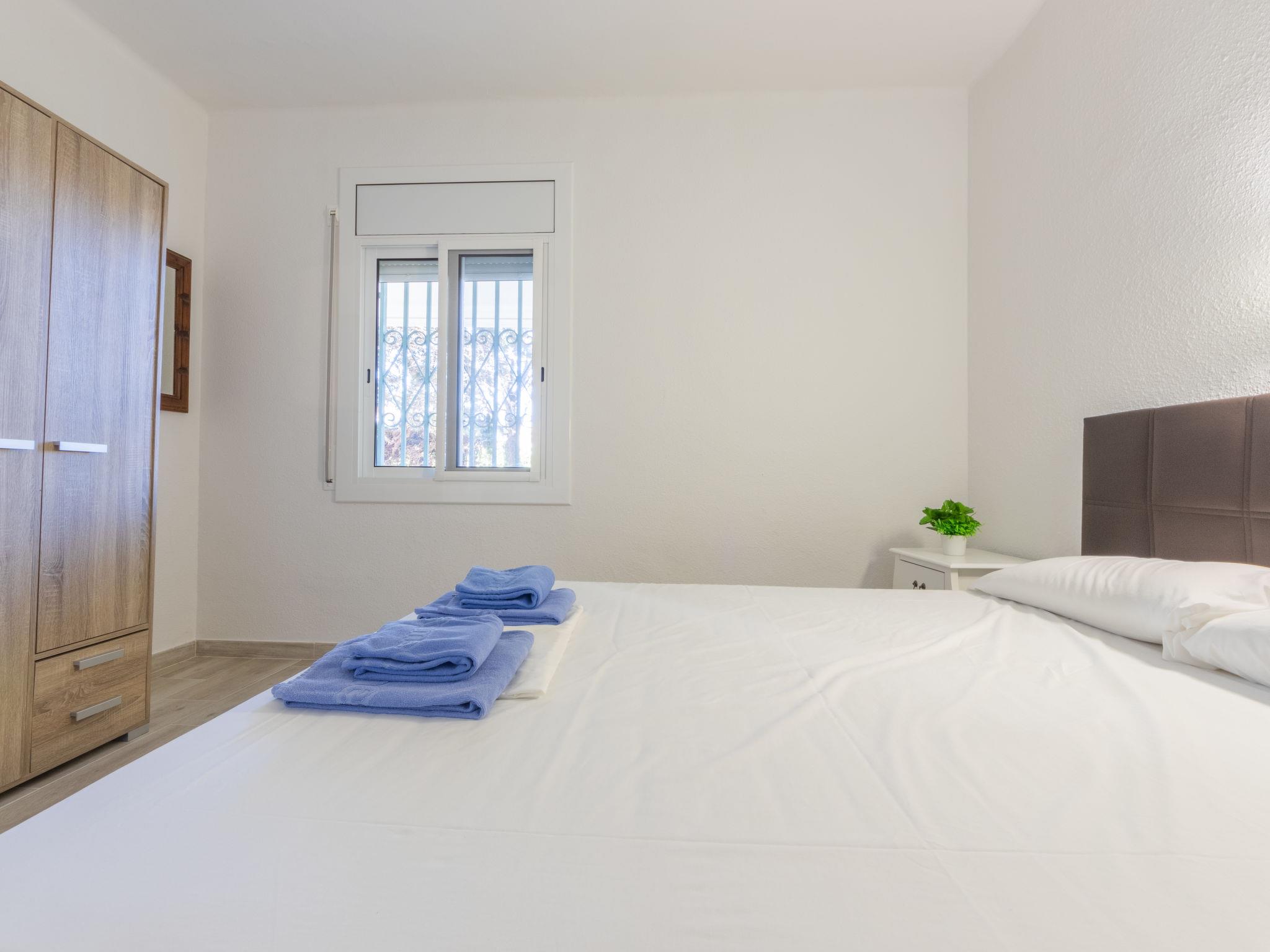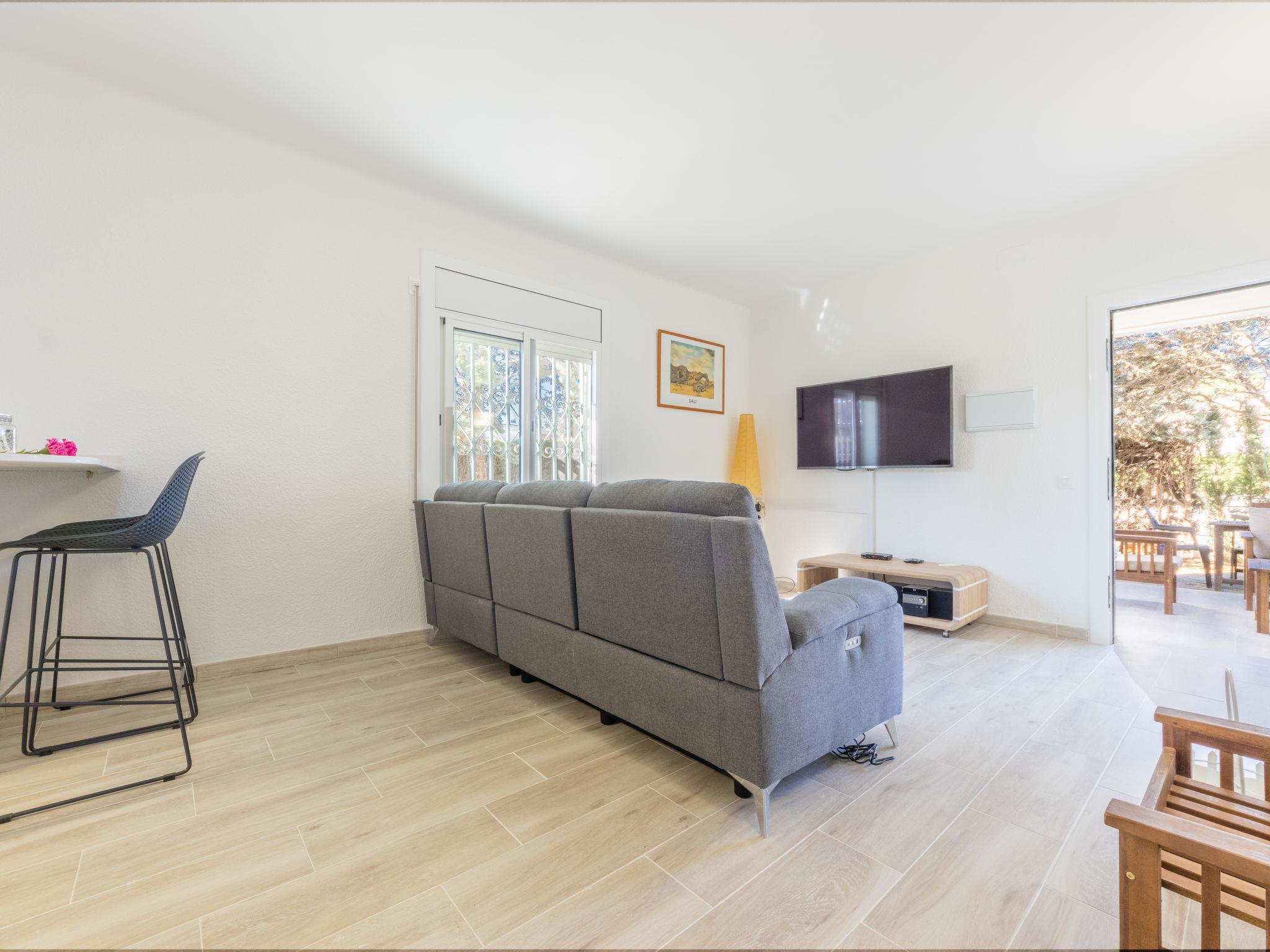 4-room house 62 m2, on the ground floor. Practical furnishings: living/dining room 18 m2 with satellite TV, digital TV and international TV channels. Exit to the patio. 1 room 11 m2 with 1 french bed (135 cm). 1 room 7 m2 with 1 bed (80 cm). 1 room 9 m2 with 2 beds (80 cm). Kitchen (4 hot plates, oven, kettle, microwave, electric coffee machine) with dining table. Bath/bidet/WC. No heating option. Terrace furniture, barbecue. View of the garden. Facilities: washing machine. Internet (WiFi, free). Parking (fenced). Maximum 2 pets/ dogs allowed. HUTT-006365 // Reg. Nr.: ESFCTU00004303100001593500000000000000000HUTT-0063652