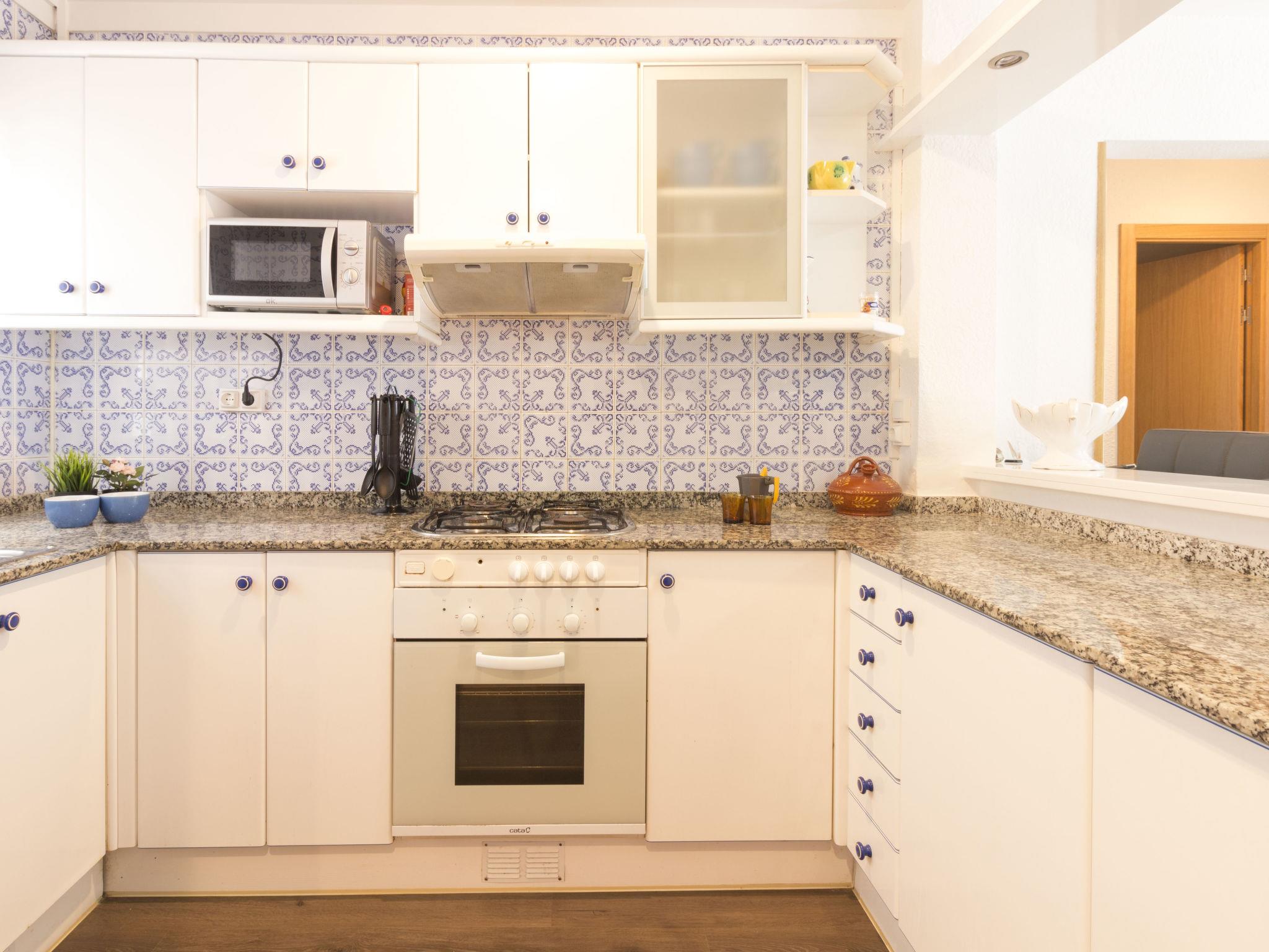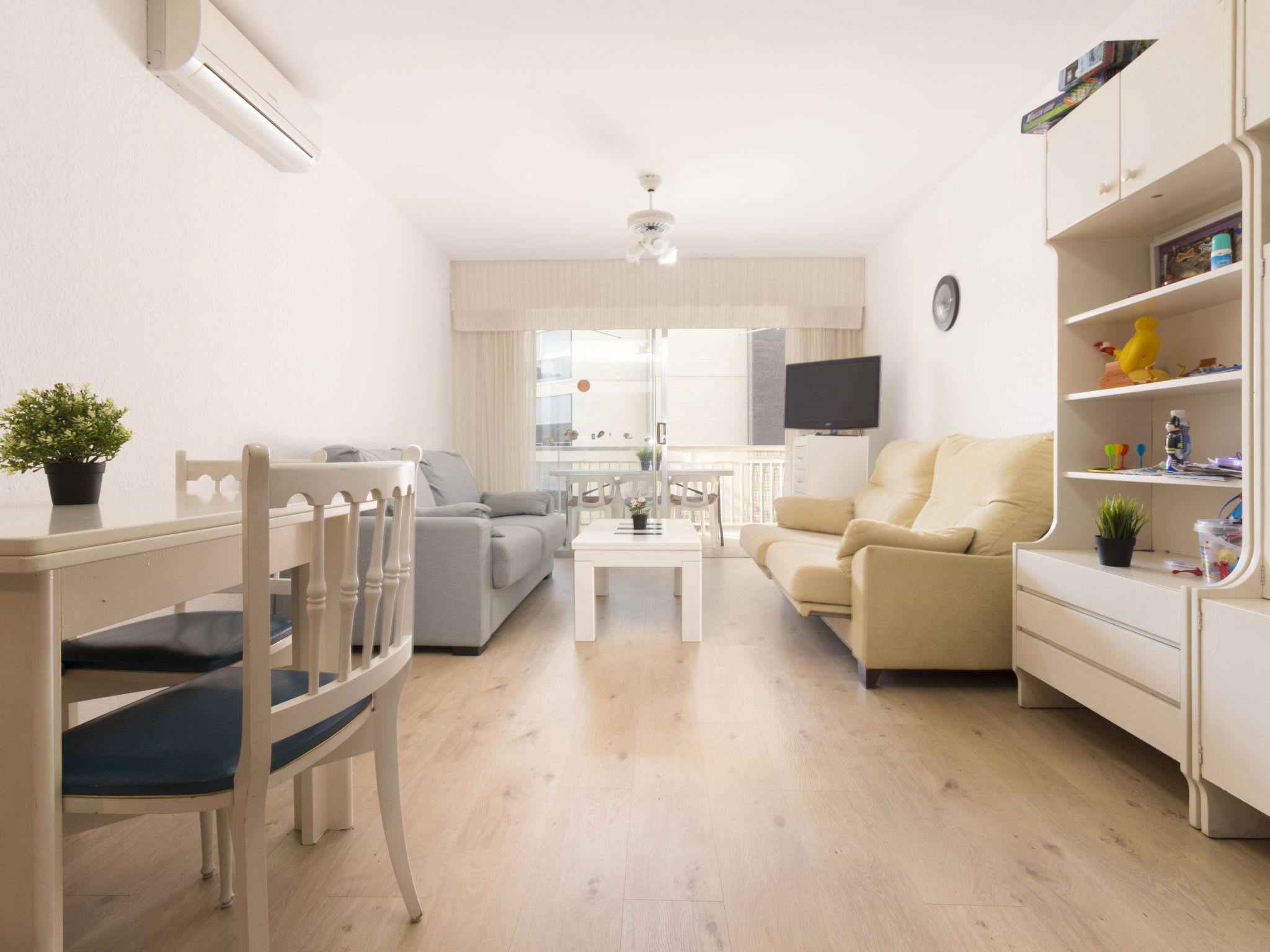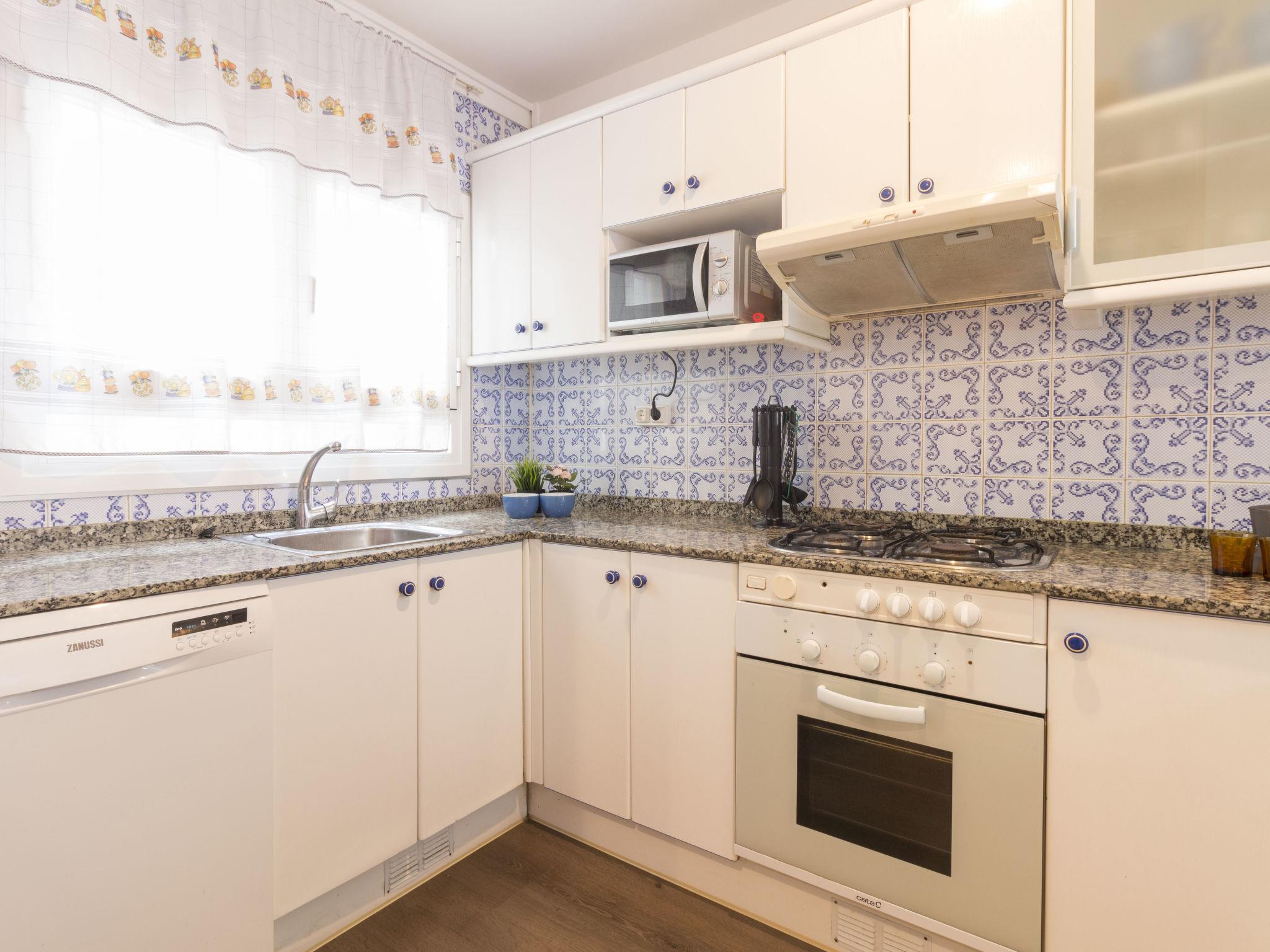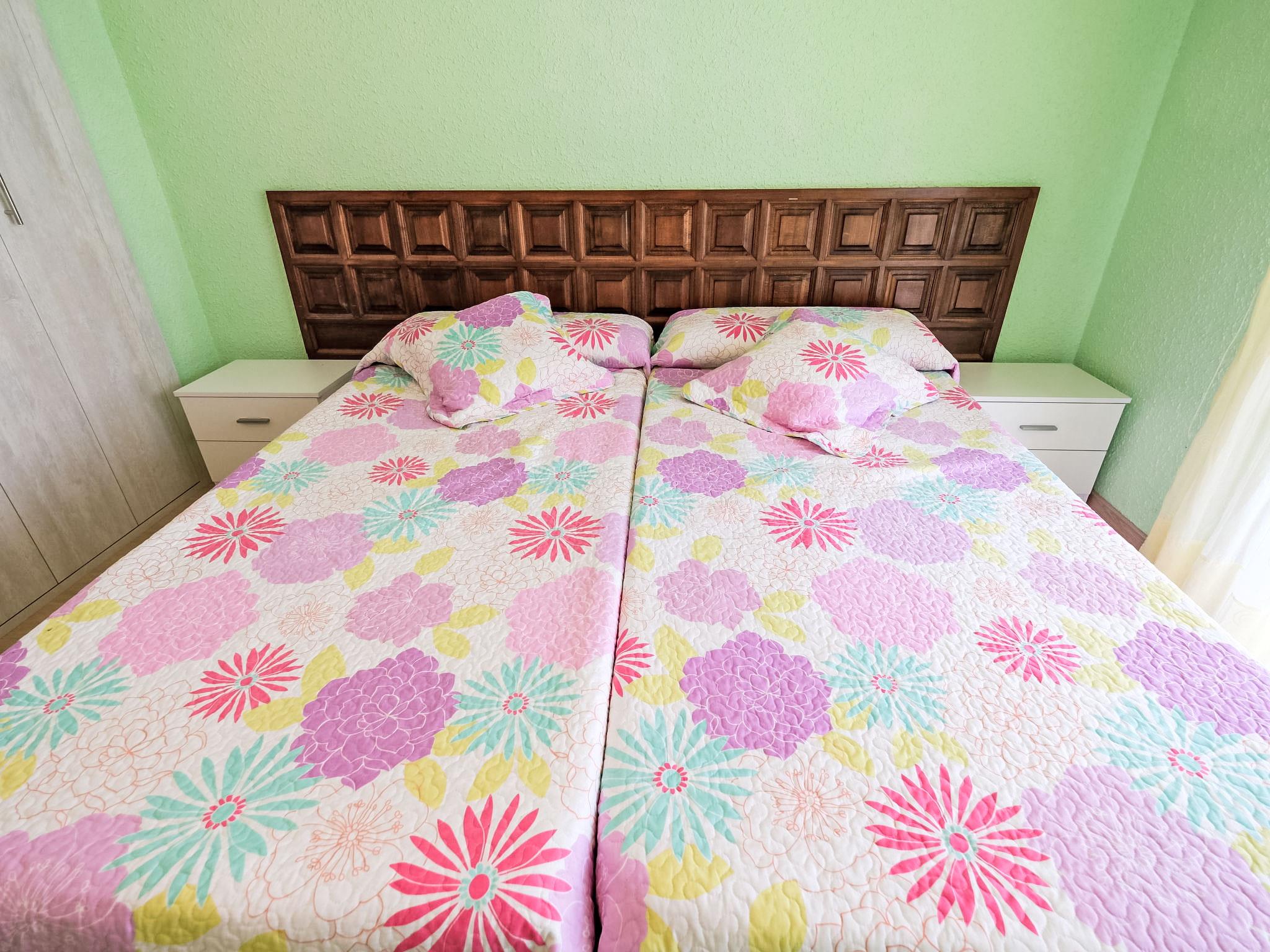 3-room apartment 55 m2 on 2nd floor. Bright, comfortable and beautiful furnishings: living/dining room with 1 double sofabed, dining table, digital TV and air conditioning. Exit to the terrace. 2 rooms, each room with 2 beds. Open kitchen (4 hot plates, oven, dishwasher, microwave, freezer, electric coffee machine) with bar. Shower/bidet/WC. No heating option. Large balcony. Balcony furniture. Partial view of the sea. Facilities: washing machine. HUTT037447 // Reg. Nr.: ESFCTU000043031000004243000000000000000000HUTT0374470