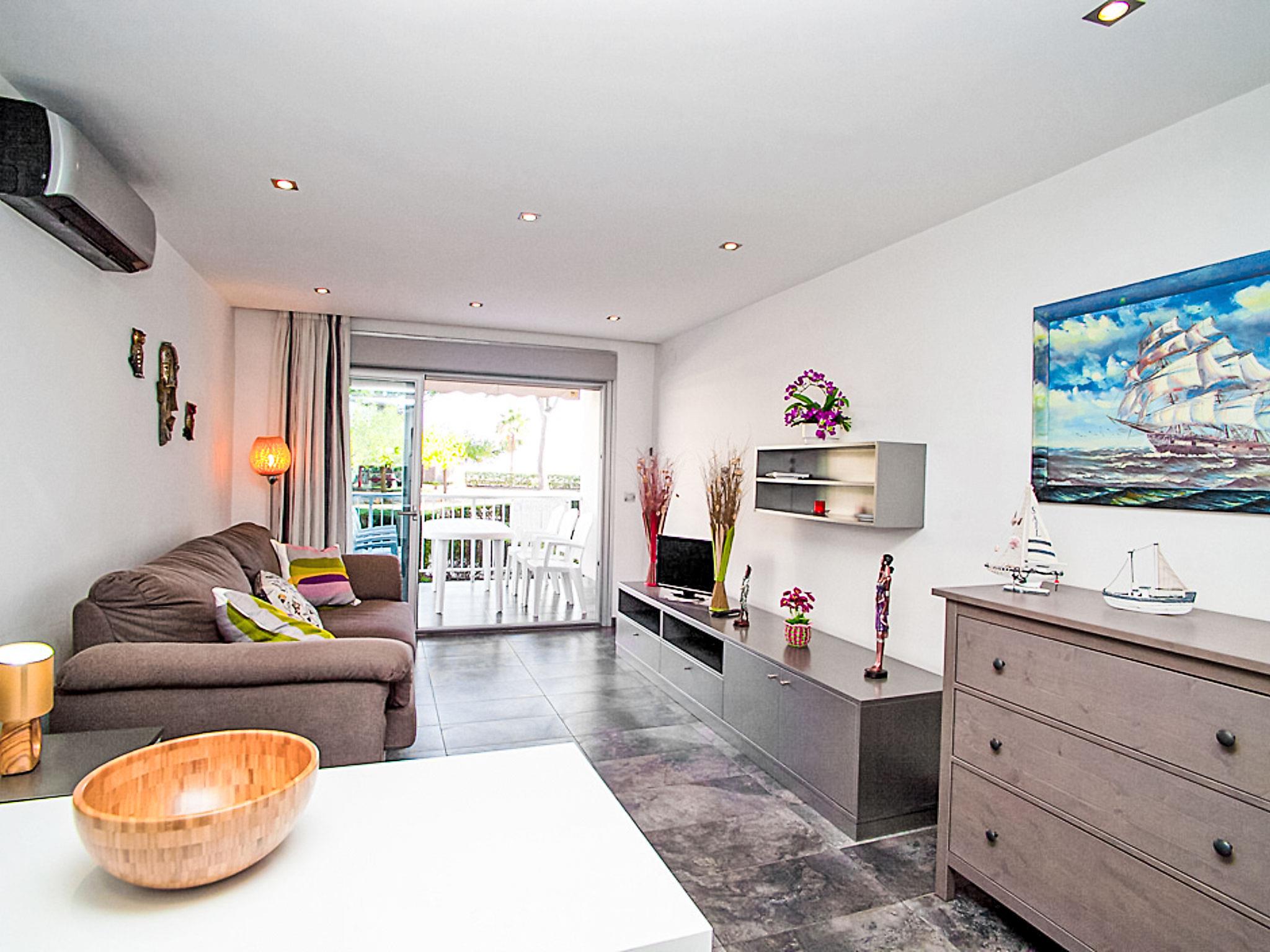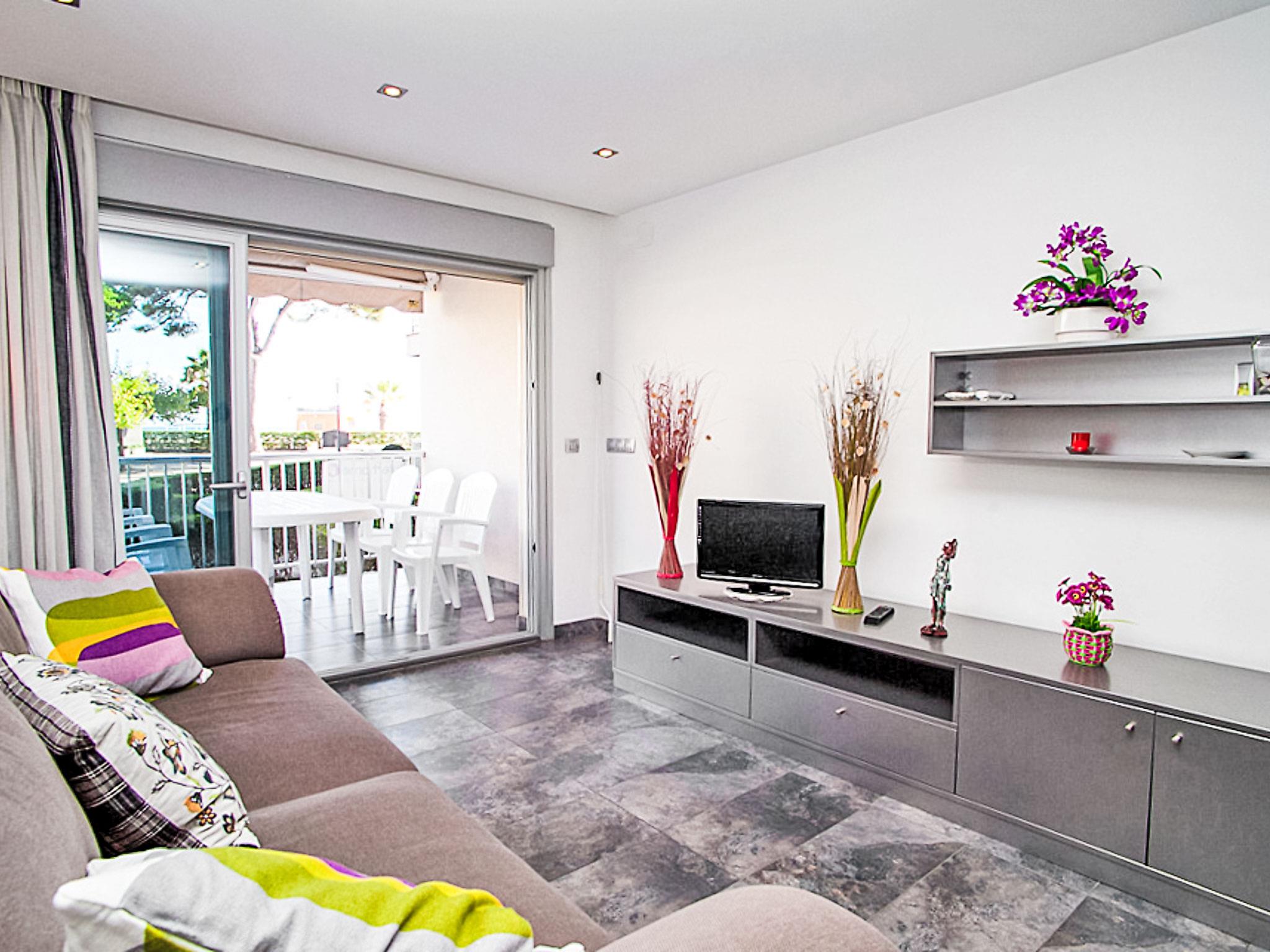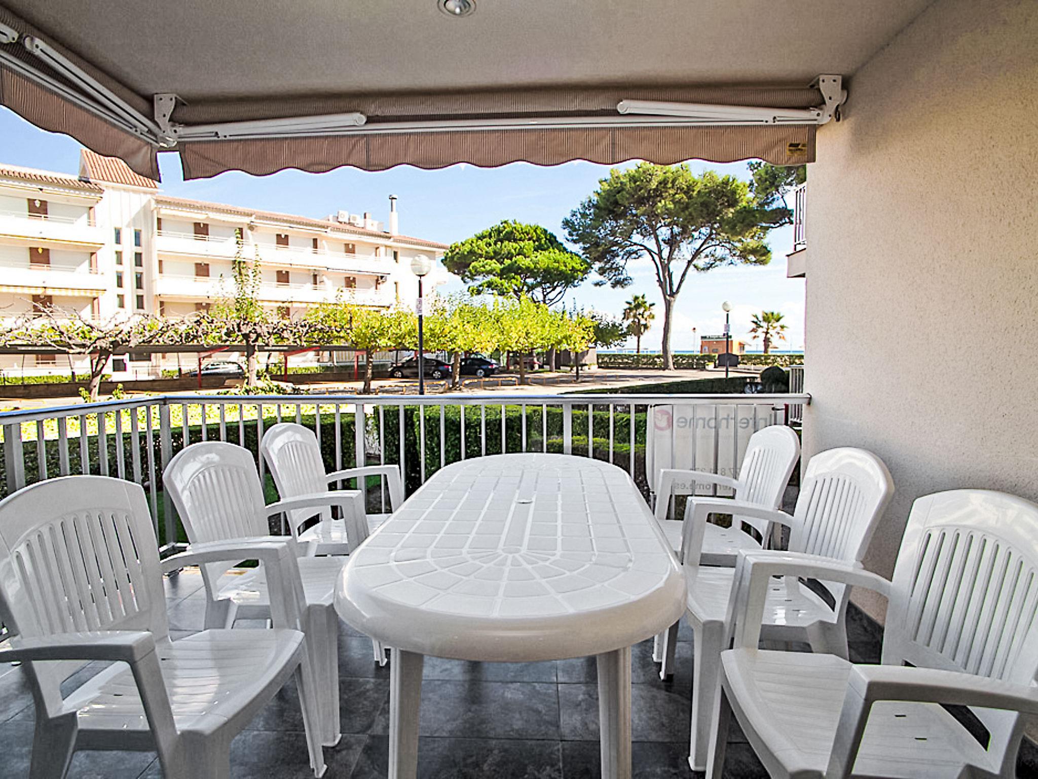 Vilafortuny 2 km from Cambrils: Cosy apartment block "DMS V". 5 m from the sea, 5 m from the beach, direct access to the beach. For shared use: small, well-kept garden, roofed, parking space n c03. Shop 10 m, supermarket, restaurant 50 m, bar, pedestrian zone, bus stop, sandy beach 5 m. Golf course (18 hole) 2 km. Nearby attractions: Parque temático PORTAVENTURA 3 km, Parque aquáico AQUOPOLIS 6 km, Spa AQUUM 6 km, Karting 3 km, Paintball 8 km. Groups of teenagers on request only.