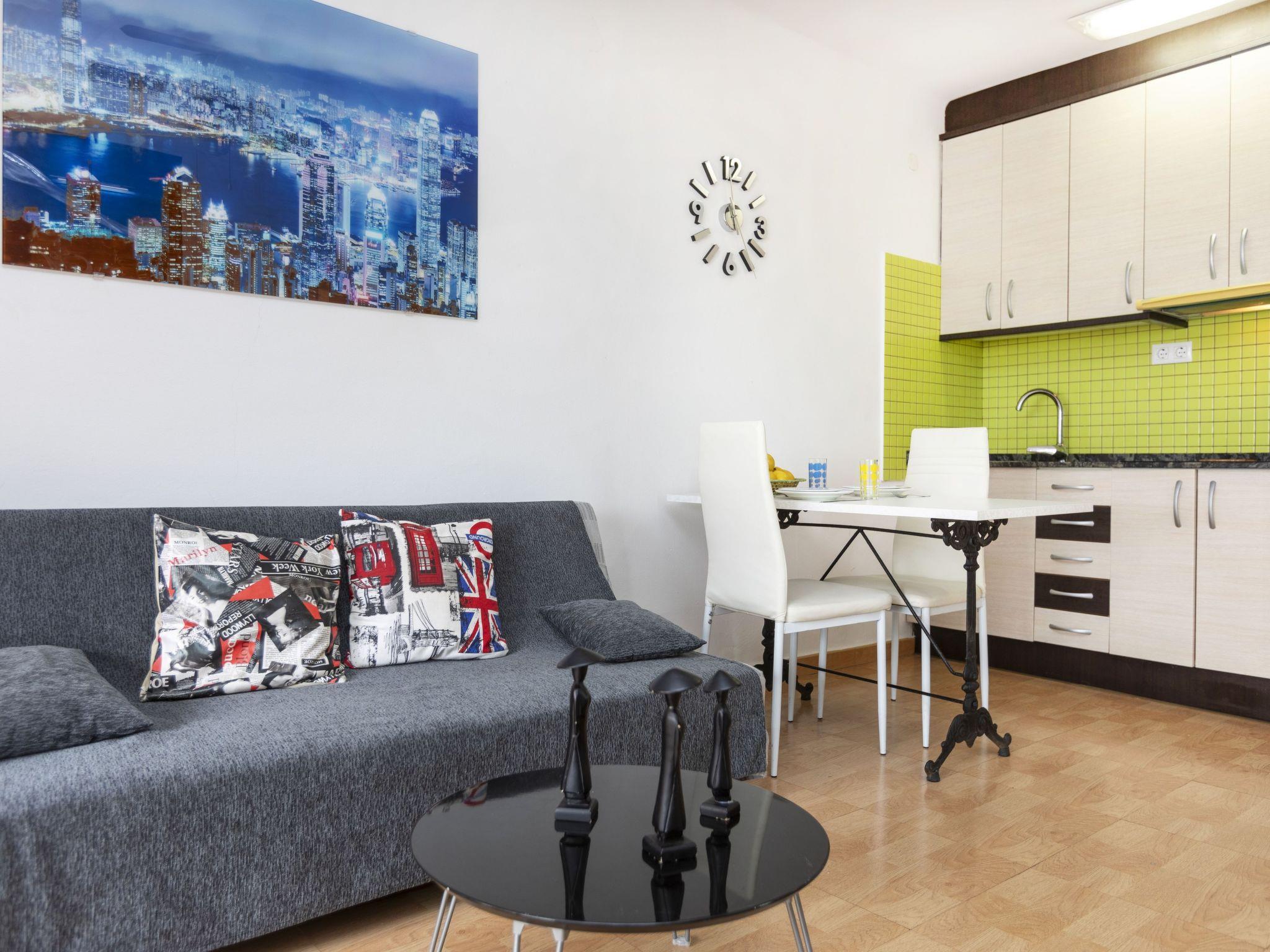 "Memling", 2-room apartment 45 m2 on 1st floor. Simple furnishings: living/dining room with dining table and digital TV. Exit to the loggia. 1 room with 1 french bed (135 cm, length 190 cm), electric heater and fan. Open kitchen (3 ceramic glass hob hotplates, kettle, microwave, freezer, electric coffee machine). Bath/shower/WC. Heating not available in all rooms. Balcony. Terrace furniture. View of the sea. Facilities: washing machine, iron, hair dryer. Internet (WiFi, free). HUTT-070025 // Reg. Nr.: ESFCTU00004303100053539600000000000000000HUTT-0700258