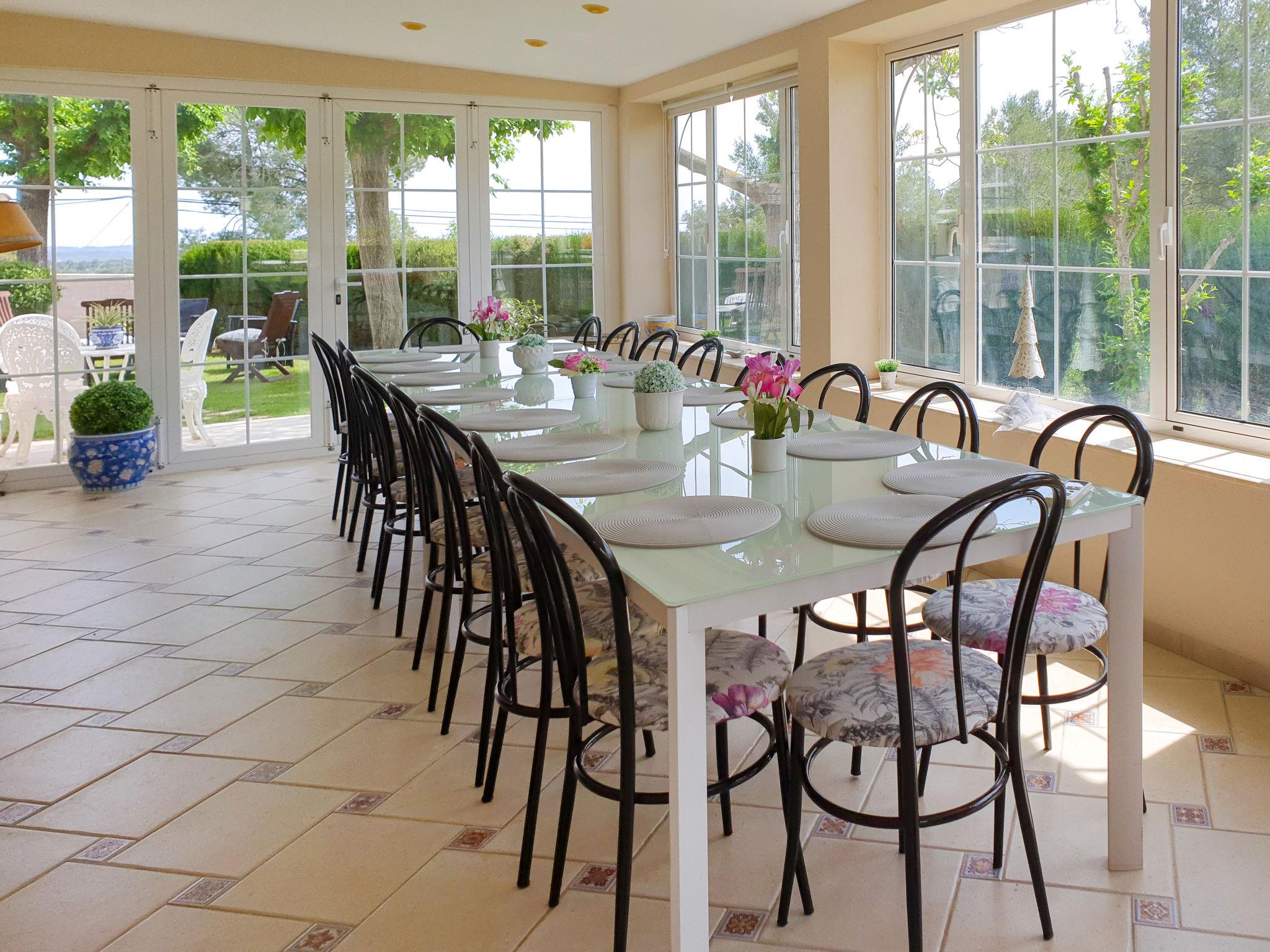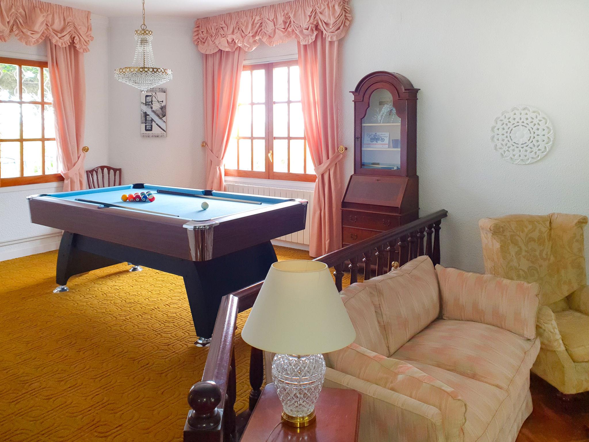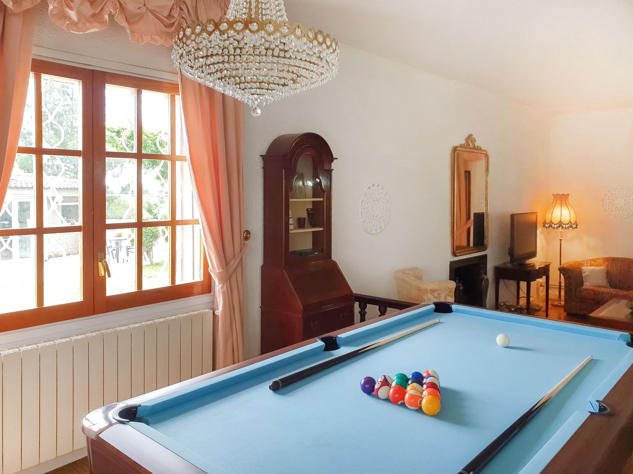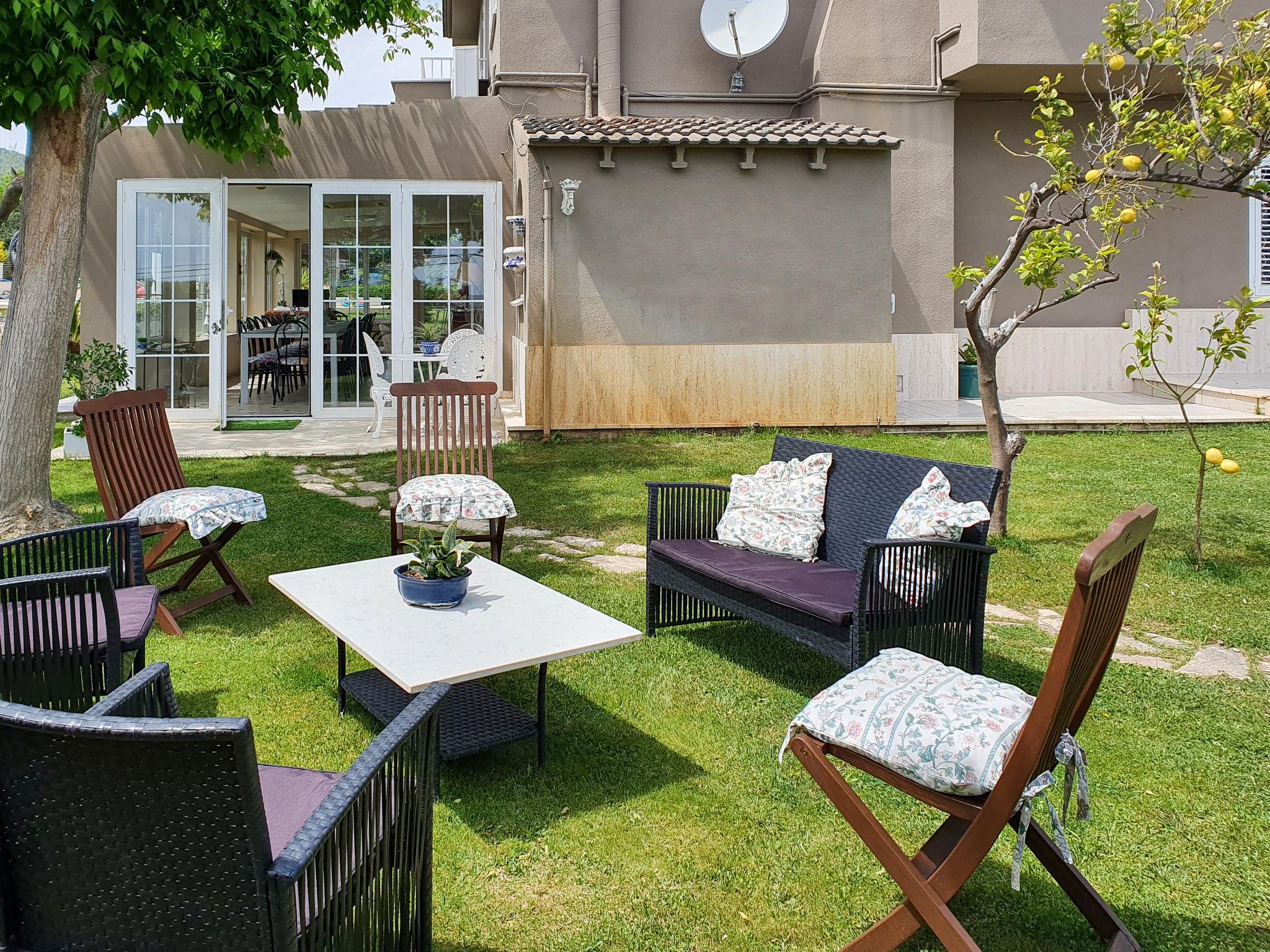 "Ca Romeu", 9-room house 220 m2. Spacious, comfortable and wooden furniture furnishings: living room with digital TV. Exit to the veranda. 1 room with 2 beds (90 cm, length 190 cm). Exit to the veranda. Dining room with air conditioning. Kitchen (dishwasher, 4 ceramic glass hob hotplates, toaster, kettle, microwave, electric coffee machine). Shower/bidet/WC, hydro massage shower. No heating option. Upper floor: 1 room with 1 x 2 bunk beds (90 cm, length 190 cm). 1 room with 1 bed (90 cm, length 190 cm), 1 french bed (150 cm, length 190 cm). 1 room with 1 french bed (150 cm, length 190 cm). 1 room with 2 beds (90 cm, length 190 cm), 1 french bed (150 cm, length 190 cm), bath/WC. Shower/bidet/WC, double hand-basin. Garden, lawn. Terrace furniture, barbecue, deck chairs (3), covered balcony. Of the swimming pool and the garden. Facilities: washing machine, iron, children's high chair, baby cot for up to 2 year olds, hair dryer. Internet (WiFi, free). Parking (3 cars). Please note: suitable for families. Non-smoking house. Full outdoor kitchen, with dishwasher and washing machine. HUTT05291841 // Reg. Nr.: ESFCTU00004300800003817200000000000000HUTT-052918-419