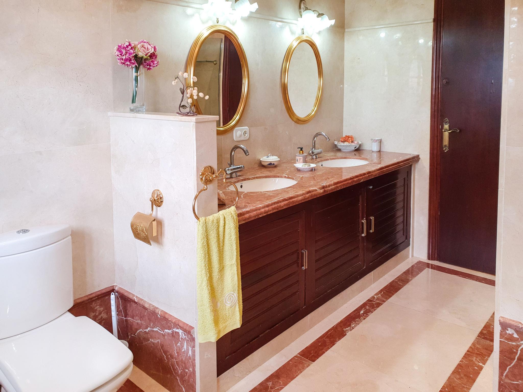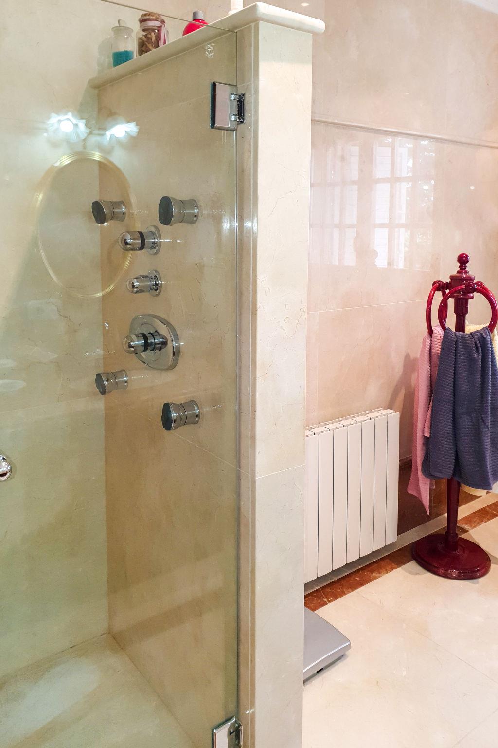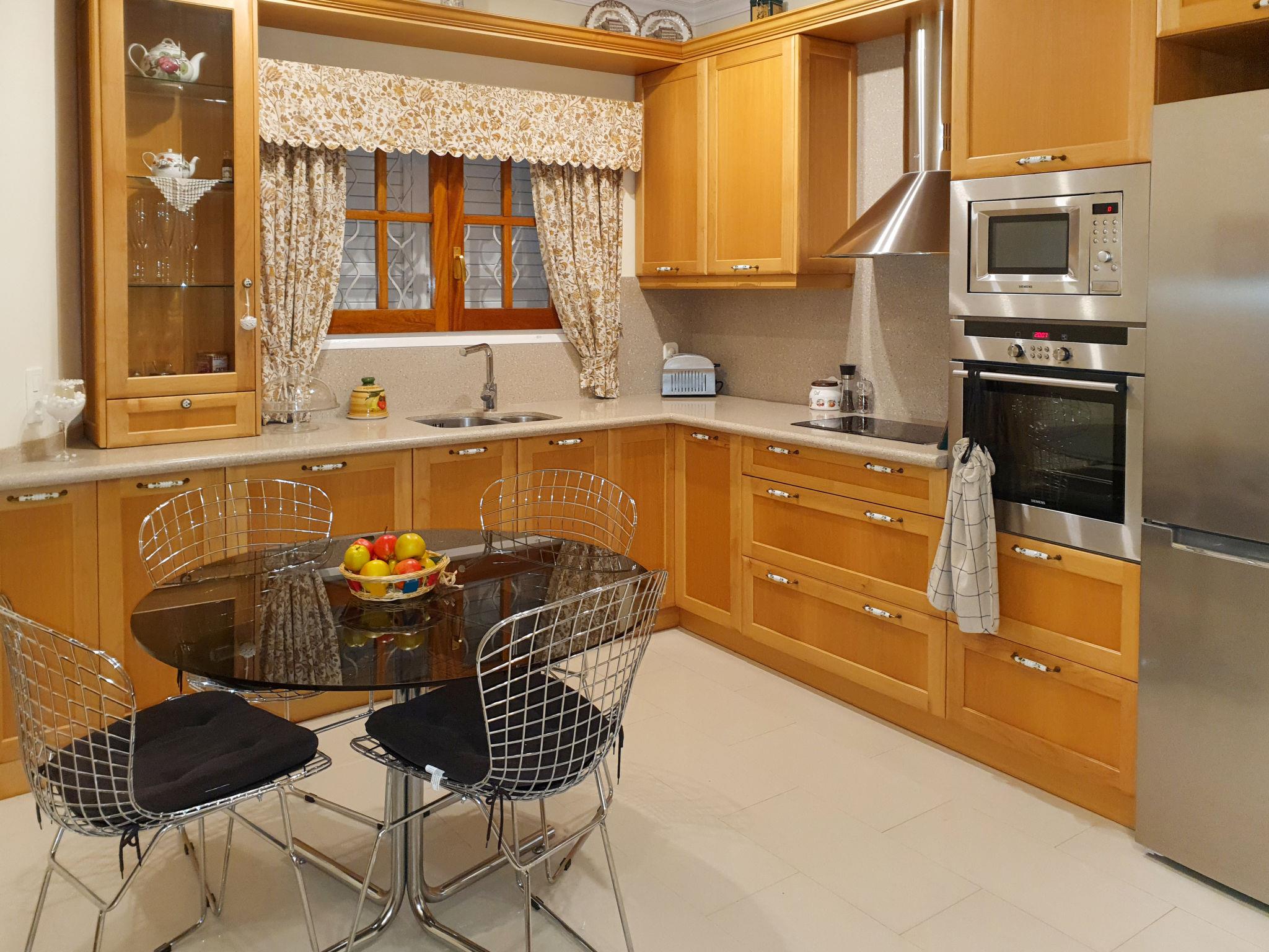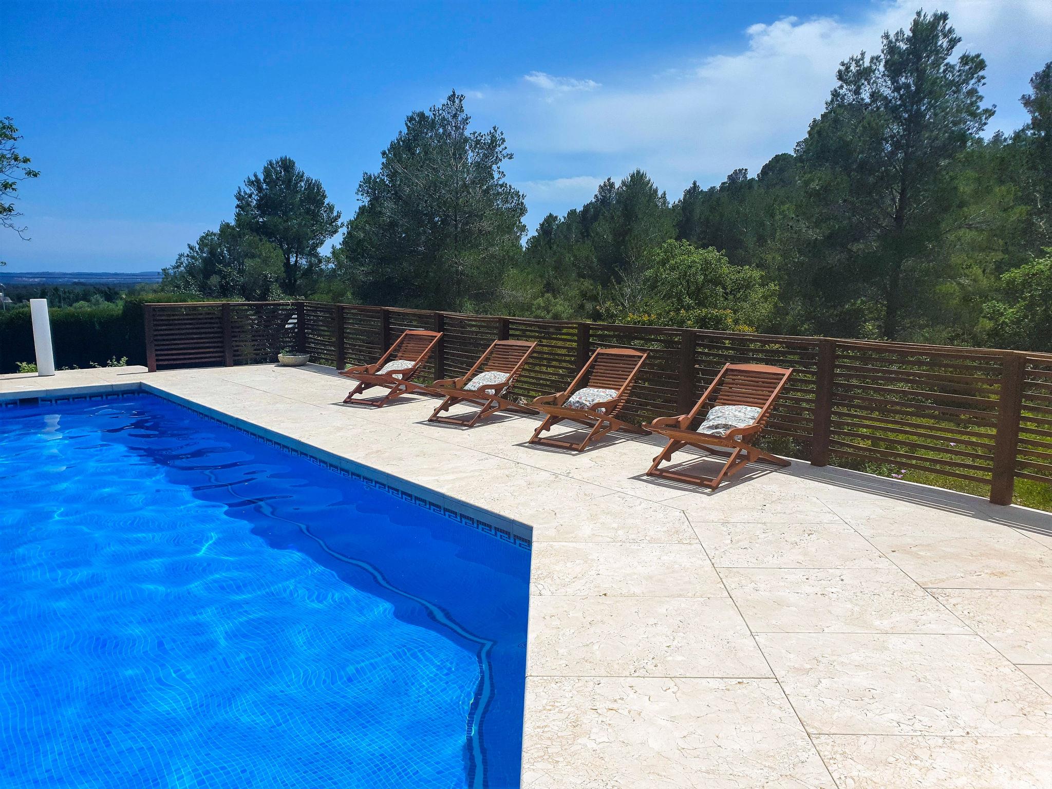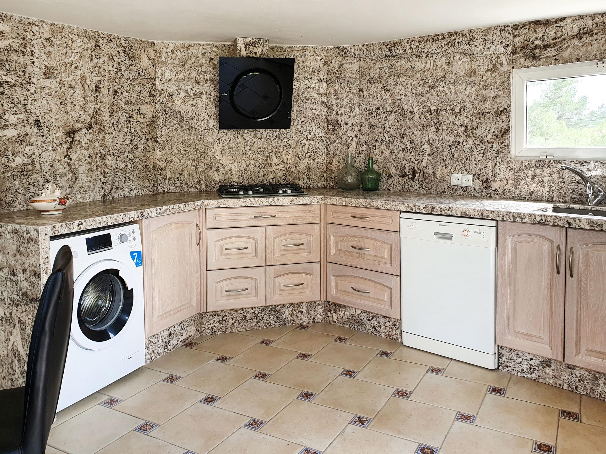 "Ca Romeu", 9-room house 220 m2. Spacious, comfortable and wooden furniture furnishings: living room with digital TV. Exit to the veranda. 1 room with 2 beds (90 cm, length 190 cm). Exit to the veranda. Dining room with air conditioning. Kitchen (dishwasher, 4 ceramic glass hob hotplates, toaster, kettle, microwave, electric coffee machine). Shower/bidet/WC, hydro massage shower. No heating option. Upper floor: 1 room with 1 x 2 bunk beds (90 cm, length 190 cm). 1 room with 1 bed (90 cm, length 190 cm), 1 french bed (150 cm, length 190 cm). 1 room with 1 french bed (150 cm, length 190 cm). 1 room with 2 beds (90 cm, length 190 cm), 1 french bed (150 cm, length 190 cm), bath/WC. Shower/bidet/WC, double hand-basin. Garden, lawn. Terrace furniture, barbecue, deck chairs (3), covered balcony. Of the swimming pool and the garden. Facilities: washing machine, iron, children's high chair, baby cot for up to 2 year olds, hair dryer. Internet (WiFi, free). Parking (3 cars). Please note: suitable for families. Non-smoking house. Full outdoor kitchen, with dishwasher and washing machine. HUTT05291841 // Reg. Nr.: ESFCTU00004300800003817200000000000000HUTT-052918-419