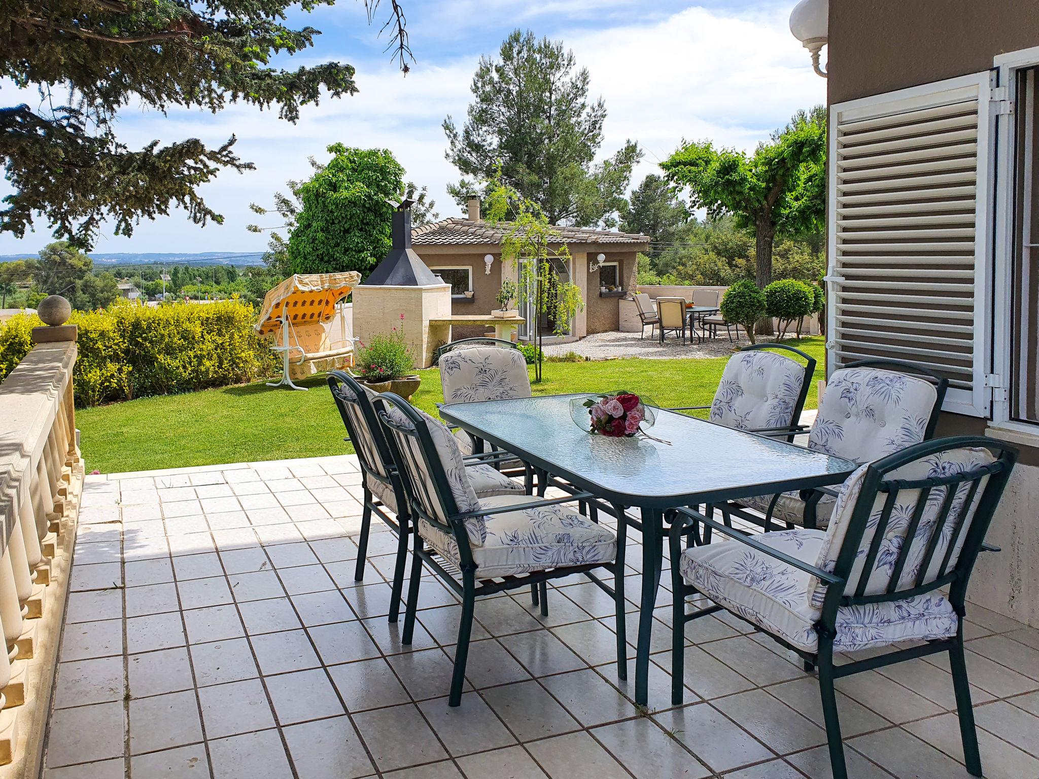 Alcover 18 km from Reus: Large, beautiful, cosy single-family house "Ca Romeu", 2 storeys. In a quiet position. Private: beautiful, well-kept garden with lawn and trees, swimming pool (11 x 4 m, depth 80 - 200 cm, seasonal availability: 01.Jan. - 31.Dec.). Outdoor shower, pergola, garden furniture, barbecue, pool maintenance by the owner/gardener. In the house: billiard table. Parking (for 3 cars) at the house at, in winter 2 m. Shop, supermarket 400 m, restaurant, bar 600 m, bus stop 500 m. Nearby attractions: Port Aventura 25 km, Aquopolis 27 km, Aquum Spa 27 km, Electric Carting Salou 25 km. Please note: car recommended. The owner does not accept any youth groups.