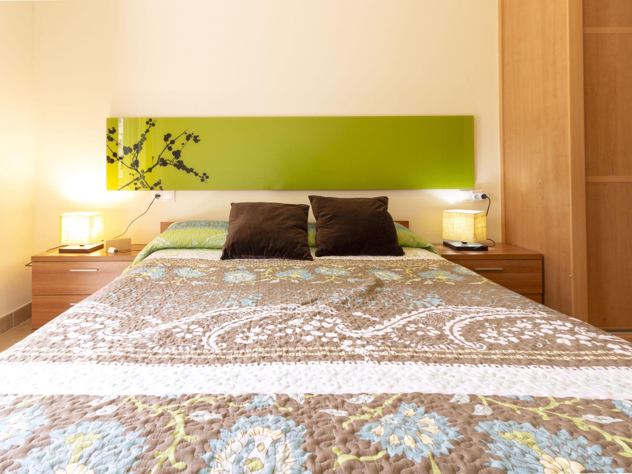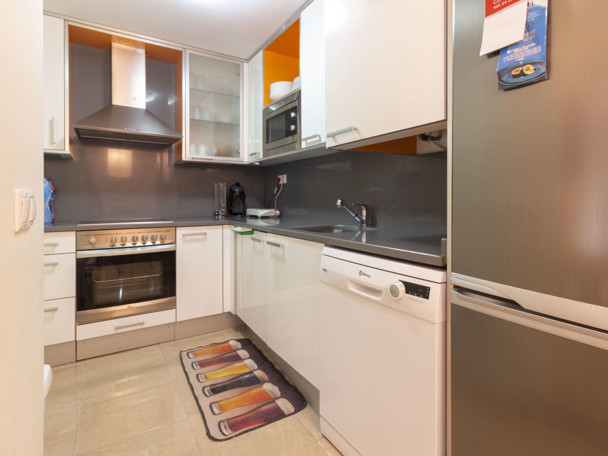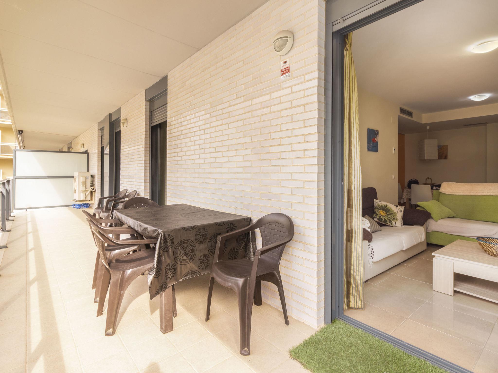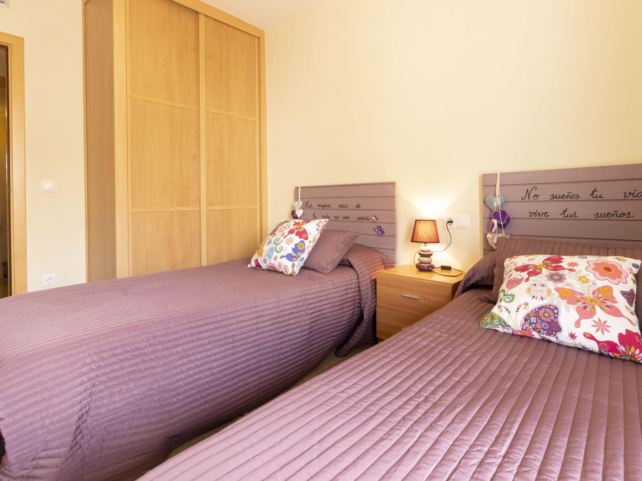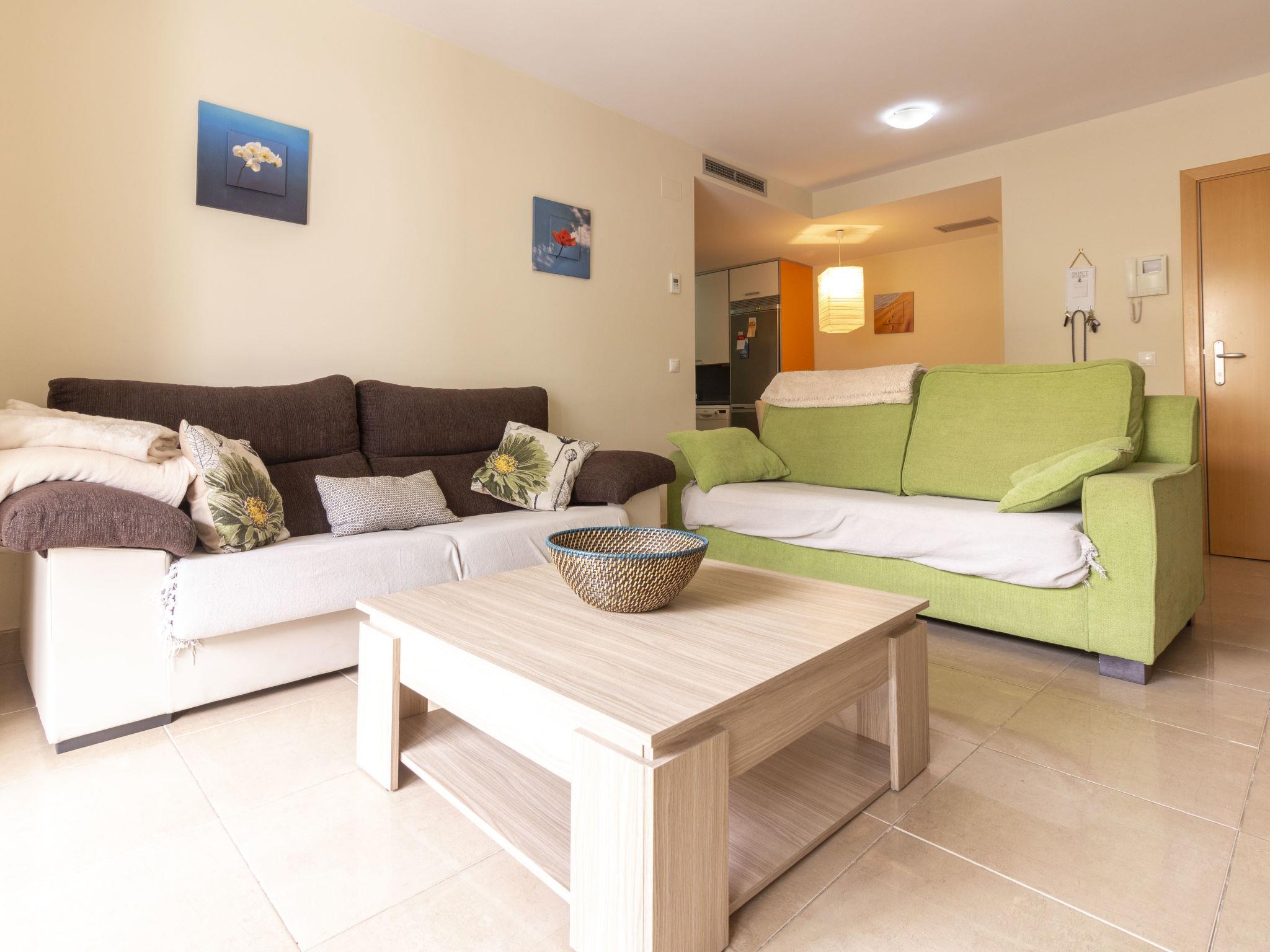 "La Goleta bajos", 4-room apartment 75 m2. Comfortable and beautiful furnishings: living/dining room with digital TV. Exit to the patio. 1 room with 1 french bed (150 cm, length 190 cm), shower/WC. 2 rooms, each room with 2 beds (90 cm, length 190 cm). Open kitchen (oven, dishwasher, 3 ceramic glass hob hotplates, toaster, microwave, electric coffee machine). Shower/WC. Air-conditioning, forced-air heating. Patio 55 m2. Terrace furniture. View of the swimming pool. Facilities: washing machine, iron, hair dryer. Internet (WiFi). Garage space n 25. Please note: non-smokers only. HUTT012612 // Reg. Nr.: ESFCTU00004303100045619600000000000000000HUTT-0126126