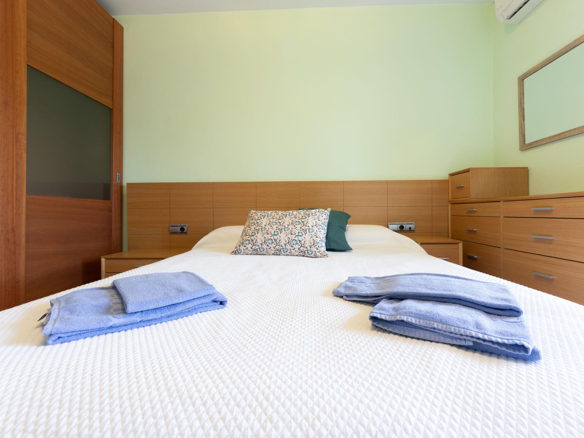 "Velero 108", 2-room apartment 50 m2. Comfortable and beautiful furnishings: living/dining room with 1 double sofabed (150 cm, length 190 cm), digital TV, air conditioning and forced-air heating. Exit to the balcony. 1 room with 1 french bed (150 cm, length 190 cm), air conditioning and forced-air heating. Kitchen (oven, dishwasher, 3 ceramic glass hob hotplates, toaster, kettle, microwave, electric coffee machine, Capsules for coffee machine (tassimo)). Shower/bidet/WC. Boiler (80 litres). Heating not available in all rooms. Terrace. Terrace furniture. Facilities: washing machine, iron, hair dryer. Please note: non-smoking house. HUTT-013042 // Reg. Nr.: ESFCTU00004303100050645700000000000000HUTT-013042-517