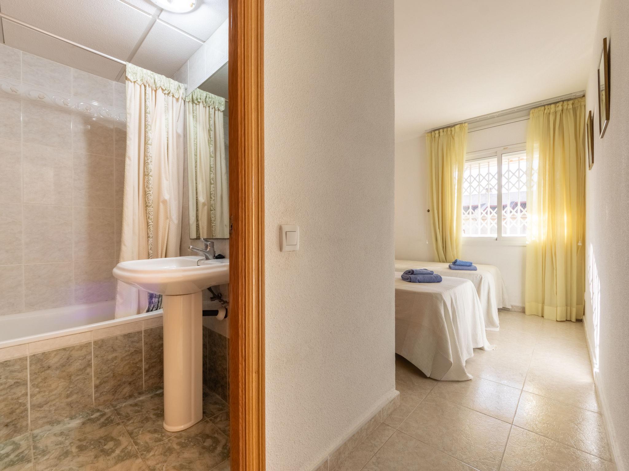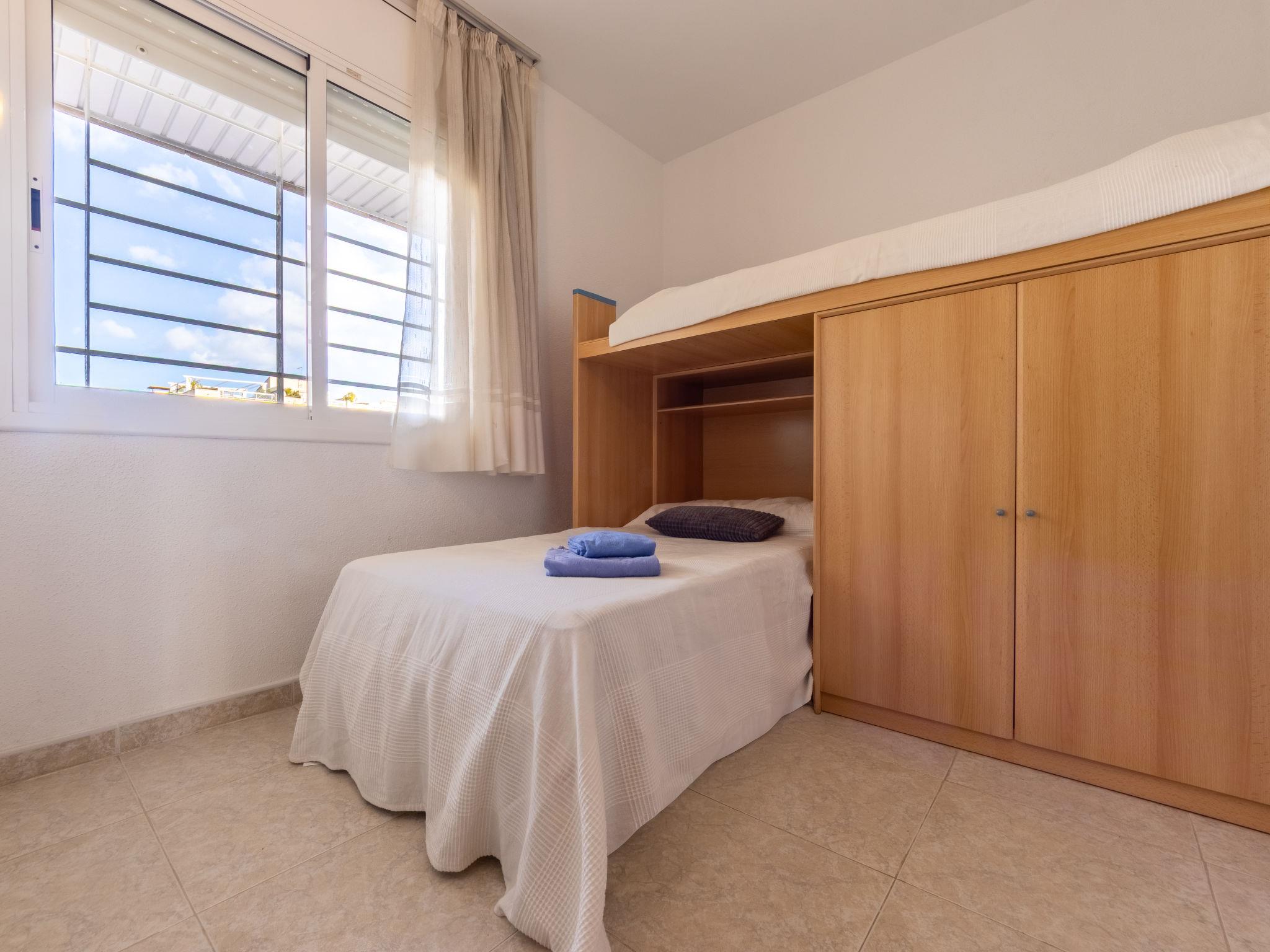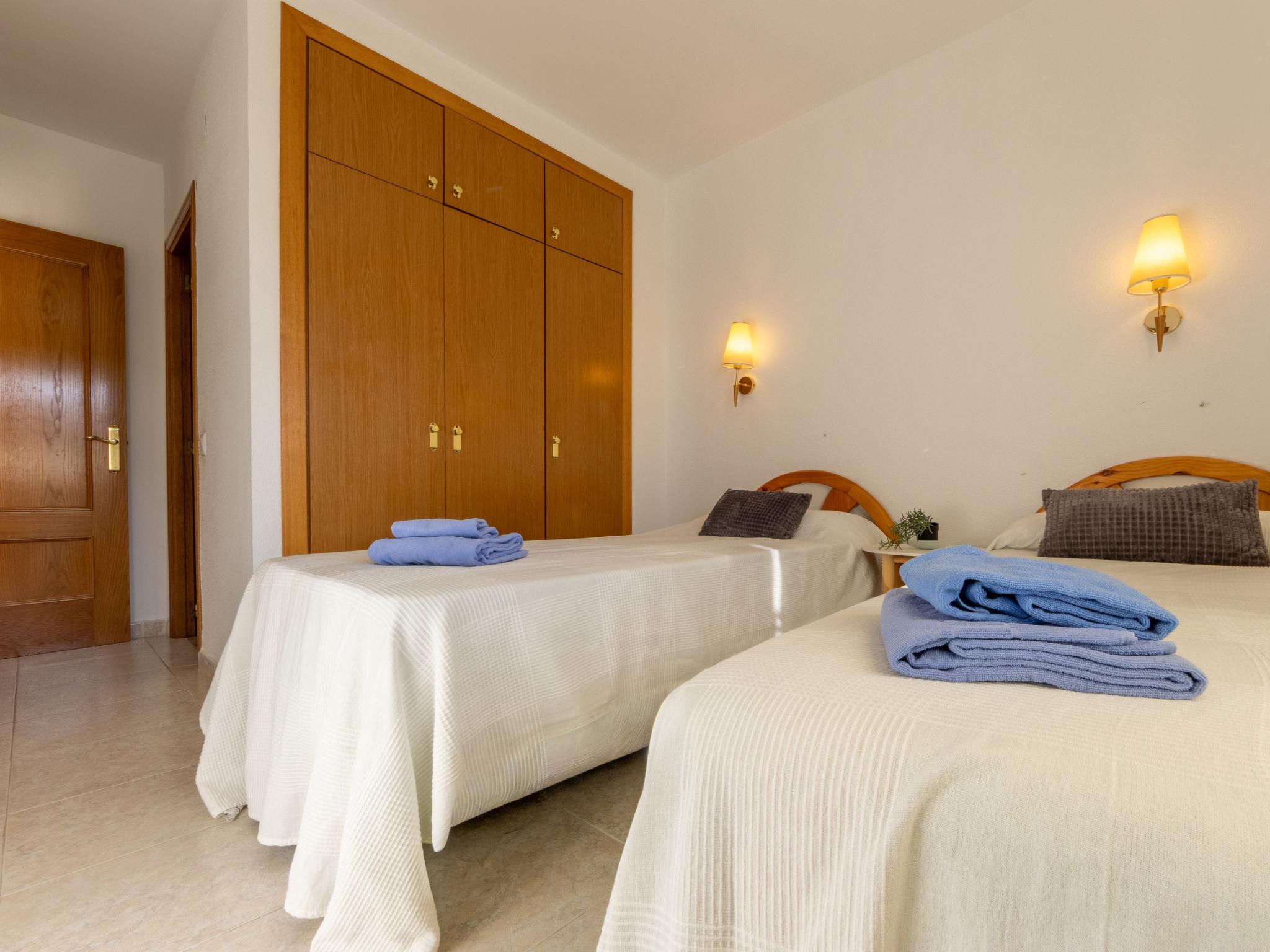 "Costa Blanca III", 3-room apartment 80 m2. Comfortable furnishings: living/dining room with digital TV, air conditioning and forced-air heating. Exit to the terrace. 1 room with 1 x 2 bunk beds (90 cm, length 190 cm). 1 room, without window with 1 bed (90 cm, length 190 cm). 1 room with 2 beds (90 cm, length 190 cm), bath/bidet/WC. Kitchen (4 hot plates, oven, toaster, kettle, microwave, electric coffee machine). Shower/WC. Air-conditioning, boiler (60 litres). Heating not available in all rooms. Terrace. View of the swimming pool and the garden. Facilities: washing machine, iron, hair dryer. Suitable for families. HUTT-003287 // Reg. Nr.: ESFCTU00004303100029676100000000000000HUTT-003287-926
