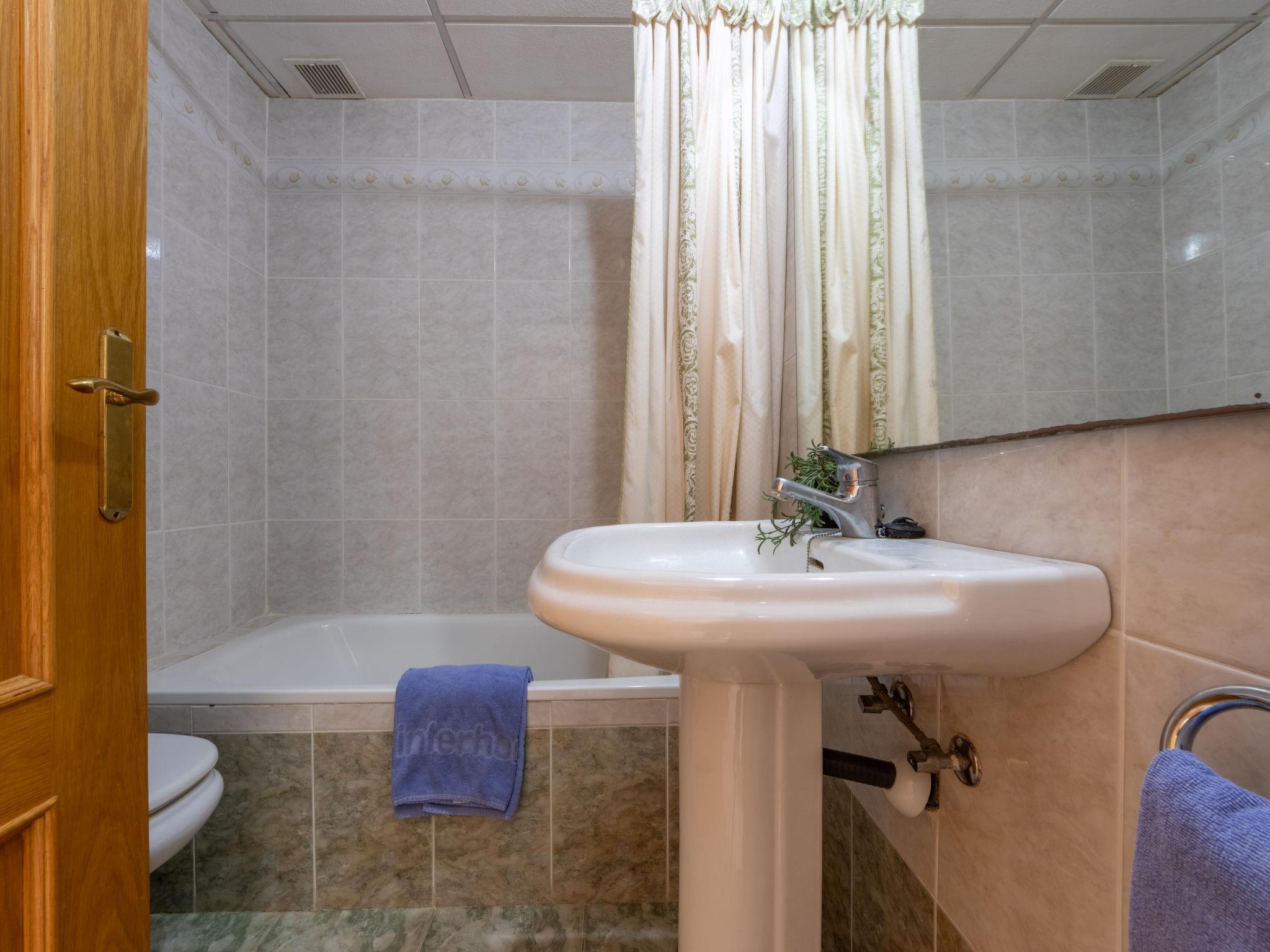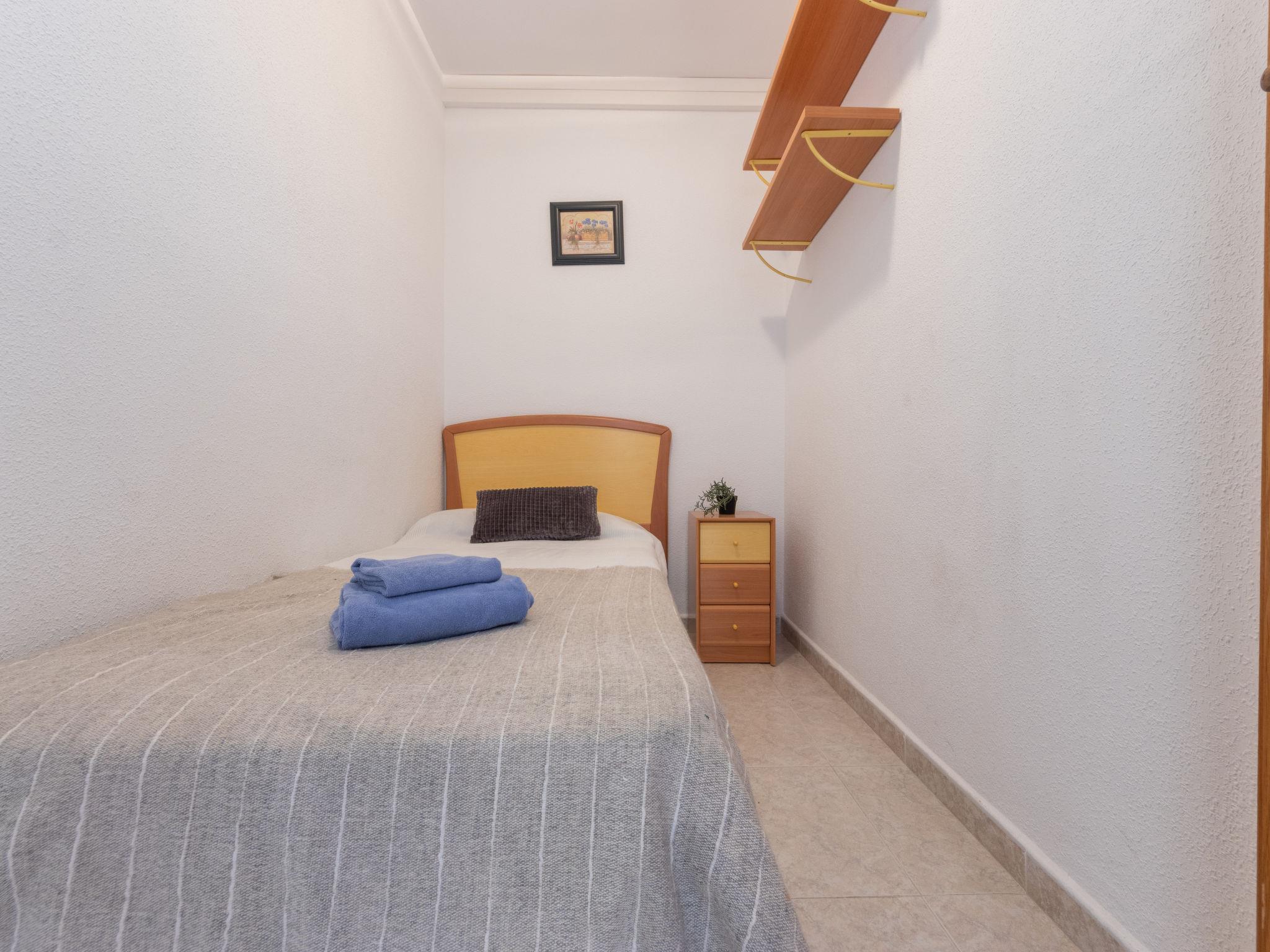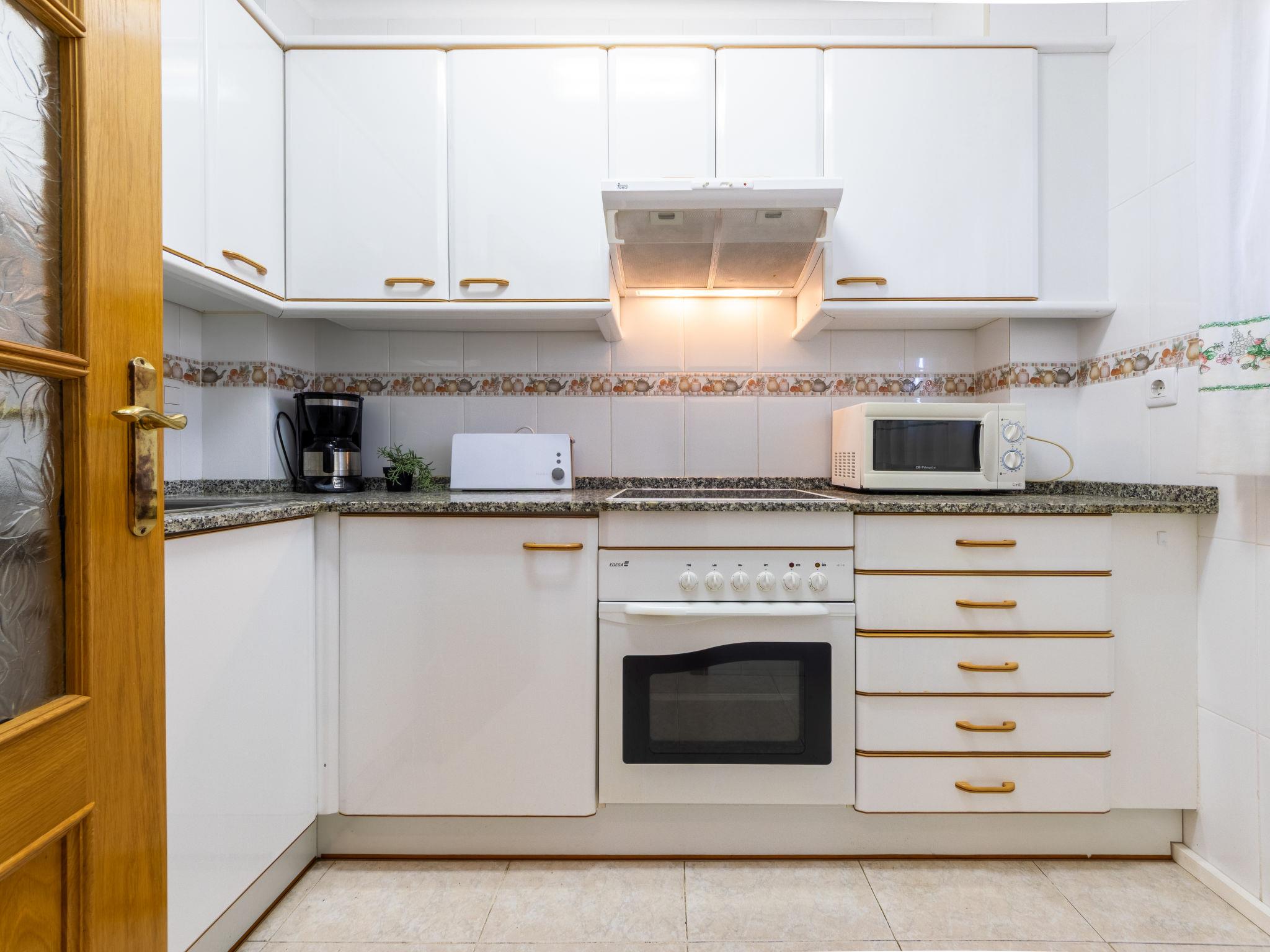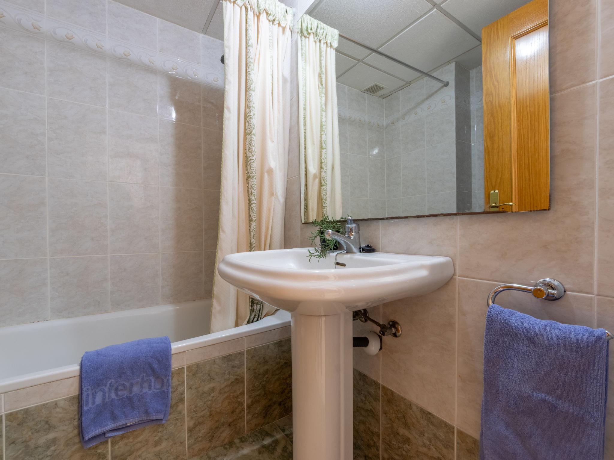 "Costa Blanca III", 3-room apartment 80 m2. Comfortable furnishings: living/dining room with digital TV, air conditioning and forced-air heating. Exit to the terrace. 1 room with 1 x 2 bunk beds (90 cm, length 190 cm). 1 room, without window with 1 bed (90 cm, length 190 cm). 1 room with 2 beds (90 cm, length 190 cm), bath/bidet/WC. Kitchen (4 hot plates, oven, toaster, kettle, microwave, electric coffee machine). Shower/WC. Air-conditioning, boiler (60 litres). Heating not available in all rooms. Terrace. View of the swimming pool and the garden. Facilities: washing machine, iron, hair dryer. Suitable for families. HUTT-003287 // Reg. Nr.: ESFCTU00004303100029676100000000000000HUTT-003287-926