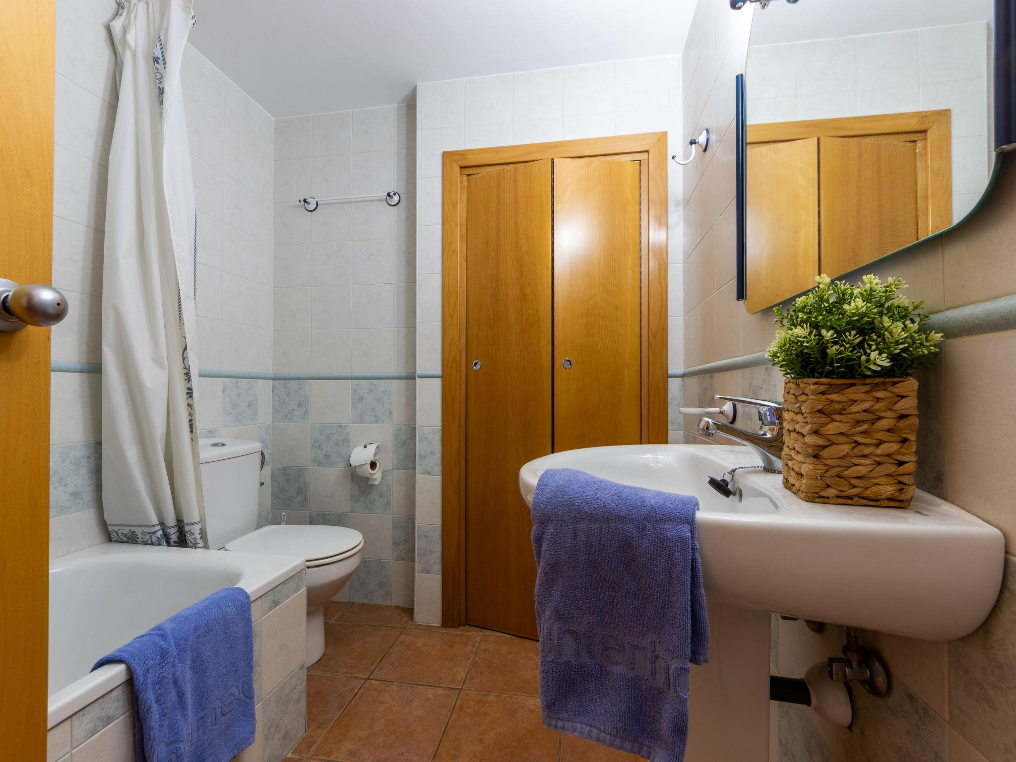 "Color", 4-room apartment 90 m2. Practical and comfortable furnishings: living/dining room with digital TV, air conditioning and forced-air heating. Exit to the terrace. Kitchen (oven, dishwasher, 3 ceramic glass hob hotplates, toaster, kettle, microwave, electric coffee machine). Bath/WC, sep. WC. Boiler (80 litres). No heating option. Upper floor: 1 room with 1 x 2 bunk beds (90 cm, length 190 cm). 1 room with 2 beds (90 cm, length 190 cm). 1 room with 1 french bed (150 cm, length 190 cm). Mezzanine with air conditioning. Bath/bidet/WC. Terrace. Terrace furniture. Facilities: washing machine, iron, hair dryer. Parking. Suitable for families. HUTT-006611 // Reg. Nr.: ESFCTU00004303100031230000000000000000HUTT-006611-478