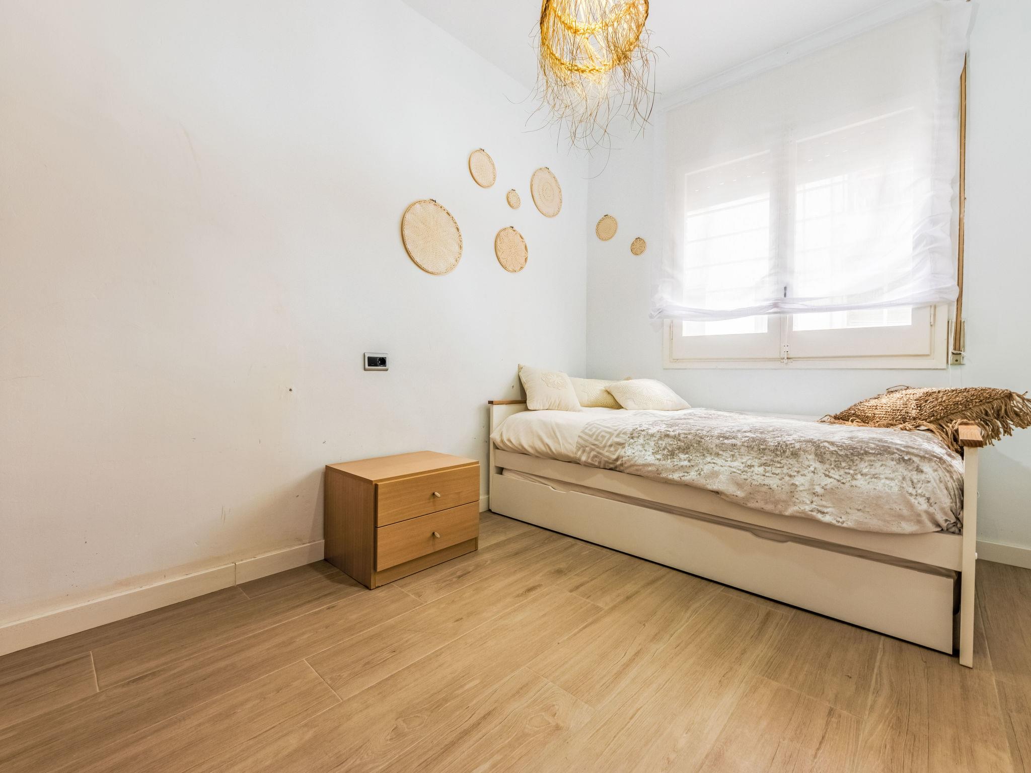 "Piso Valencia", 4-room apartment 100 m2 on 2nd floor. Object suitable for 6 adults. Practical and comfortable furnishings: living/dining room with dining table, digital TV, air conditioning and forced-air heating. Exit to the balcony. 1 room with 1 french bed (150 cm, length 190 cm). 1 room with 1 pull-out bed (2 pers. 2 x 90 cm, length 190 cm). Exit to the balcony. 1 room with 1 french bed (135 cm, length 190 cm). Open kitchen (oven, dishwasher, 4 ceramic glass hob hotplates, toaster, kettle, microwave, electric coffee machine, Capsules for coffee machine (Nespresso) extra) with air conditioning. Shower/WC, shower/bidet/WC, sep. WC. Boiler (80 litres). Heating not available in all rooms. Balcony. Facilities: washing machine, iron, children's high chair, baby cot for up to 2 year olds, hair dryer. Internet (WiFi, free). Please note: suitable for families. Non-smokers only. HUTT-072737 // Reg. Nr.: ESFCTU00004303100005905200000000000000000HUTT-0727378